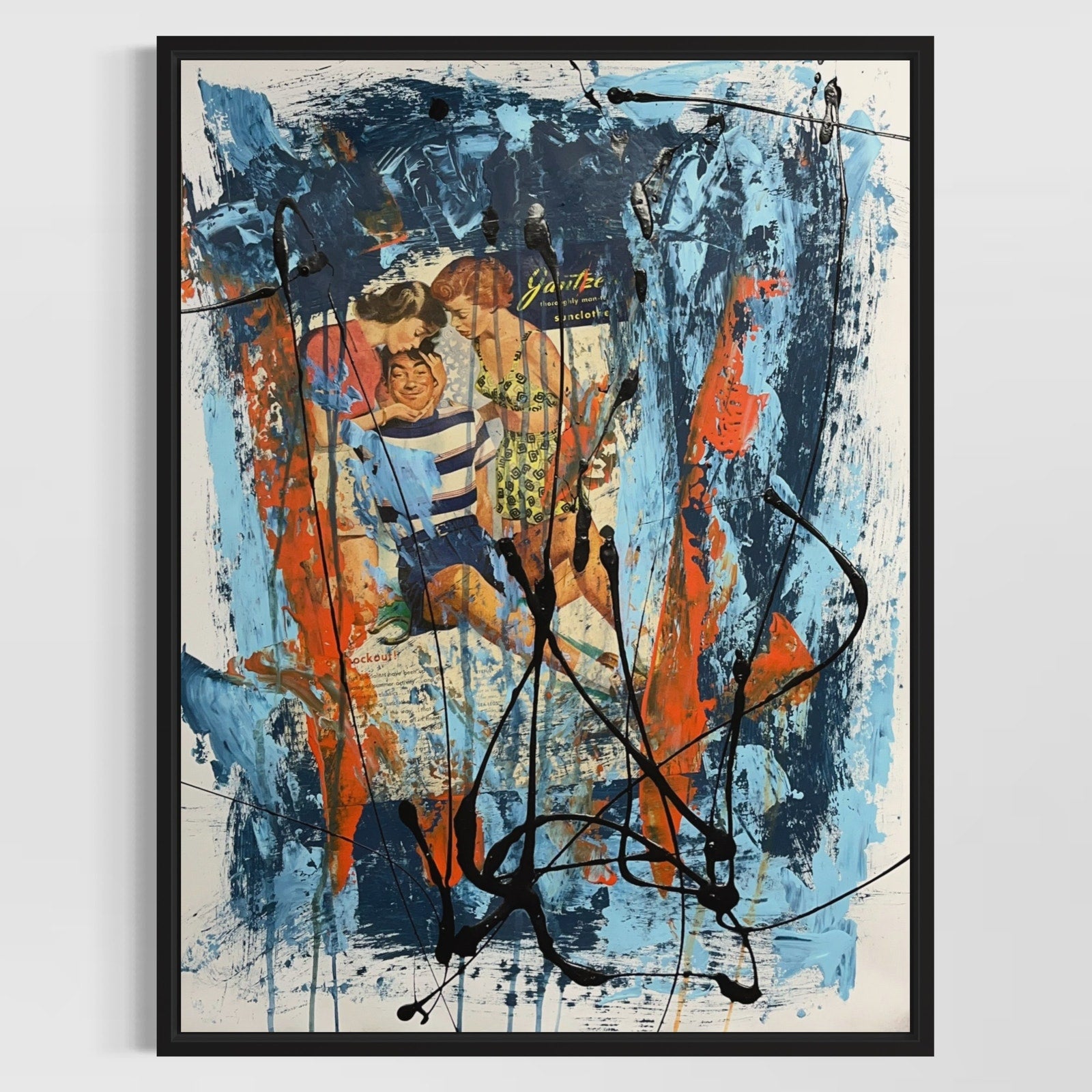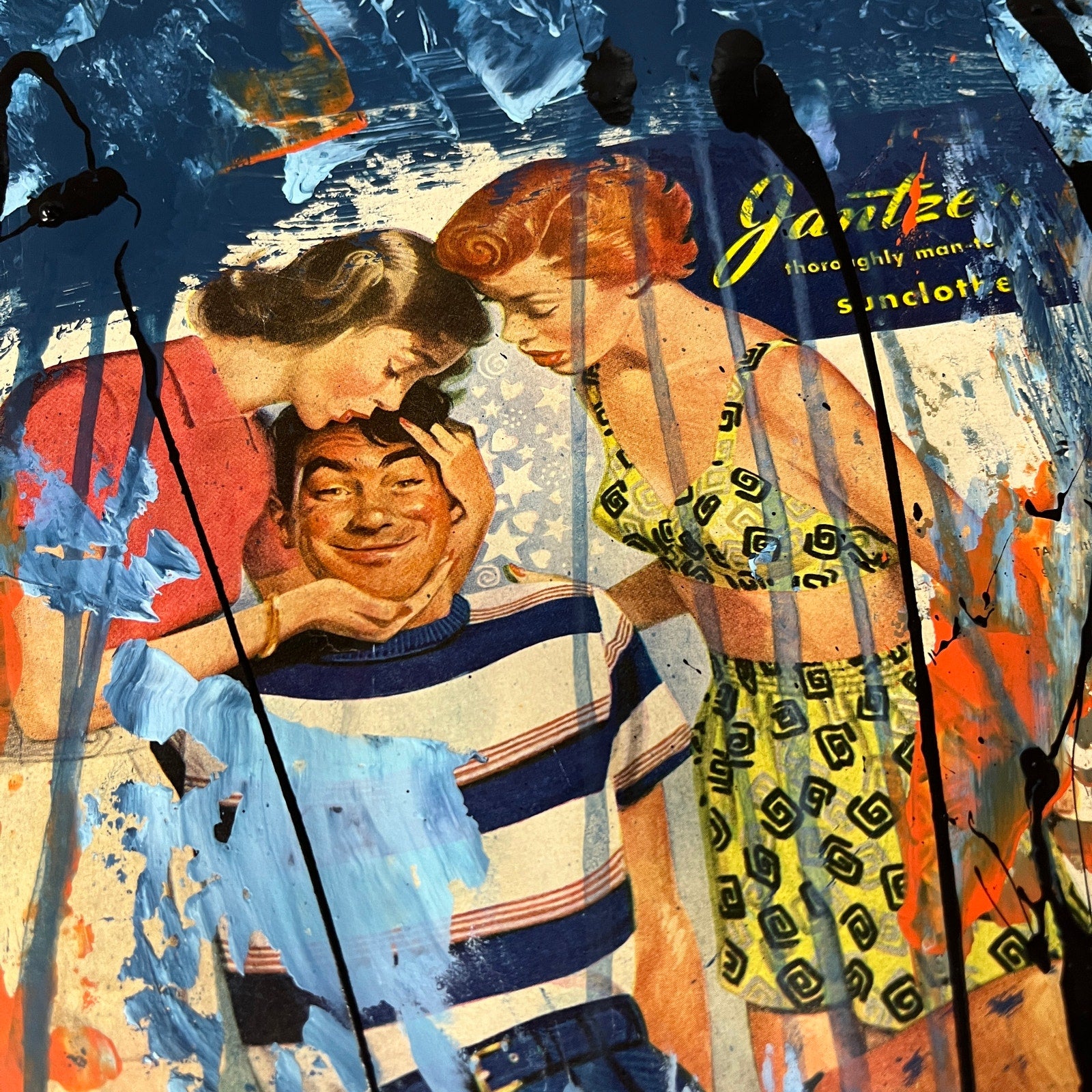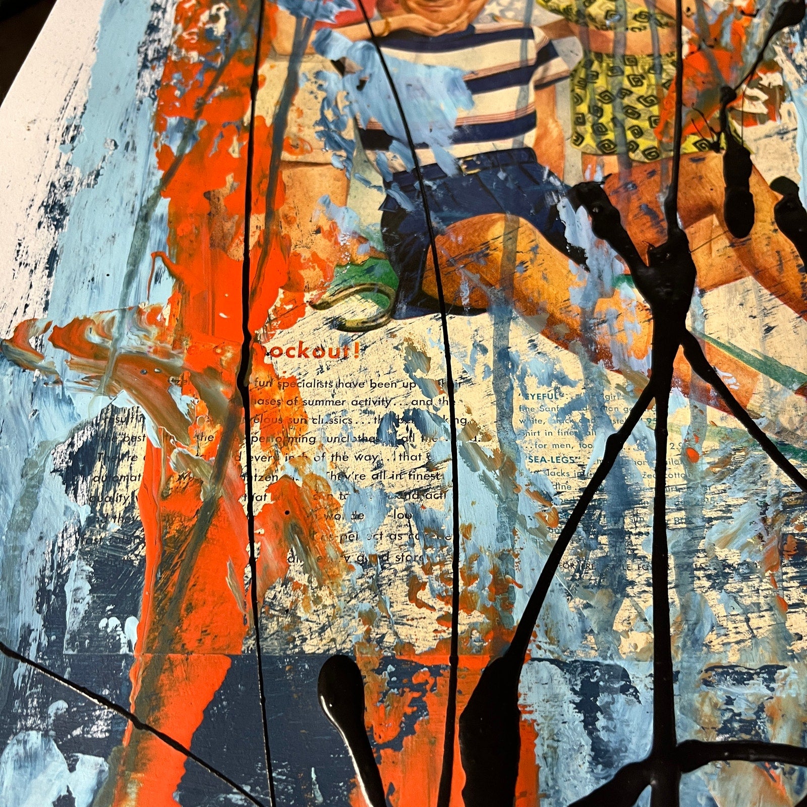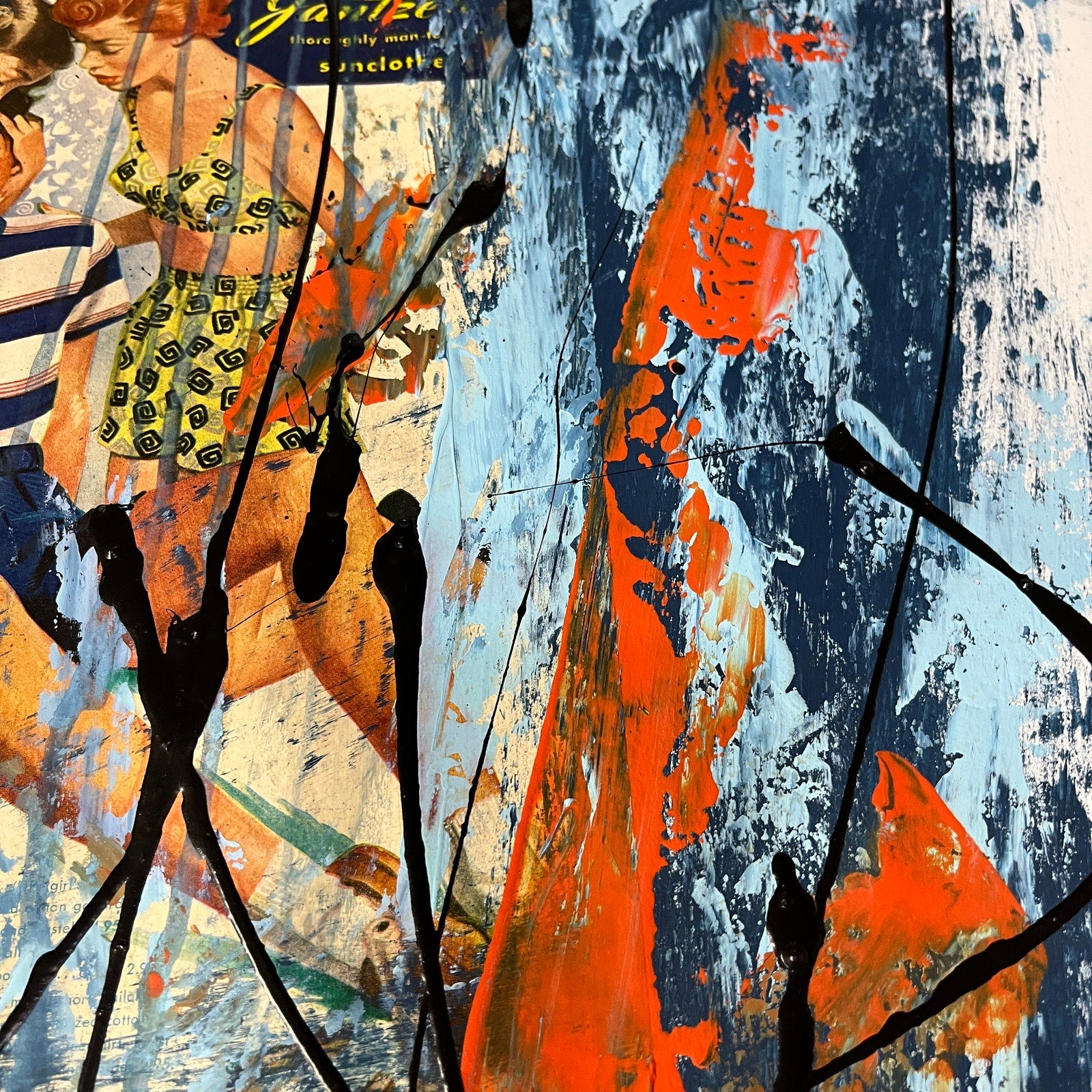 Original Mixed Media Abstract Art Painting 18x24 “1950s Jantzen Sun Clothes Ad" Signed
