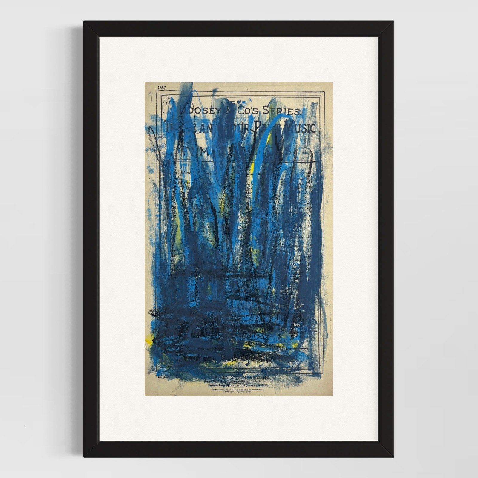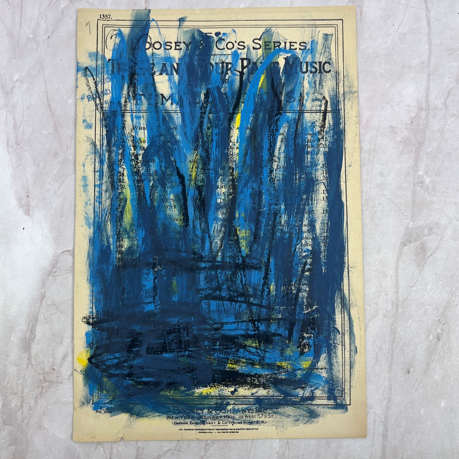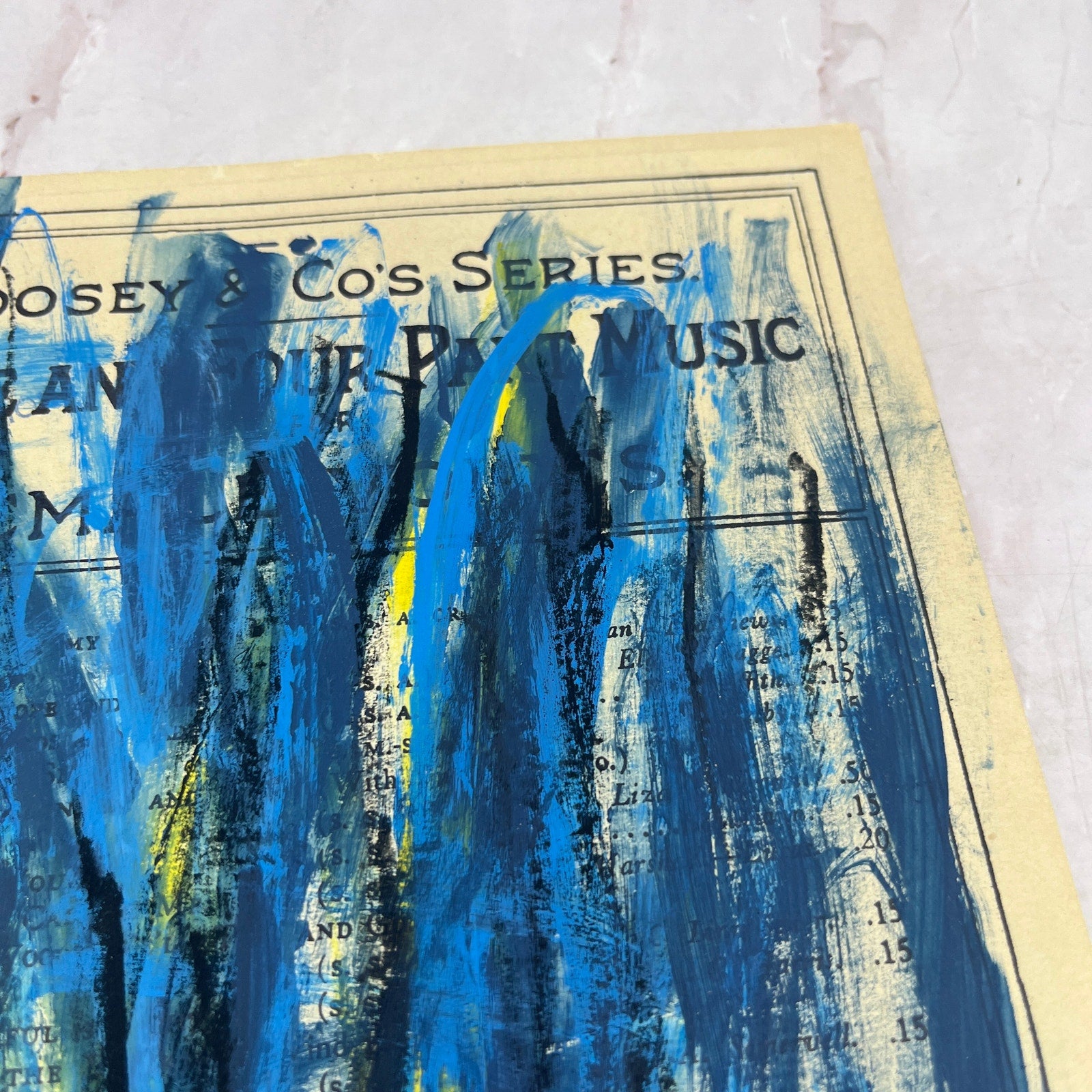 FRAME NOT INCLUDED - framed picture is intended to show how it will look matted or mounted and framed. Measures roughly 7x10”Abstract Mixed Media Art Painting on an antique page from a sheet music catalog. It has has all the original bends, tears and blemishes that add a one-of-a-kind patina. Part of a limited collection. Original piece by artist Sam Lewis. This is a great and affordable way to own a piece of original art and add a pop of color to your space. Also a great gift idea.