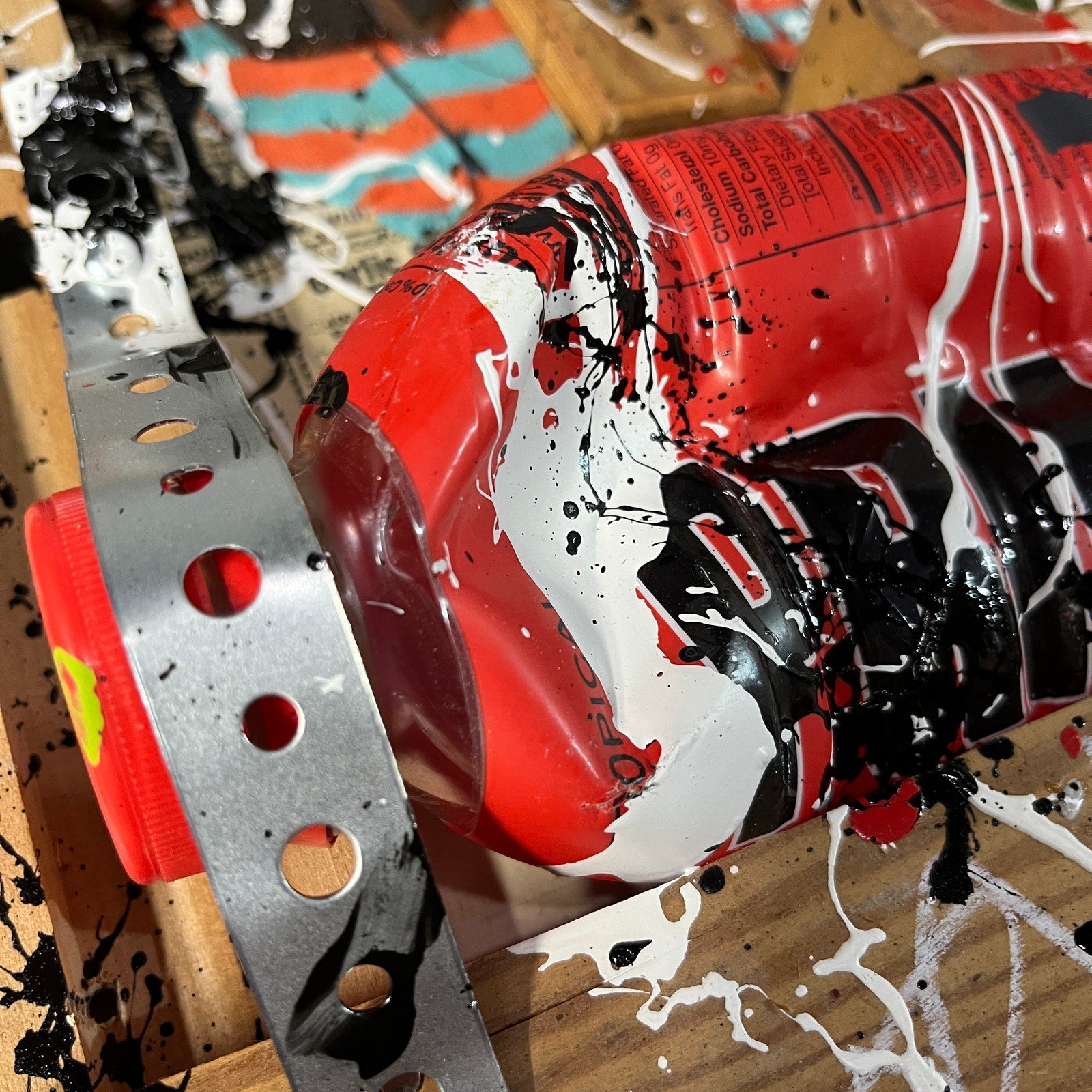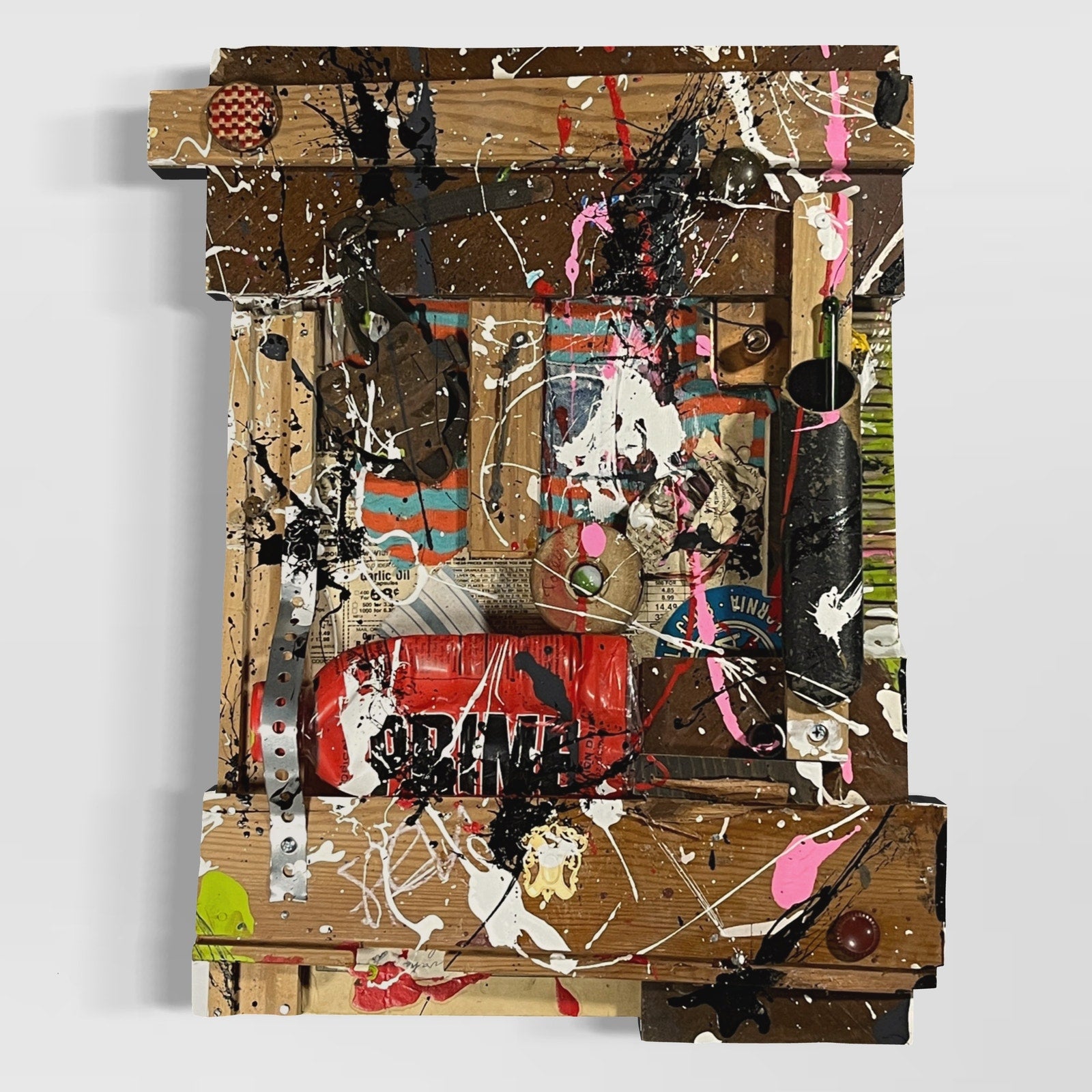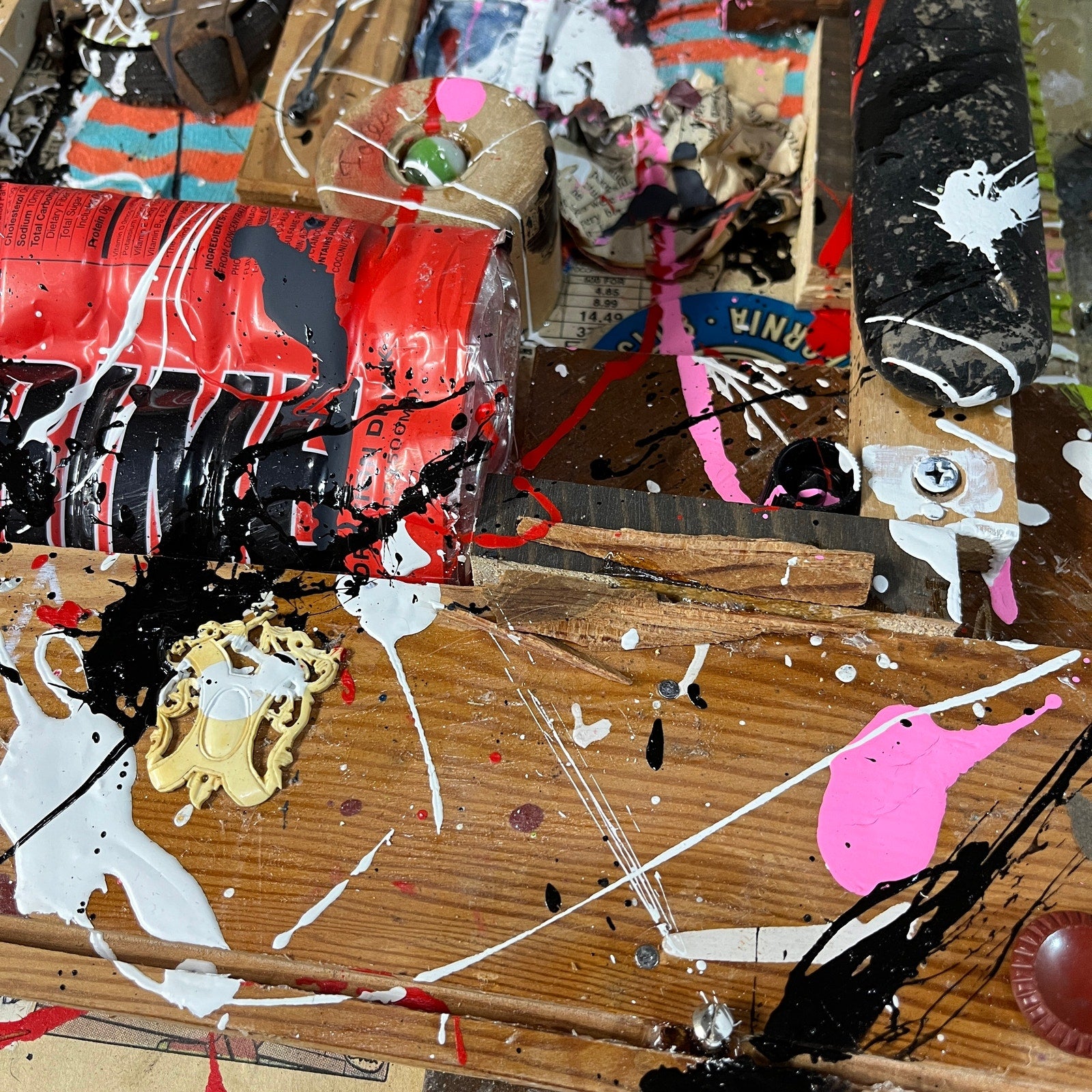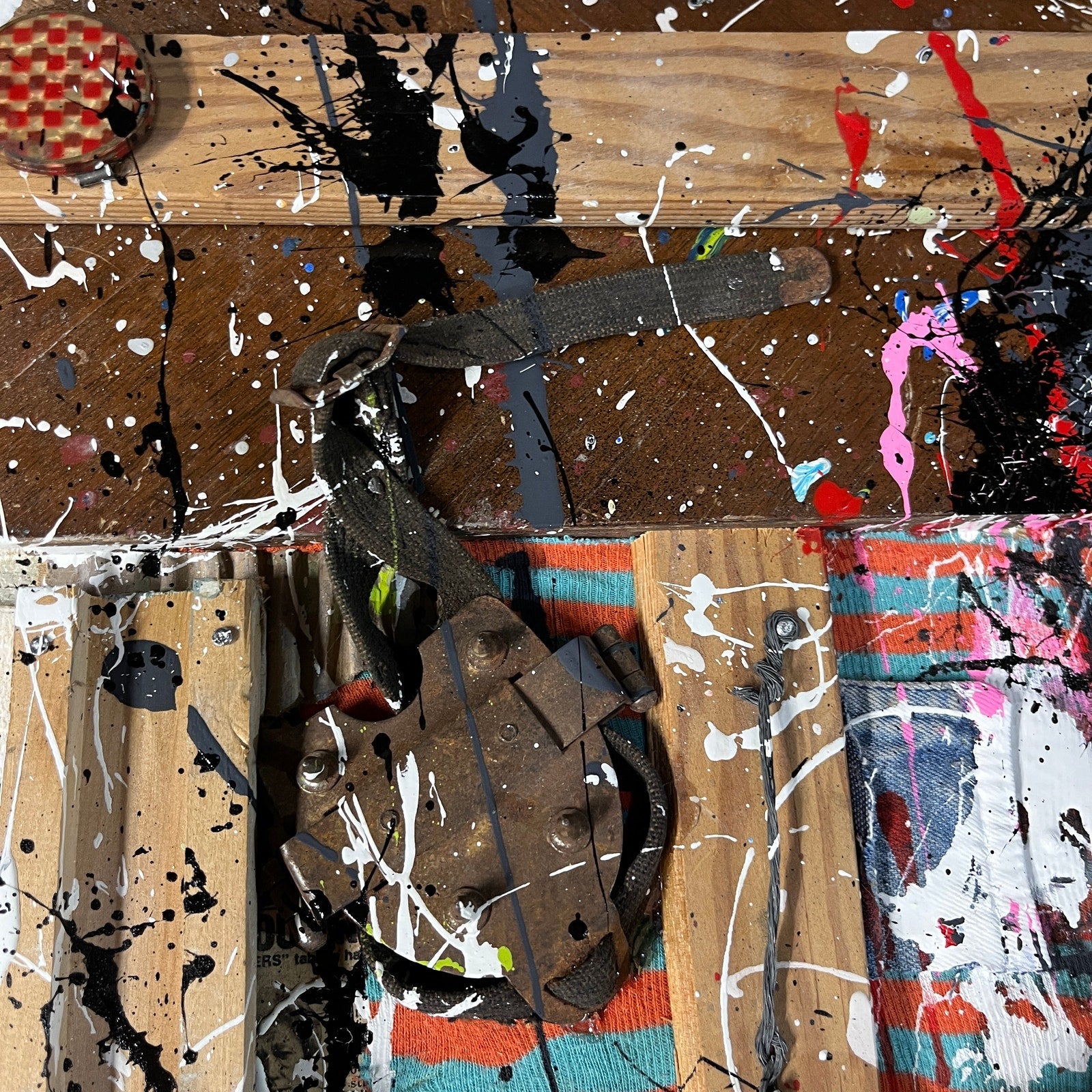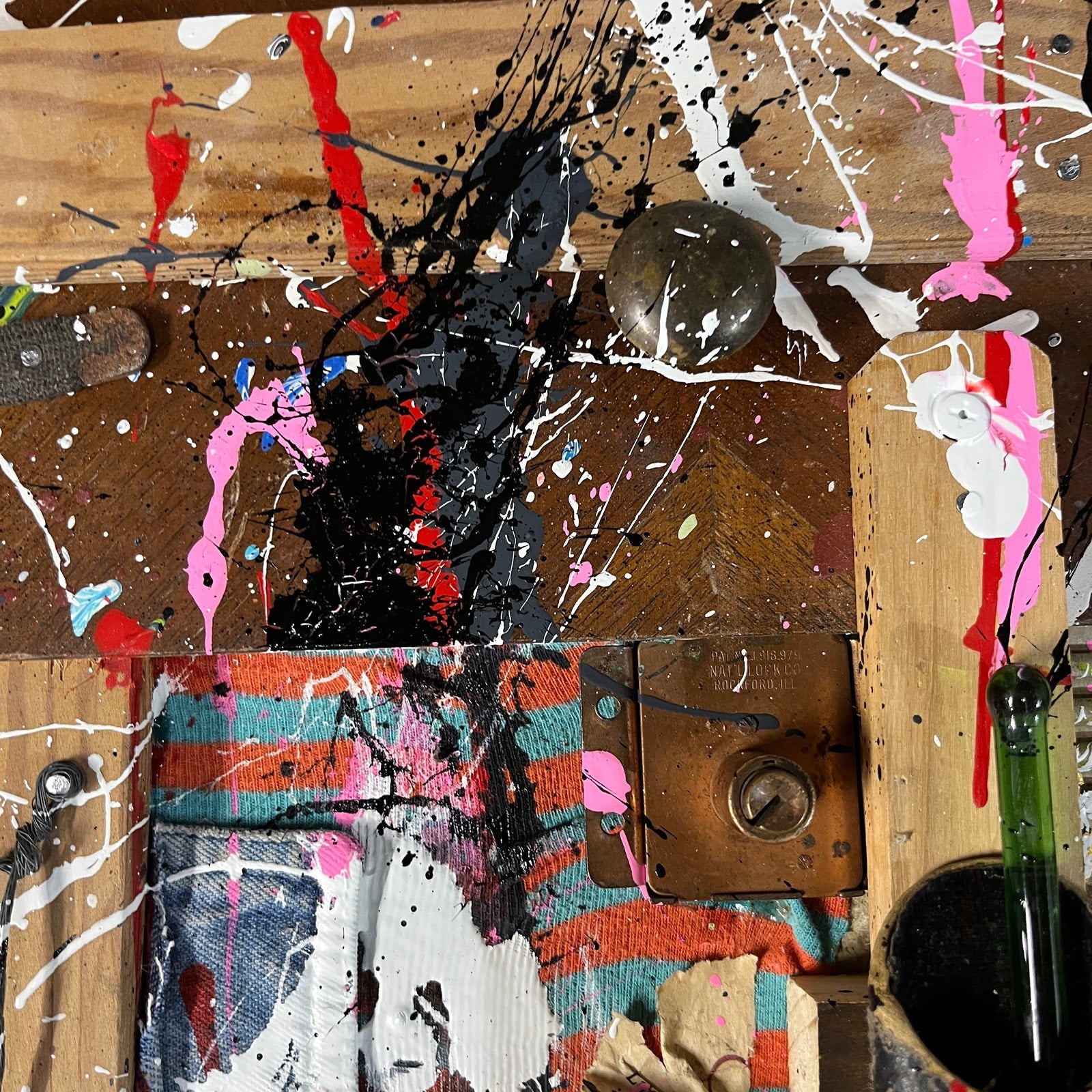 This piece measures about 16x20". It is an original abstract assemblage collage art piece by abstract artist Sam Lewis. This is a great and affordable way to own a piece of original art and add a pop of color to your space. Also a great gift idea. Ready to hang.