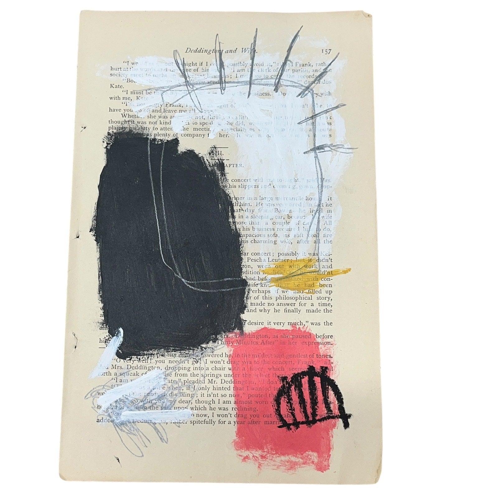 FRAME NOT INCLUDED. Can be shipped framed at an additional cost - please ask prior to ordering if you would like it shipped framed. The piece measures approx 6x9" and is shown floated in an approx 9x12" frame. This is a mixed media piece made from a 150 year old original page from an 1875 Harkness Magazine. This is an original one-of-a-kind piece by artist Sam Lewis - signed on back side. This is a great and affordable way to own a piece of original art and add a pop of color to your space. Also a great gift idea.