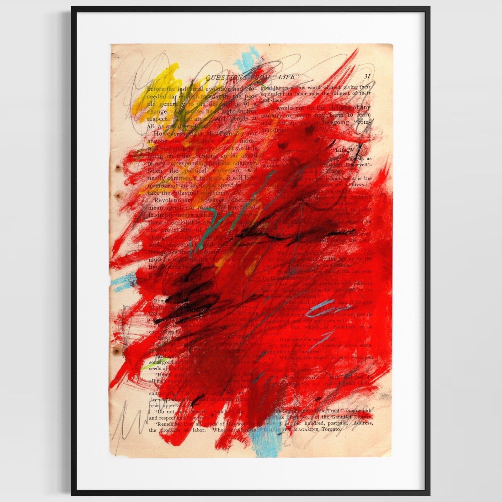 FRAME NOT INCLUDED. Can be shipped framed at an additional cost - please ask prior to ordering if you would like it shipped framed. The piece measures approx 6.25x9.25" and is shown floated in an approx 8x12" frame. This is a mixed media piece made from a 125 year old original page from an 1902 Wilshire's Magazine, part of a 32 piece limited series. This is an original one-of-a-kind piece by artist Sam Lewis - signed on back side. This is a great and affordable way to own a piece of original art and add a pop of color to your space. Also a great gift idea.