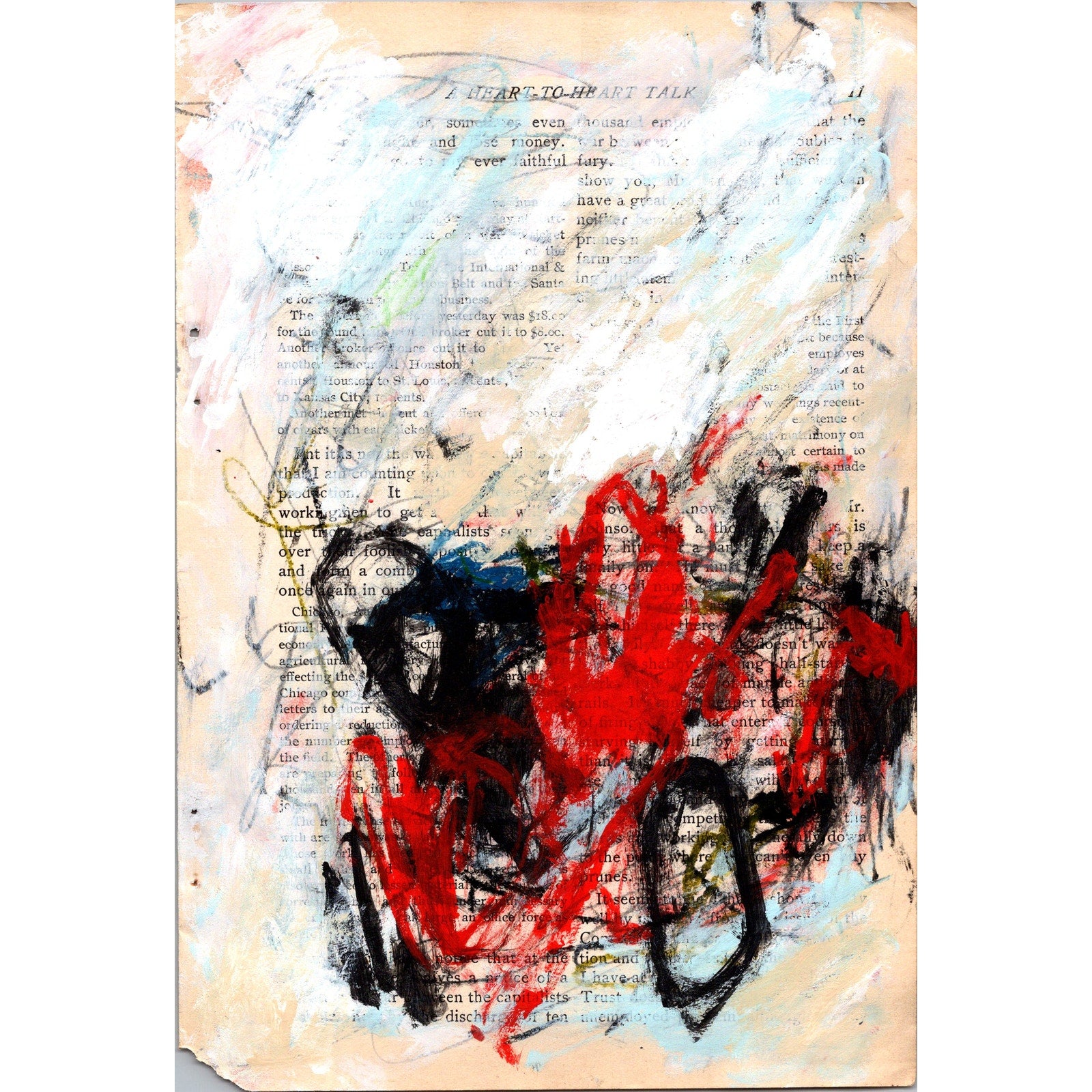 FRAME NOT INCLUDED. Can be shipped framed at an additional cost - please ask prior to ordering if you would like it shipped framed. The piece measures approx 6.25x9.25" and is shown floated in an approx 8x12" frame. This is a mixed media piece made from a 125 year old original page from an 1902 Wilshire's Magazine, part of a 32 piece limited series. This is an original one-of-a-kind piece by artist Sam Lewis - signed on back side. This is a great and affordable way to own a piece of original art and add a pop of color to your space. Also a great gift idea.