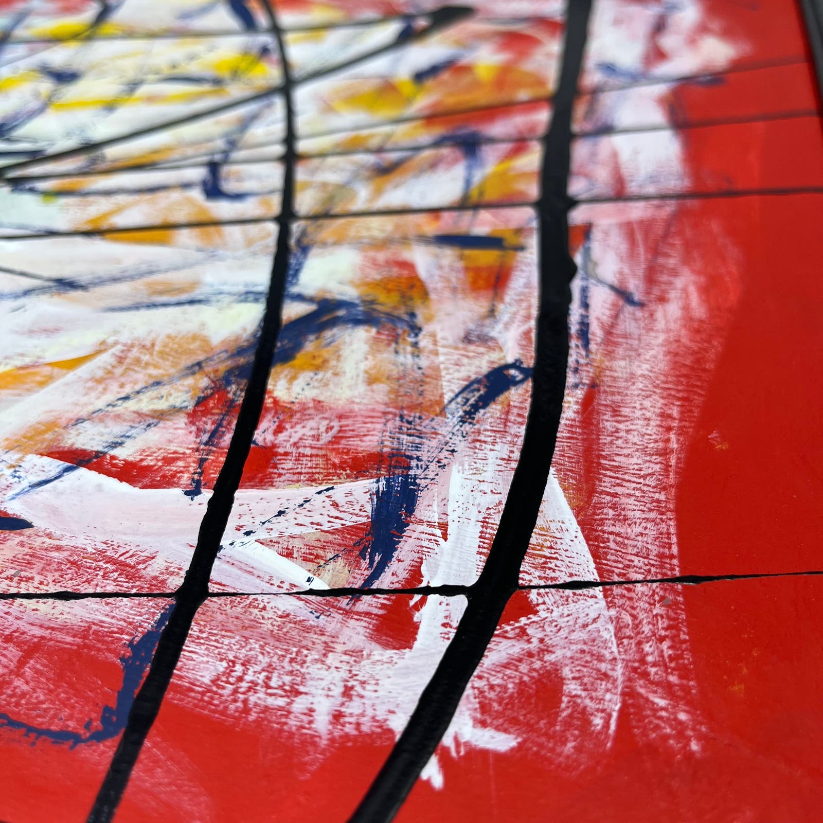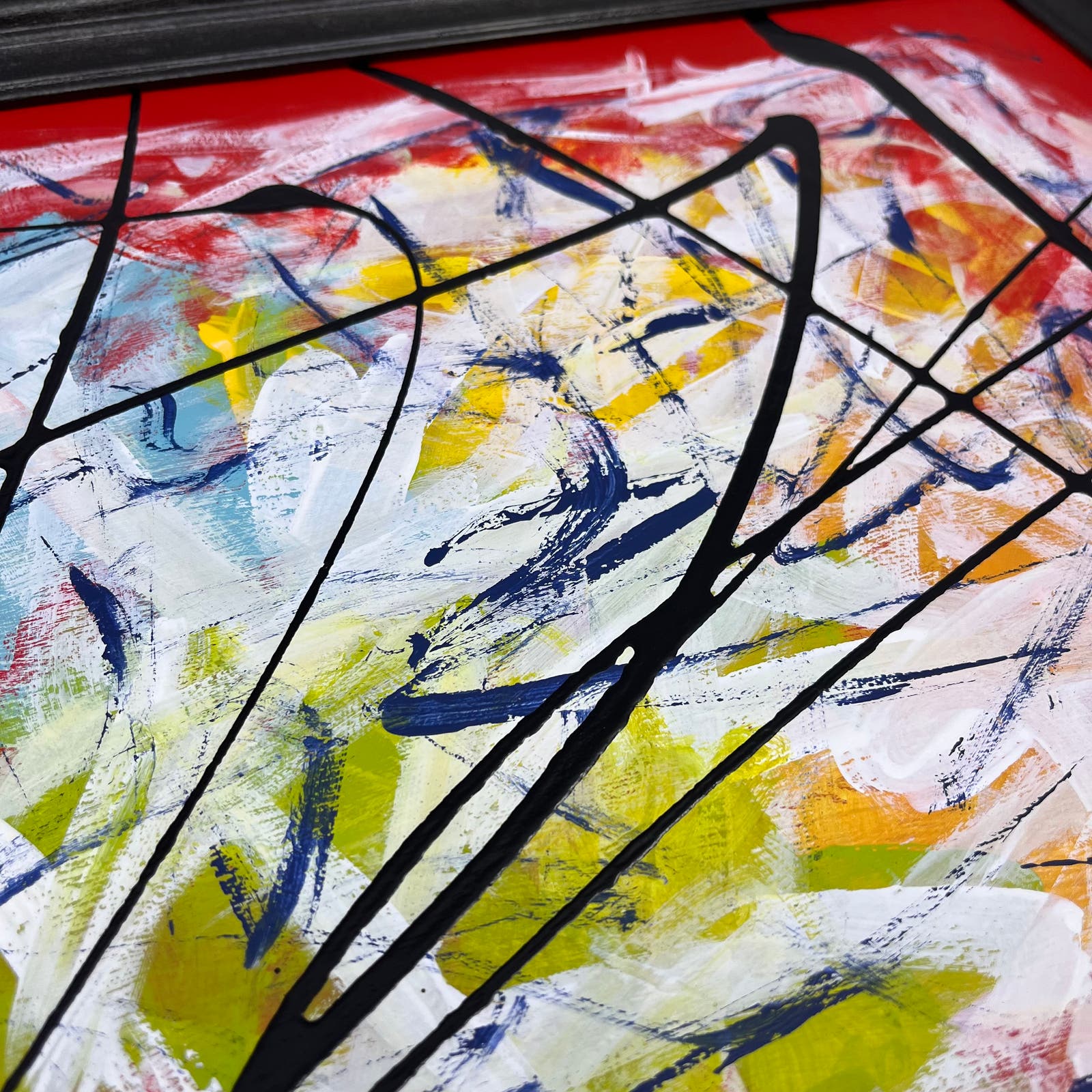 Measures about 16x20" Framed Original Abstract Art Painting. Acrylic in reclaimed frame by abstract artist Sam Lewis. This is a great and affordable way to own a piece of original art and add a pop of color to your space. Also a great gift idea. Comes with signed COA certificate of authenticity.