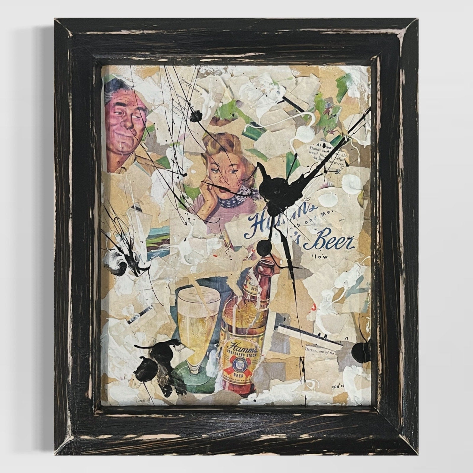 Original Framed Mixed Media Abstract Art Collage 10x12 "1949 Hamms Beer Ad"
