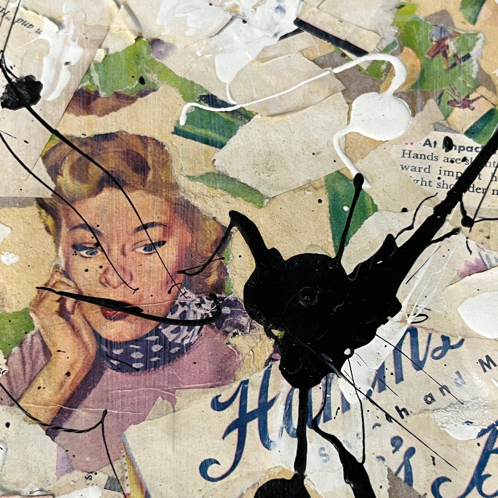 Original Framed Mixed Media Abstract Art Collage Painting 10x12 "1949 Hamms Beer Ad"