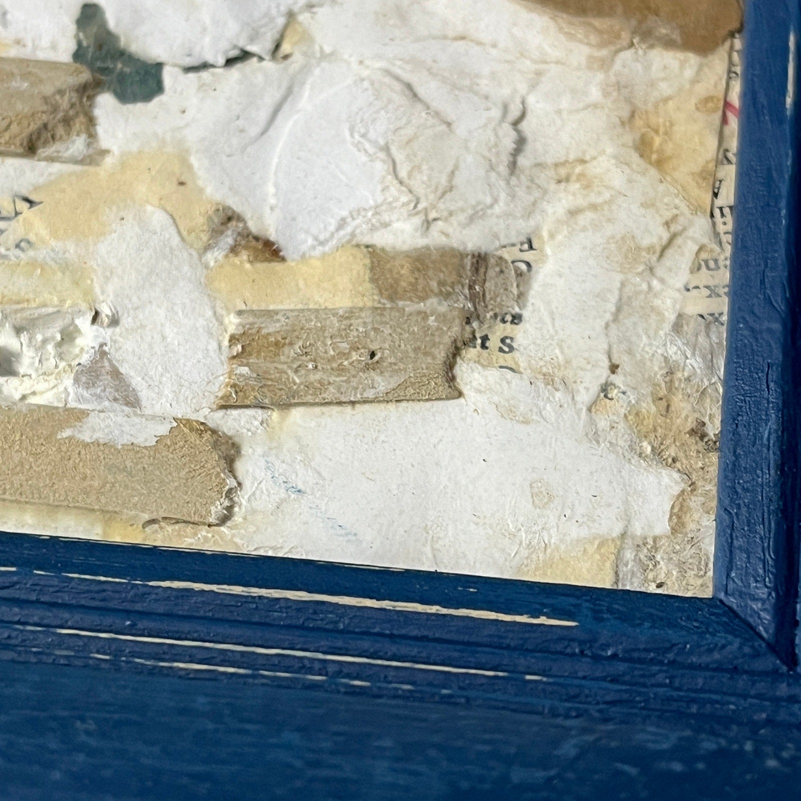 This piece is a collage made from vintage paper, and is framed in a vintage frame. This is an original collage painting by abstract artist Sam Lewis. This is a great and affordable way to own a piece of original art and add a pop of color to your space. Also a great gift idea. Ready to hang.