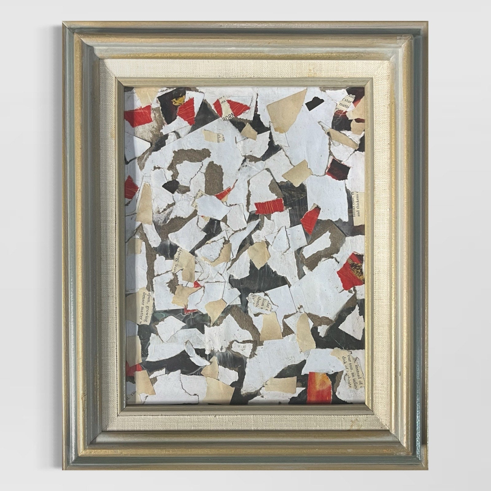 This piece is a collage made from 1950s ads, and is framed in a vintage frame - all the blemishes on the frame have been kept as-is intentionally. This is an original collage painting by abstract artist Sam Lewis. This is a great and affordable way to own a piece of original art and add a pop of color to your space. Also a great gift idea. Ready to hang.