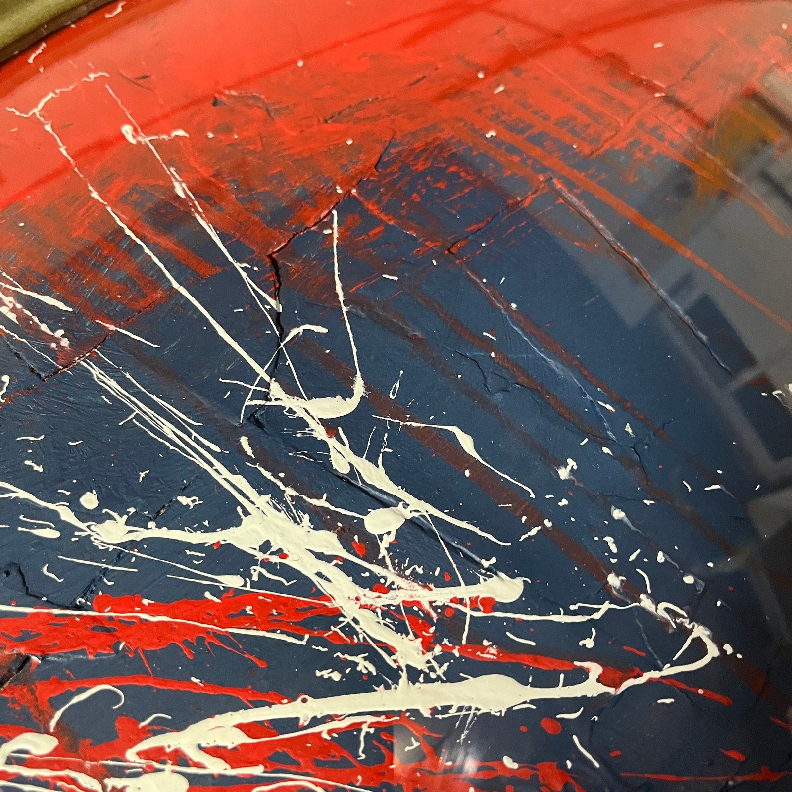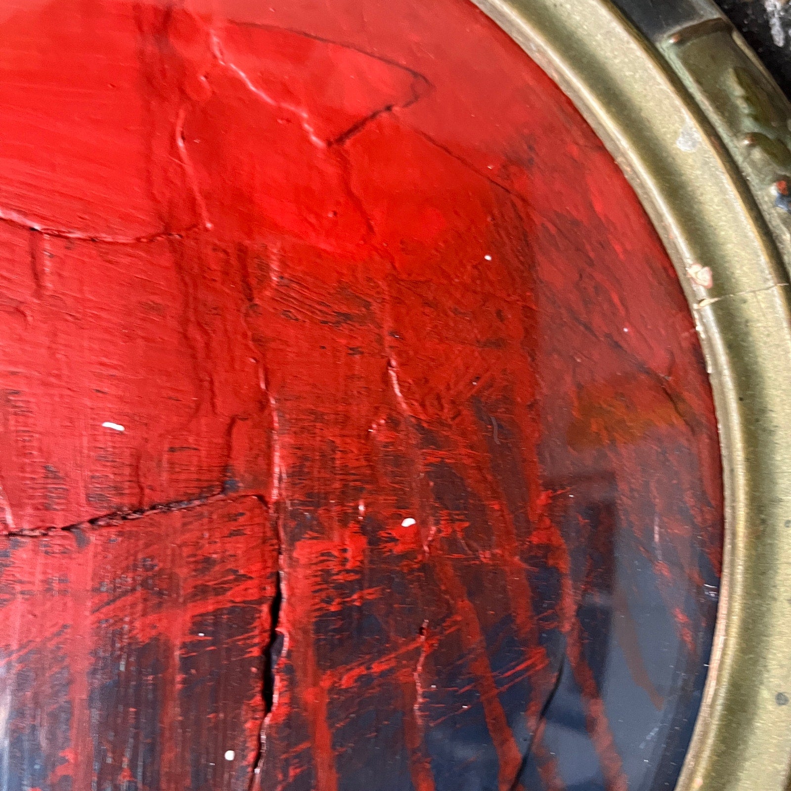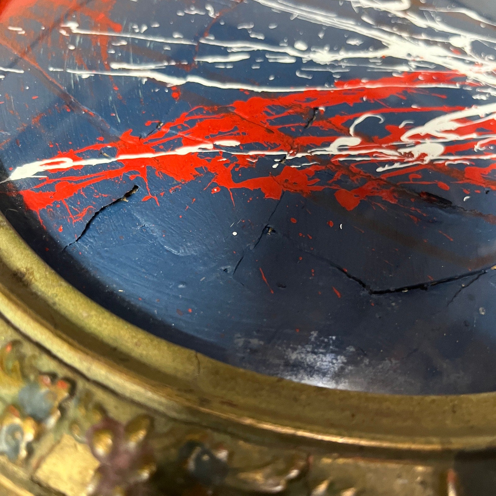 This piece is framed in an antique oval frame with convex glass, and measures about 16x22". This is an original painting by abstract artist Sam Lewis. This is a great and affordable way to own a piece of original art and add a pop of color to your space. Also a great gift idea. Ready to hang.