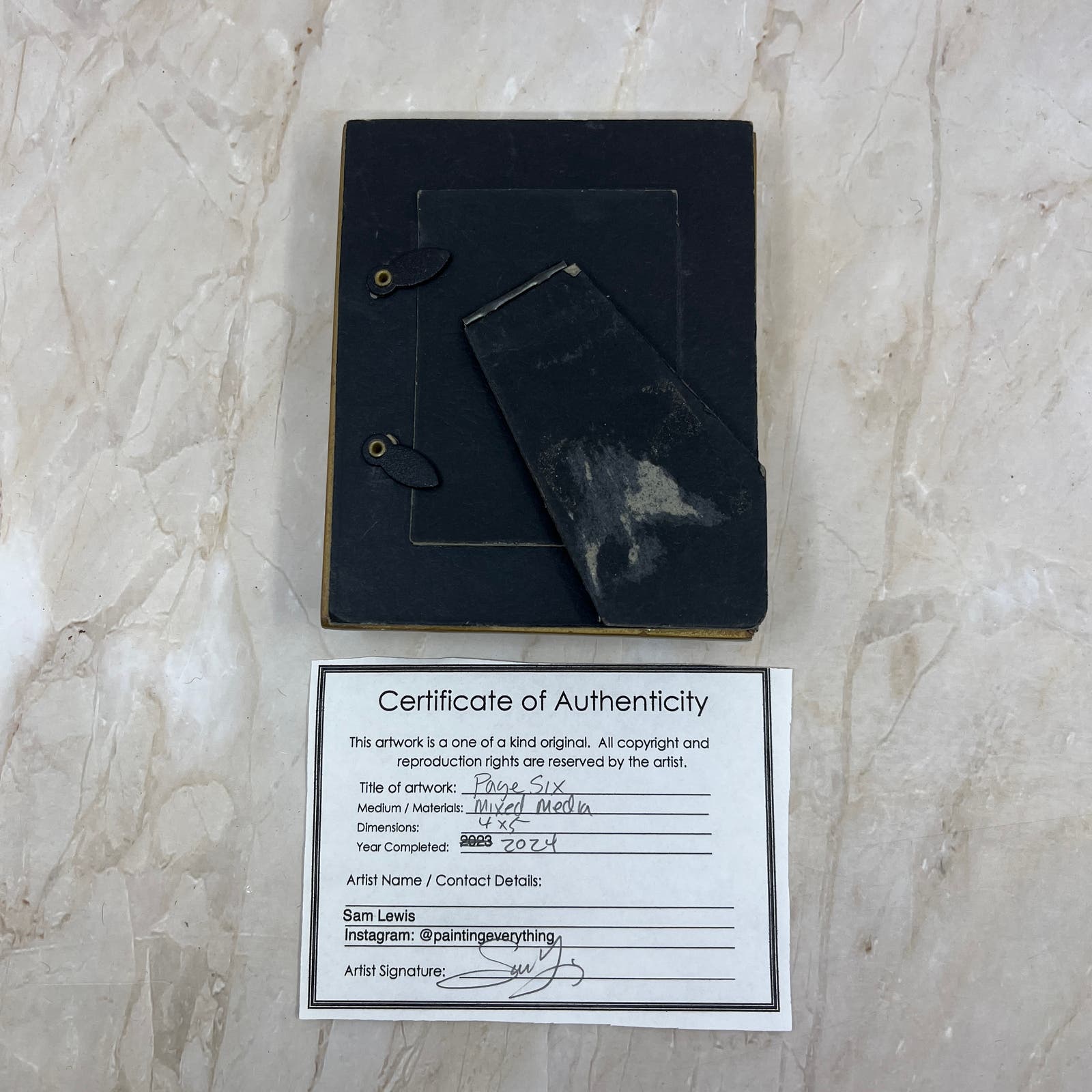 Original Framed Mixed Media Abstract Art Painting 5x4 Mini "Page Six" Signed TJ9
