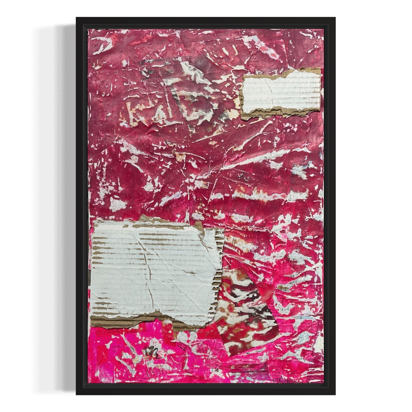 Comes framed and ready to hang. This piece is a collage painting on tagboard. This is a one-of-a-kind piece by abstract artist Sam Lewis. This is a great and affordable way to own a piece of original art and add a pop of color to your space. Also a great gift idea.
