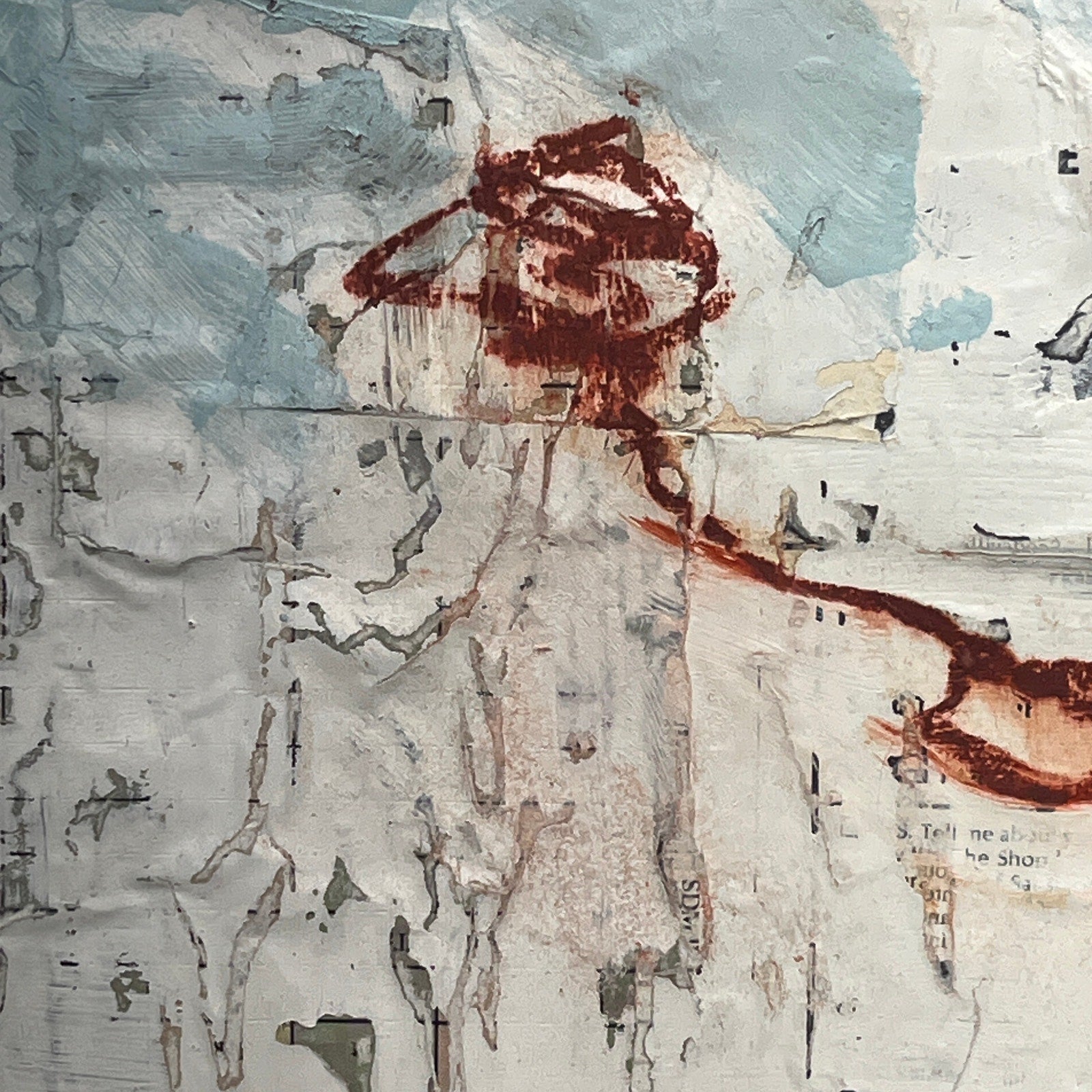 Original Framed Mixed Media Modern Art Collage Painting 12x18 "Bubble"