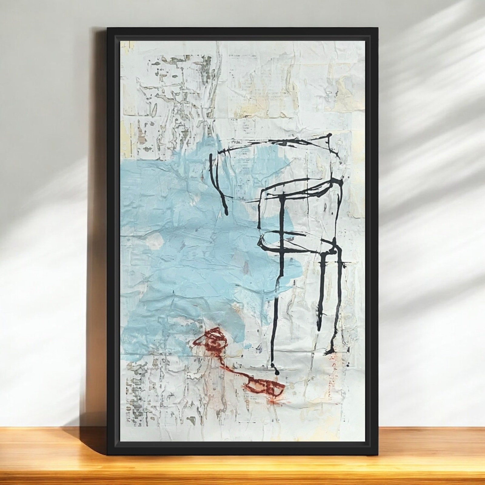 Comes framed and ready to hang. This piece is a collage painting on tagboard. This is a one-of-a-kind piece by abstract artist Sam Lewis. This is a great and affordable way to own a piece of original art and add a pop of color to your space. Also a great gift idea.