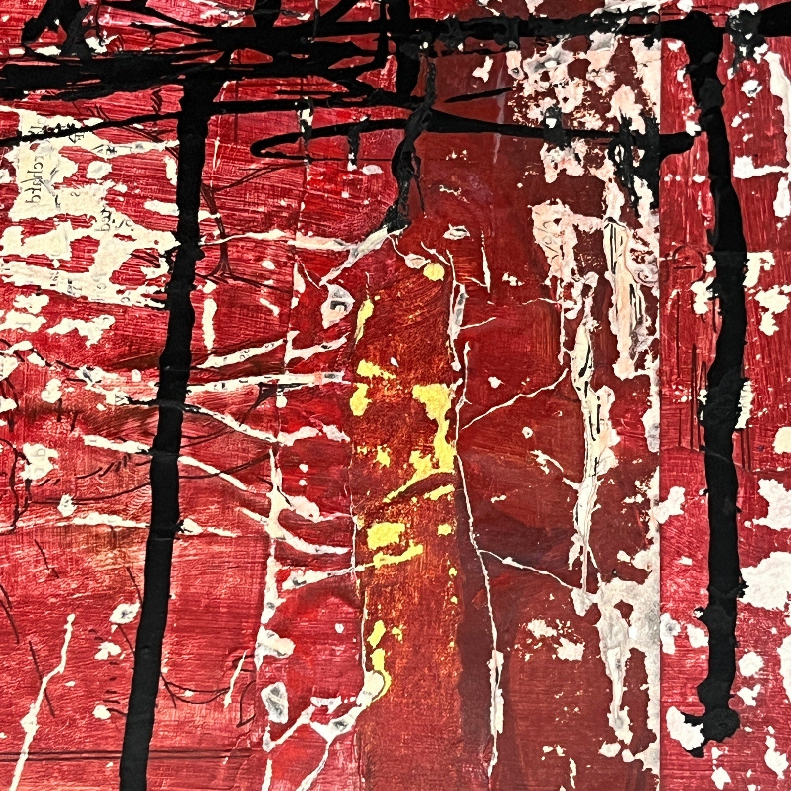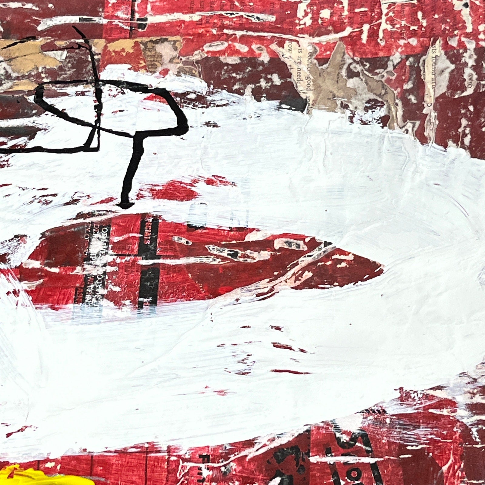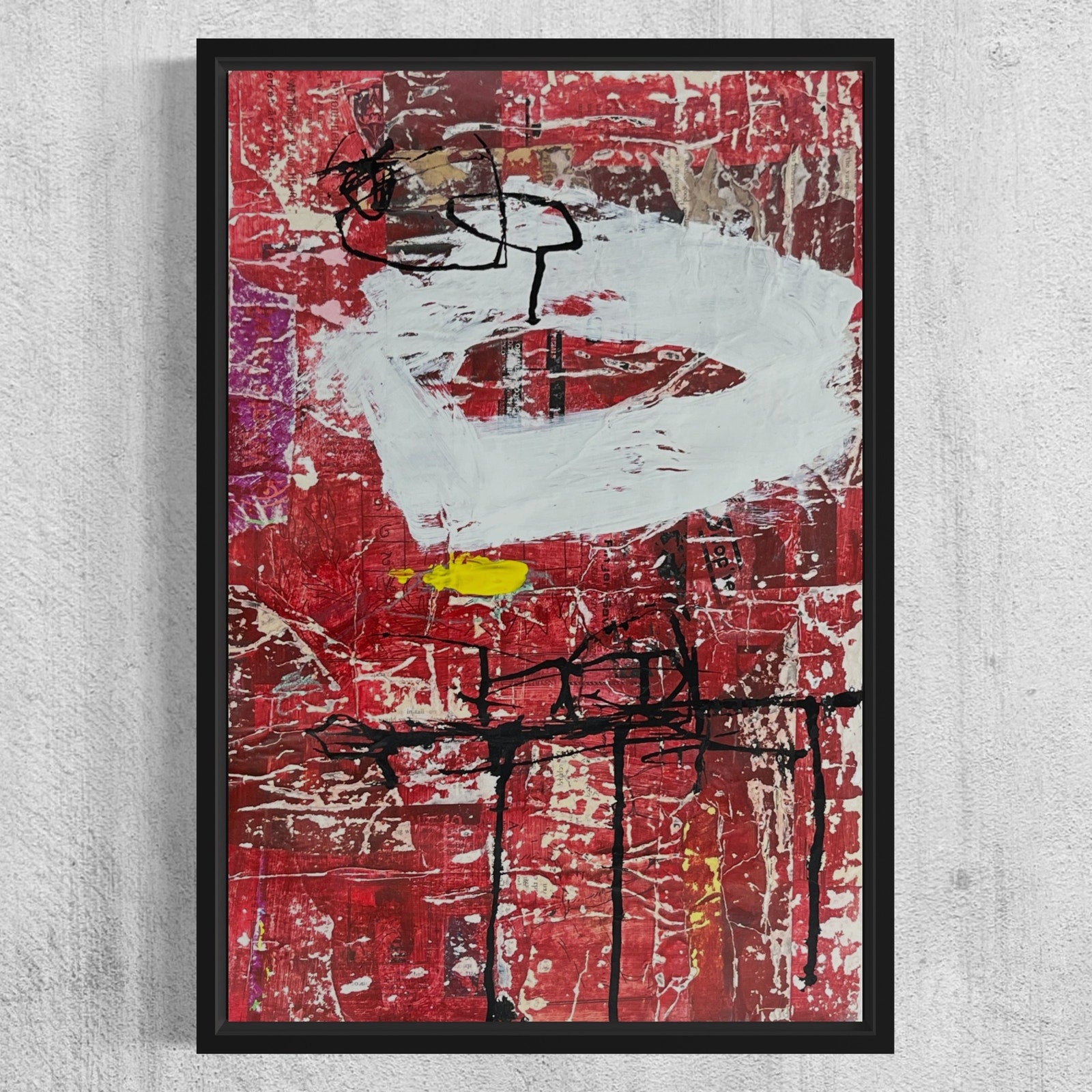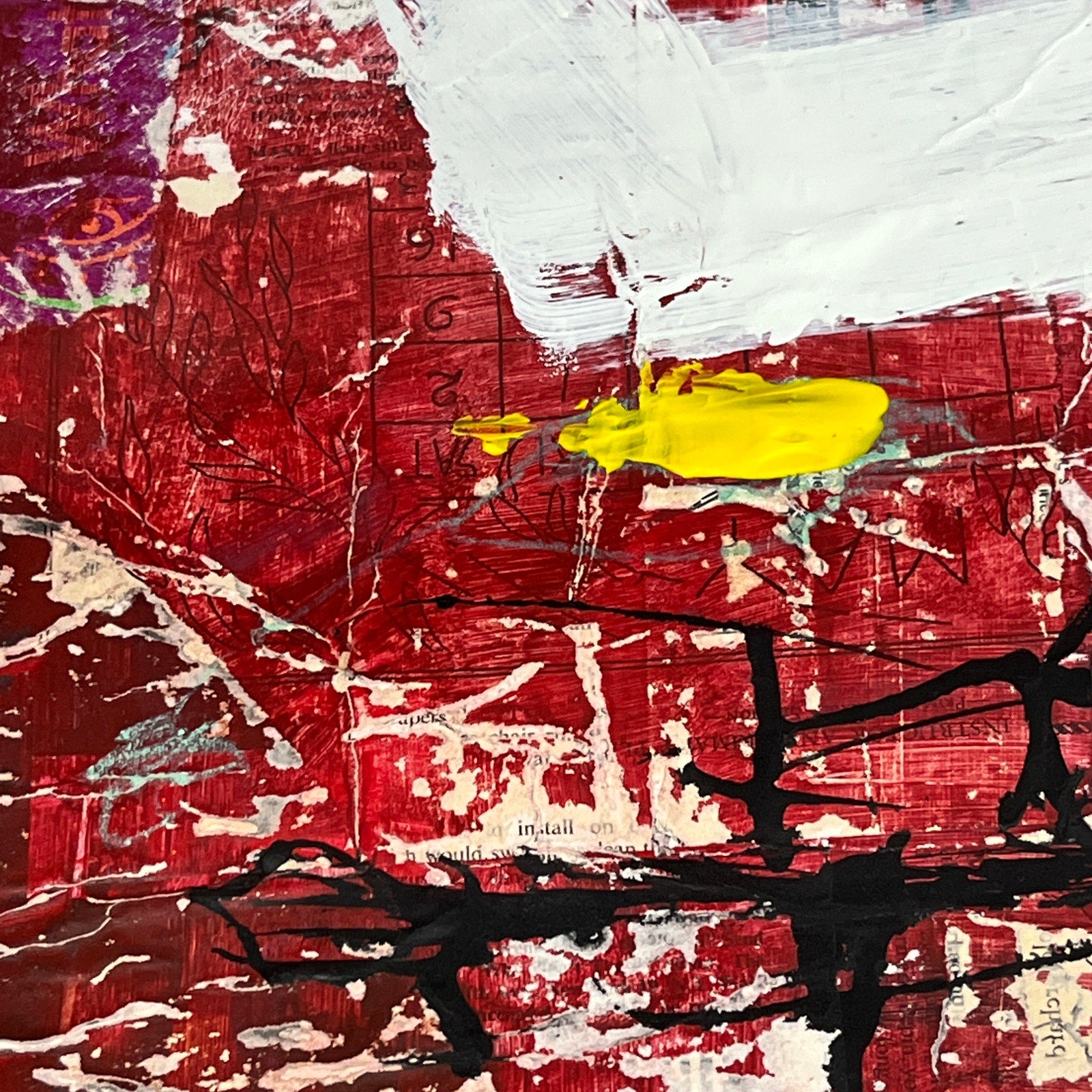 Comes framed and ready to hang. This piece is a collage painting on tagboard. This is a one-of-a-kind piece by abstract artist Sam Lewis. This is a great and affordable way to own a piece of original art and add a pop of color to your space. Also a great gift idea.