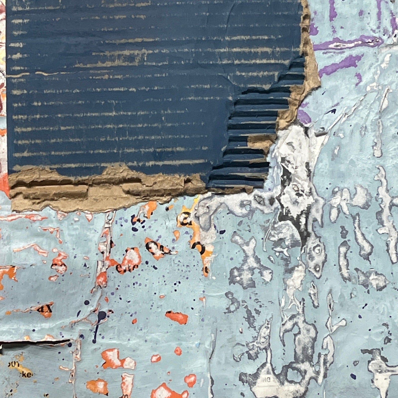 Comes framed and ready to hang. This piece is a collage painting on tagboard. This is a one-of-a-kind piece by abstract artist Sam Lewis. This is a great and affordable way to own a piece of original art and add a pop of color to your space. Also a great gift idea.