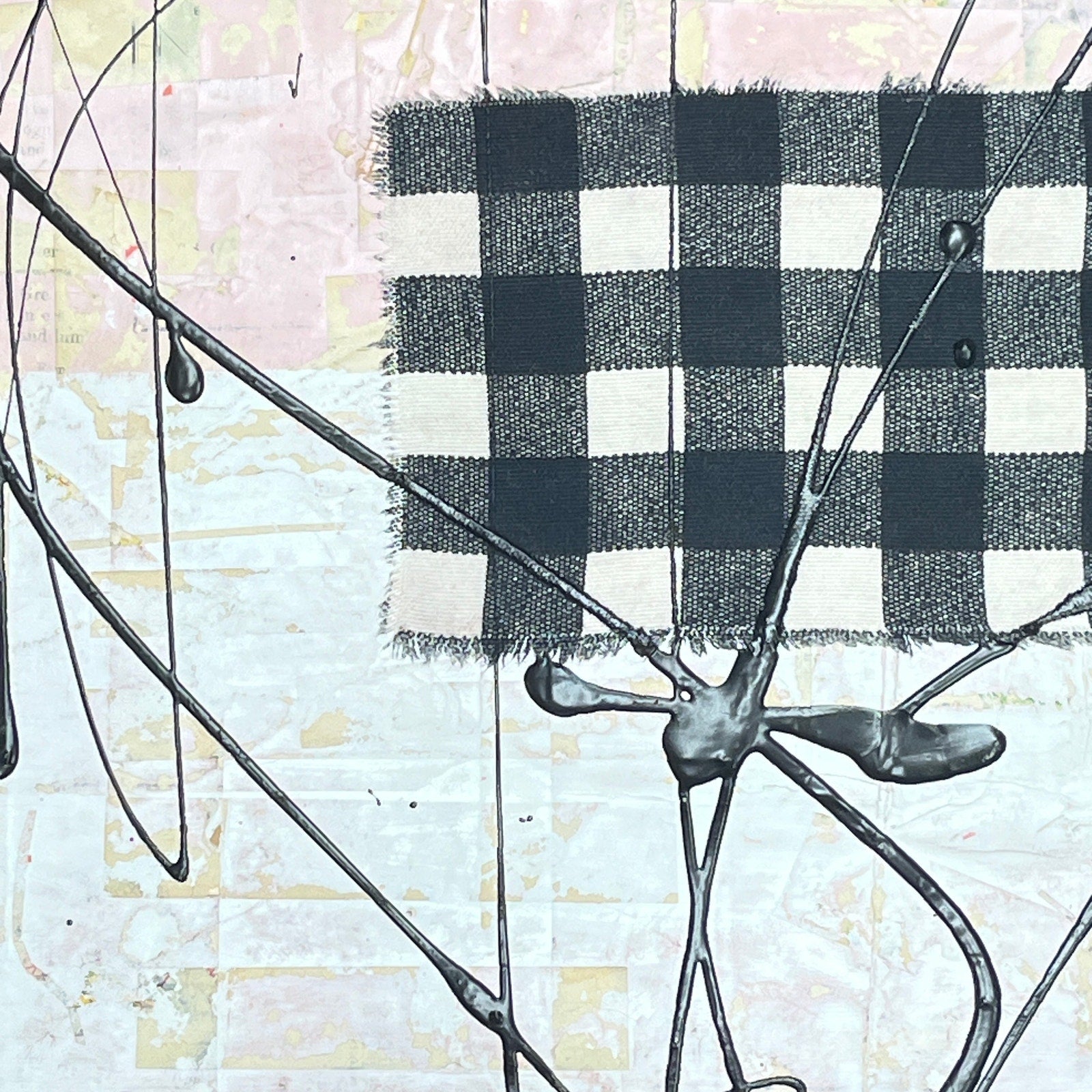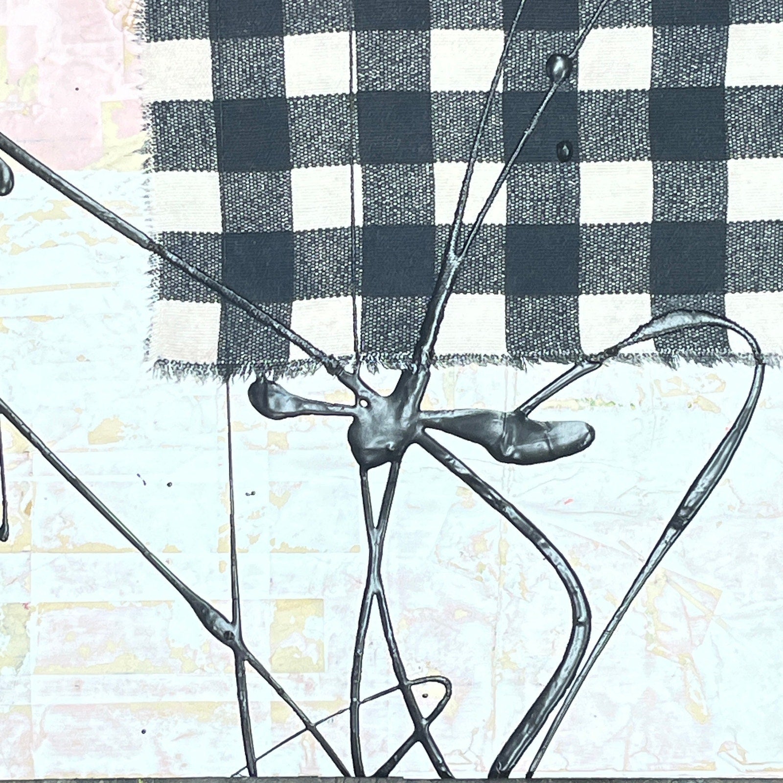 Comes framed and ready to hang. This piece is a collage painting on tagboard. This is a one-of-a-kind piece by abstract artist Sam Lewis. This is a great and affordable way to own a piece of original art and add a pop of color to your space. Also a great gift idea.
