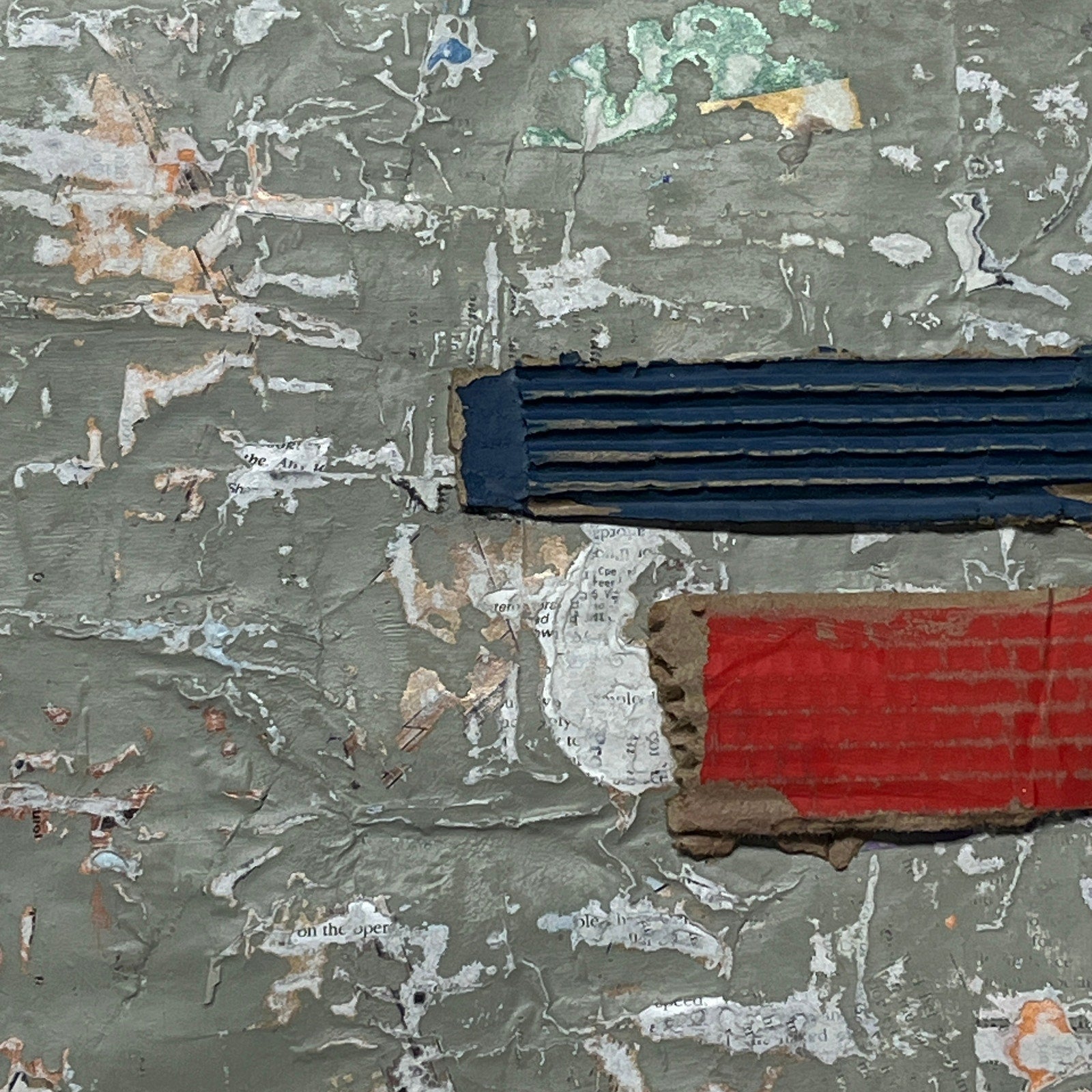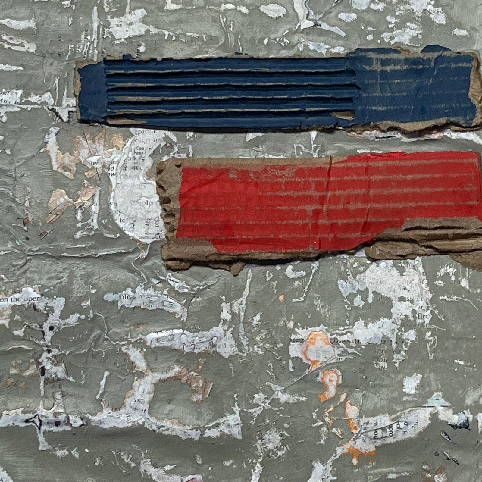Comes framed and ready to hang. This piece is a collage painting on tagboard. This is a one-of-a-kind piece by abstract artist Sam Lewis. This is a great and affordable way to own a piece of original art and add a pop of color to your space. Also a great gift idea.