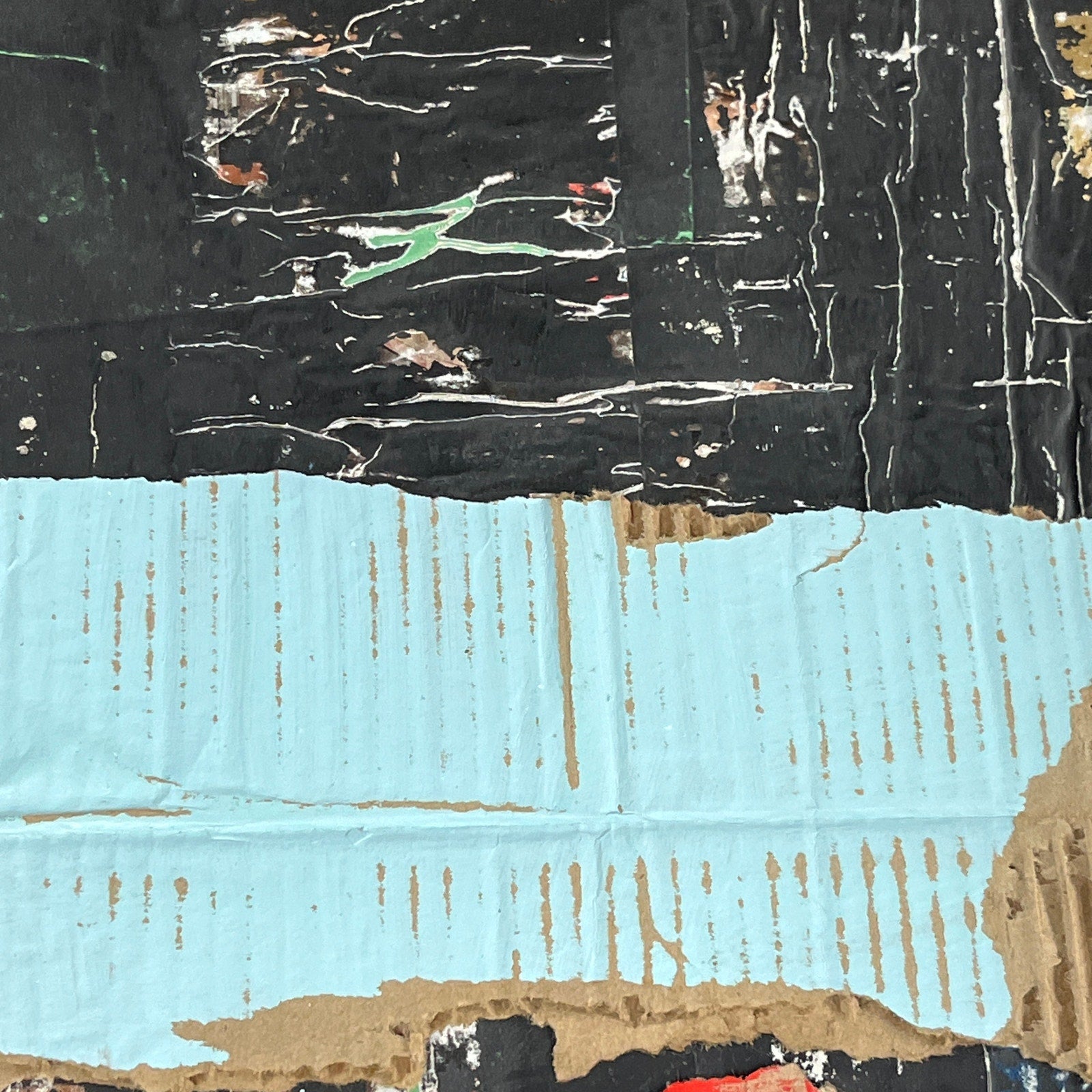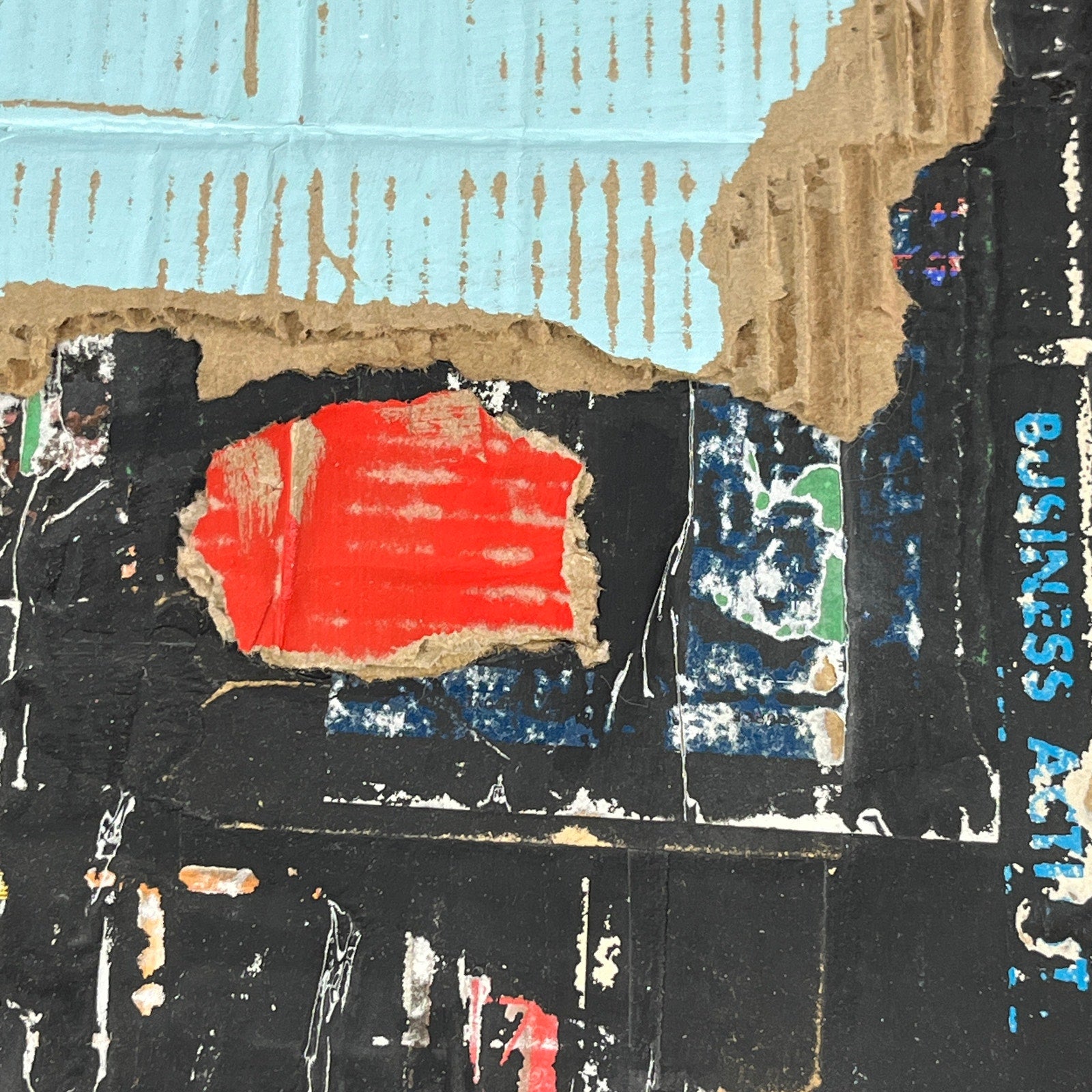 Comes framed and ready to hang. This piece is a collage painting on tagboard. This is a one-of-a-kind piece by abstract artist Sam Lewis. This is a great and affordable way to own a piece of original art and add a pop of color to your space. Also a great gift idea.