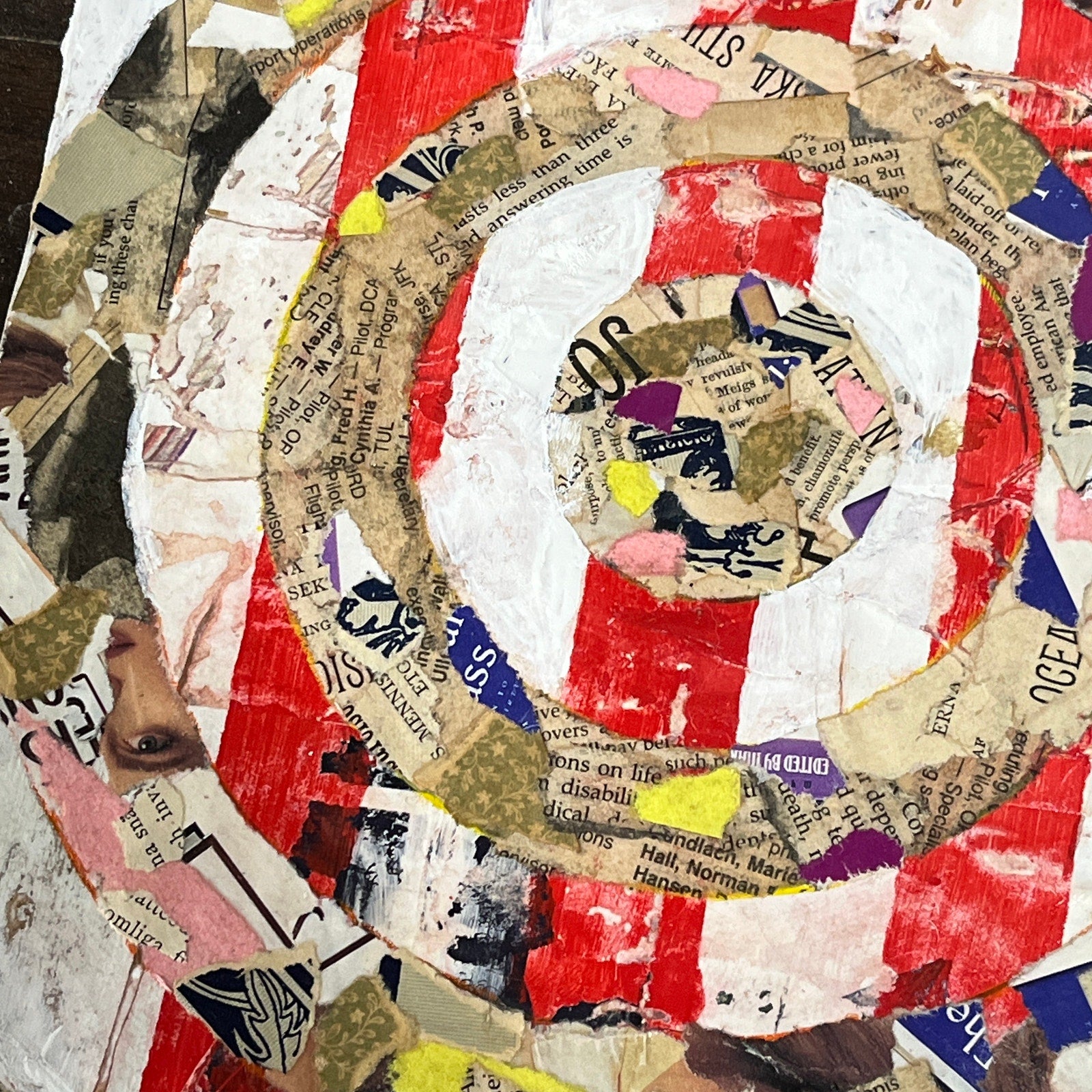 Comes framed and ready to hang. This piece is a collage painting on tagboard. This is a one-of-a-kind piece by abstract artist Sam Lewis. This is a great and affordable way to own a piece of original art and add a pop of color to your space. Also a great gift idea.