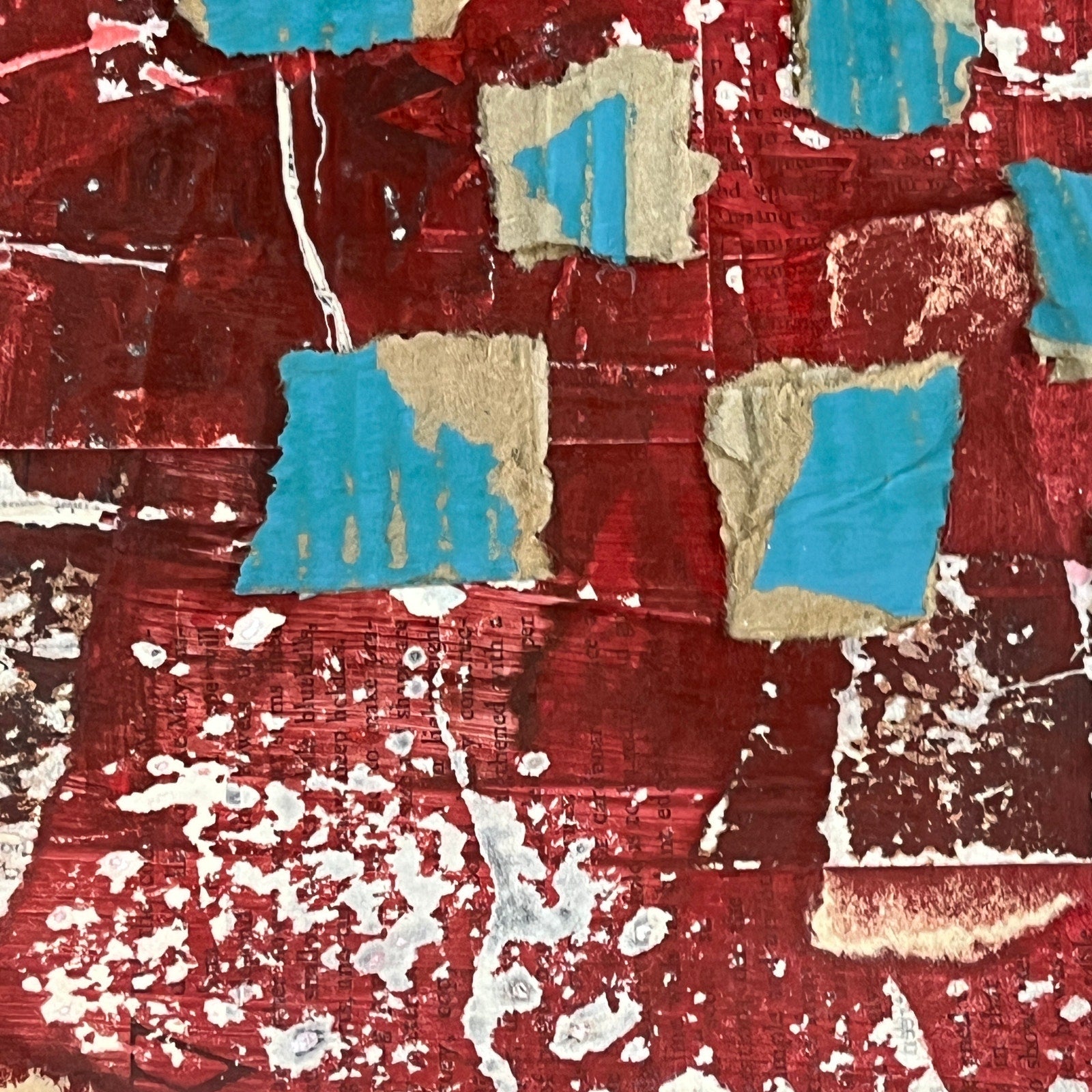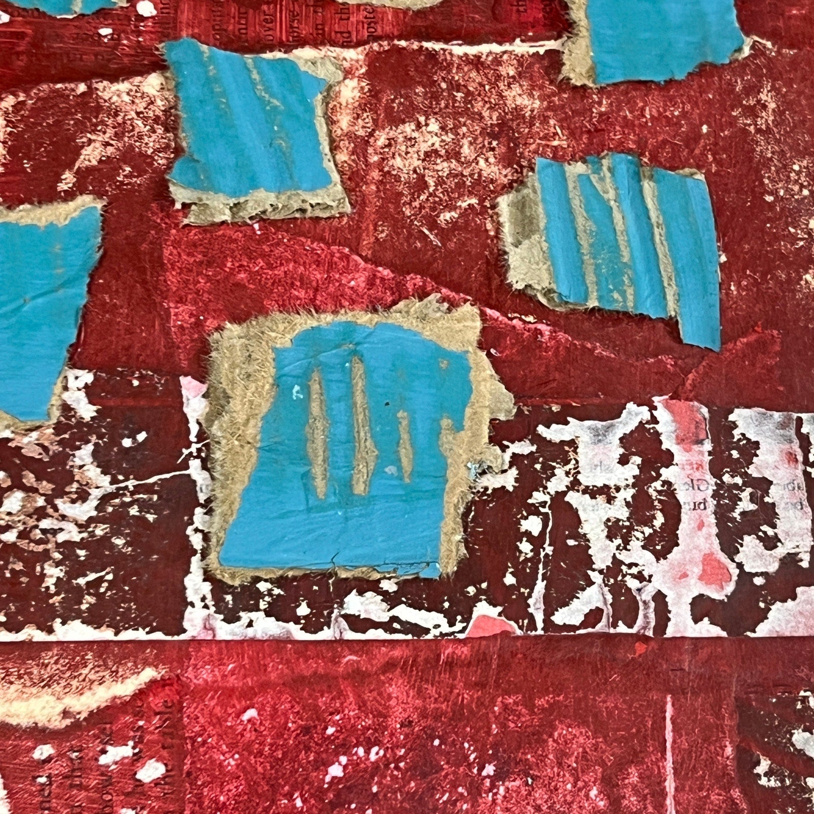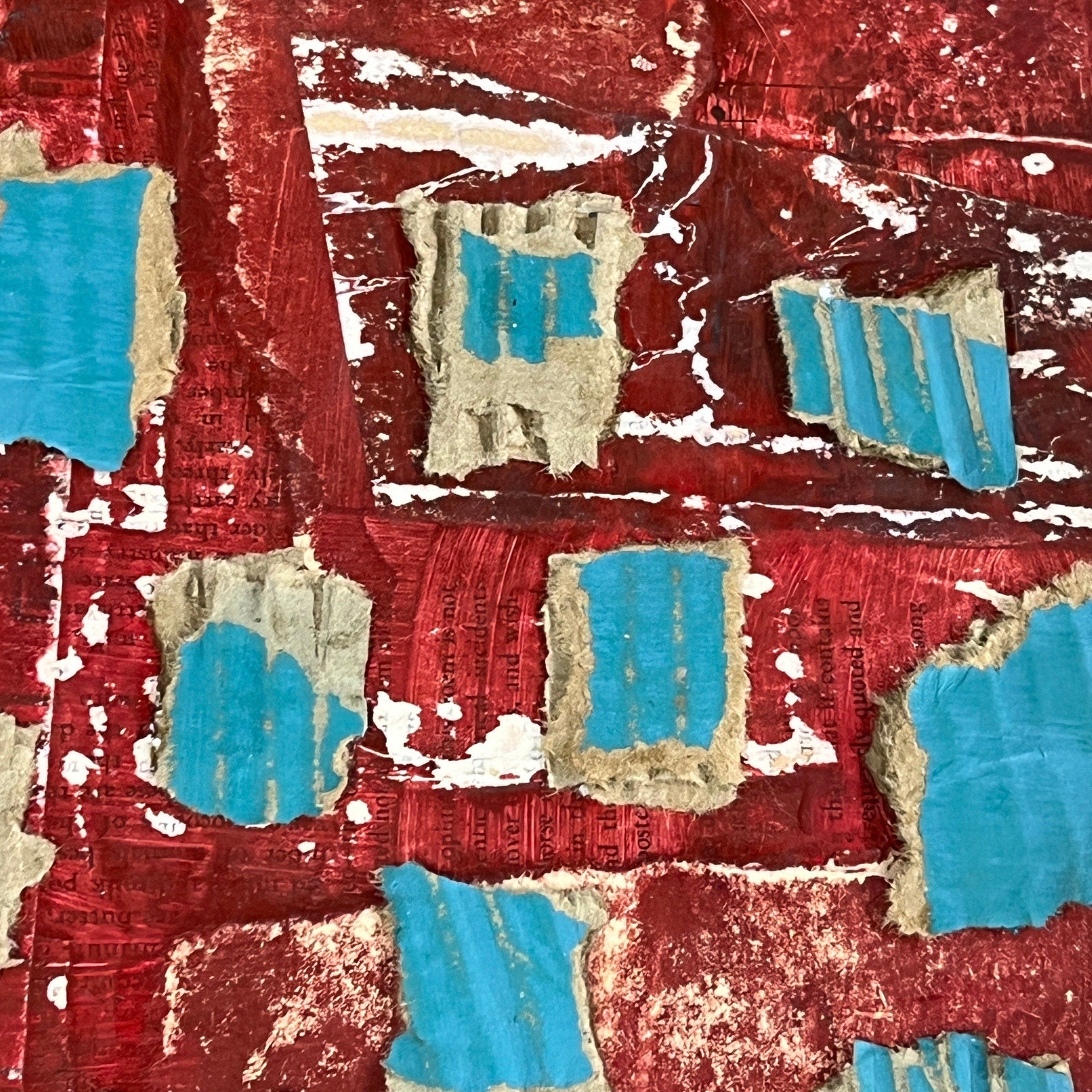 Comes framed and ready to hang. This piece is a collage painting on tagboard. This is a one-of-a-kind piece by abstract artist Sam Lewis. This is a great and affordable way to own a piece of original art and add a pop of color to your space. Also a great gift idea.