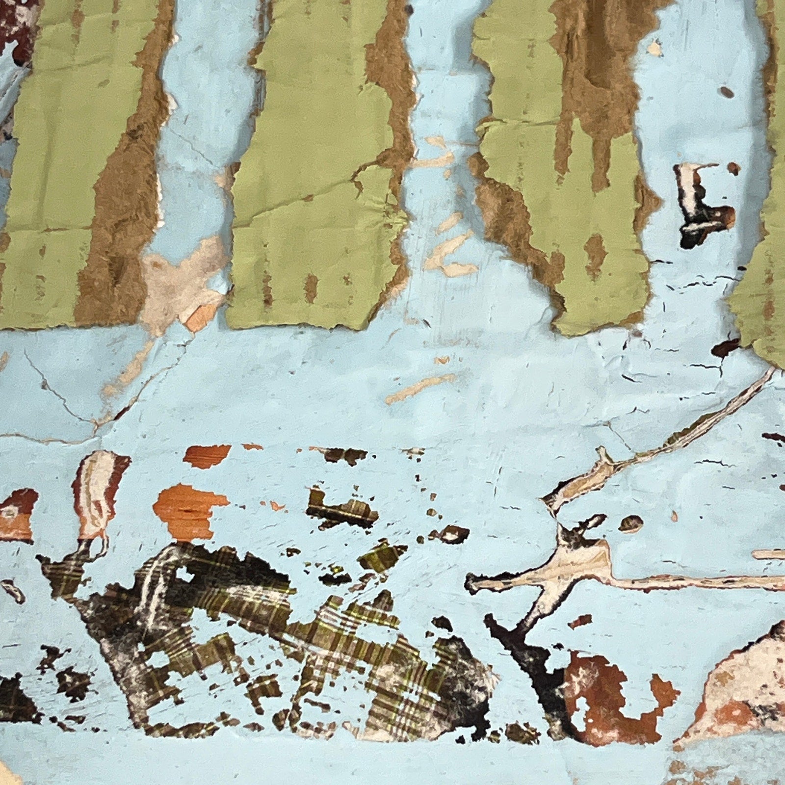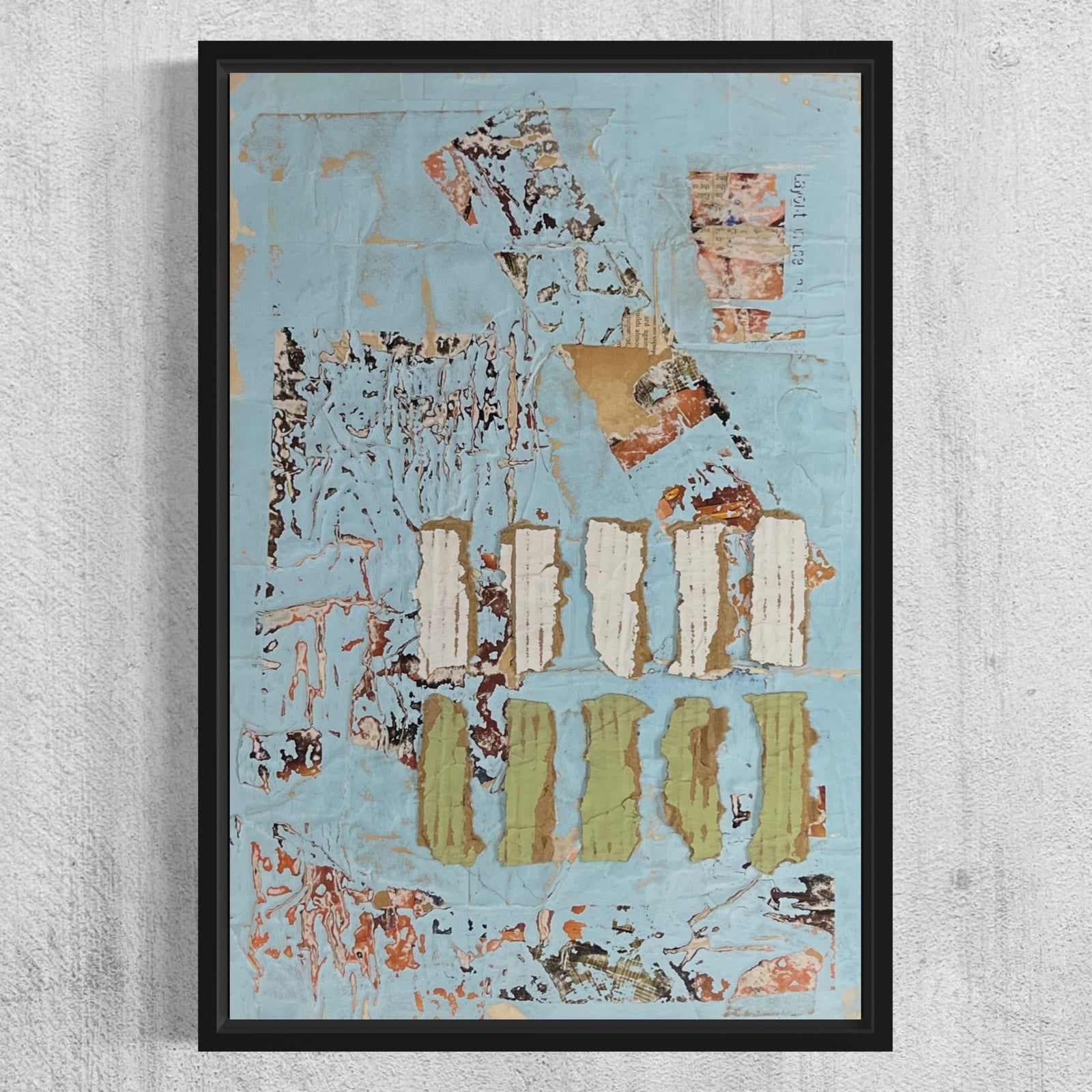 Comes framed and ready to hang. This piece is a collage painting on tagboard. This is a one-of-a-kind piece by abstract artist Sam Lewis. This is a great and affordable way to own a piece of original art and add a pop of color to your space. Also a great gift idea.