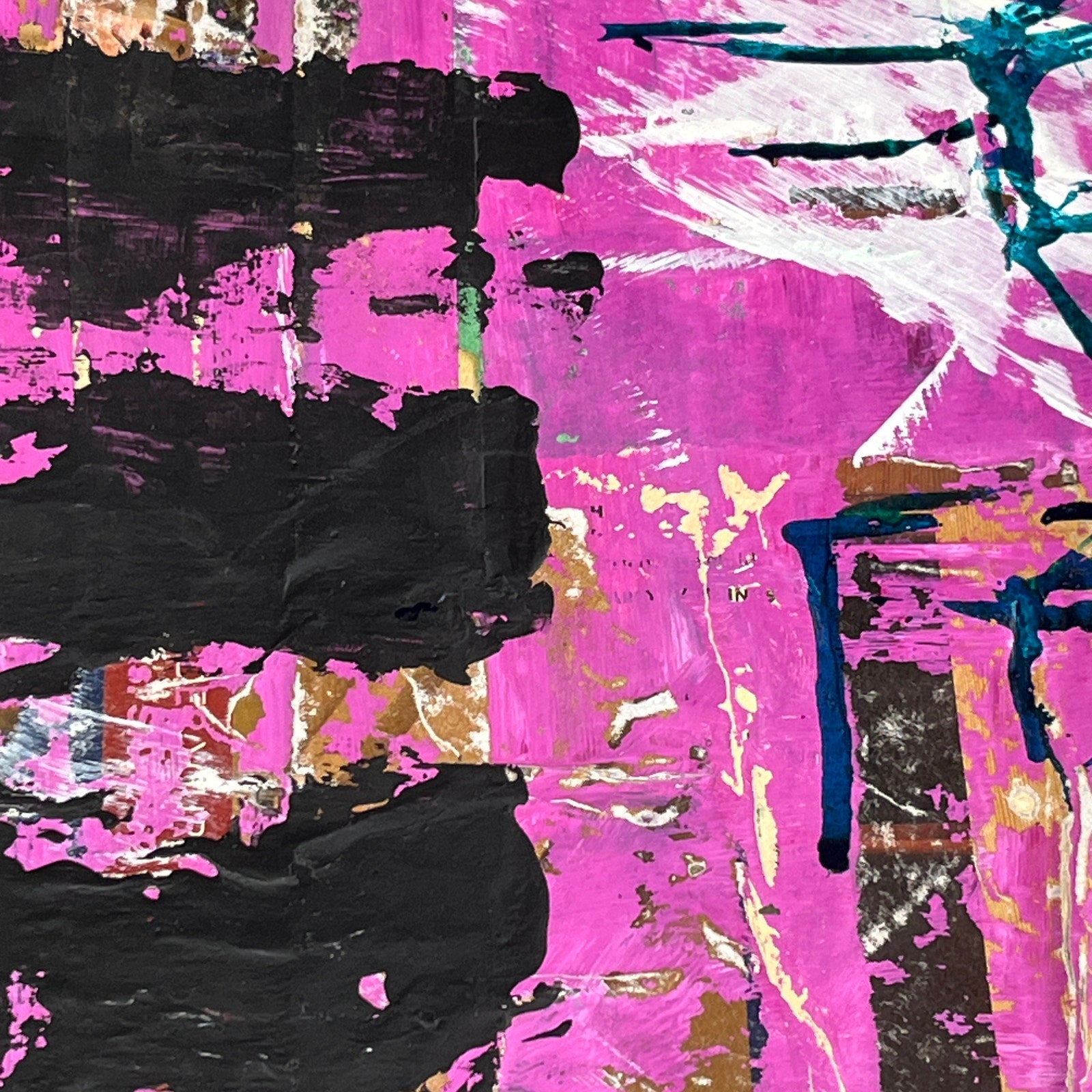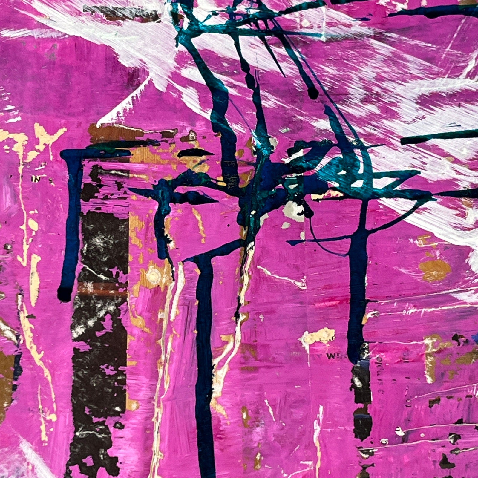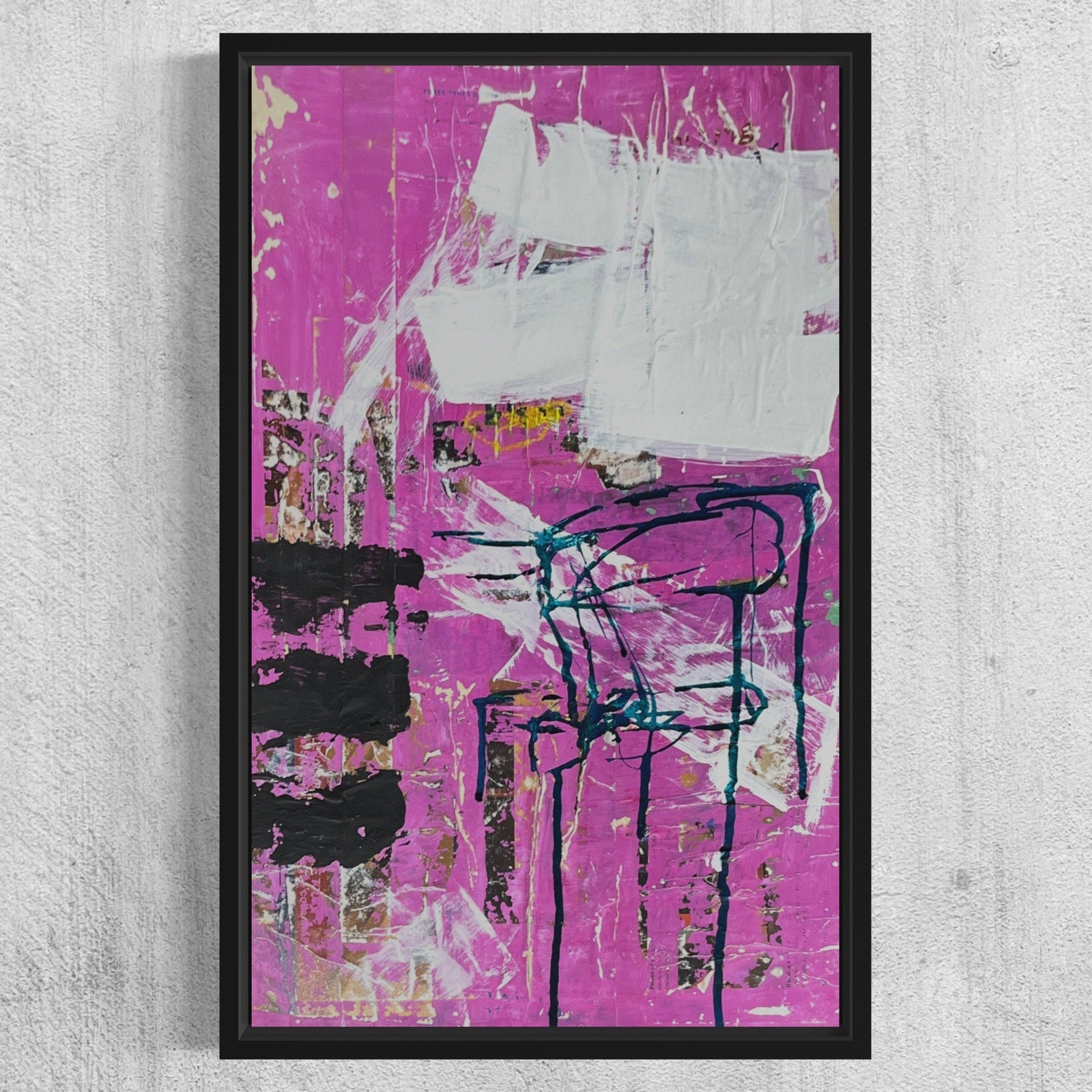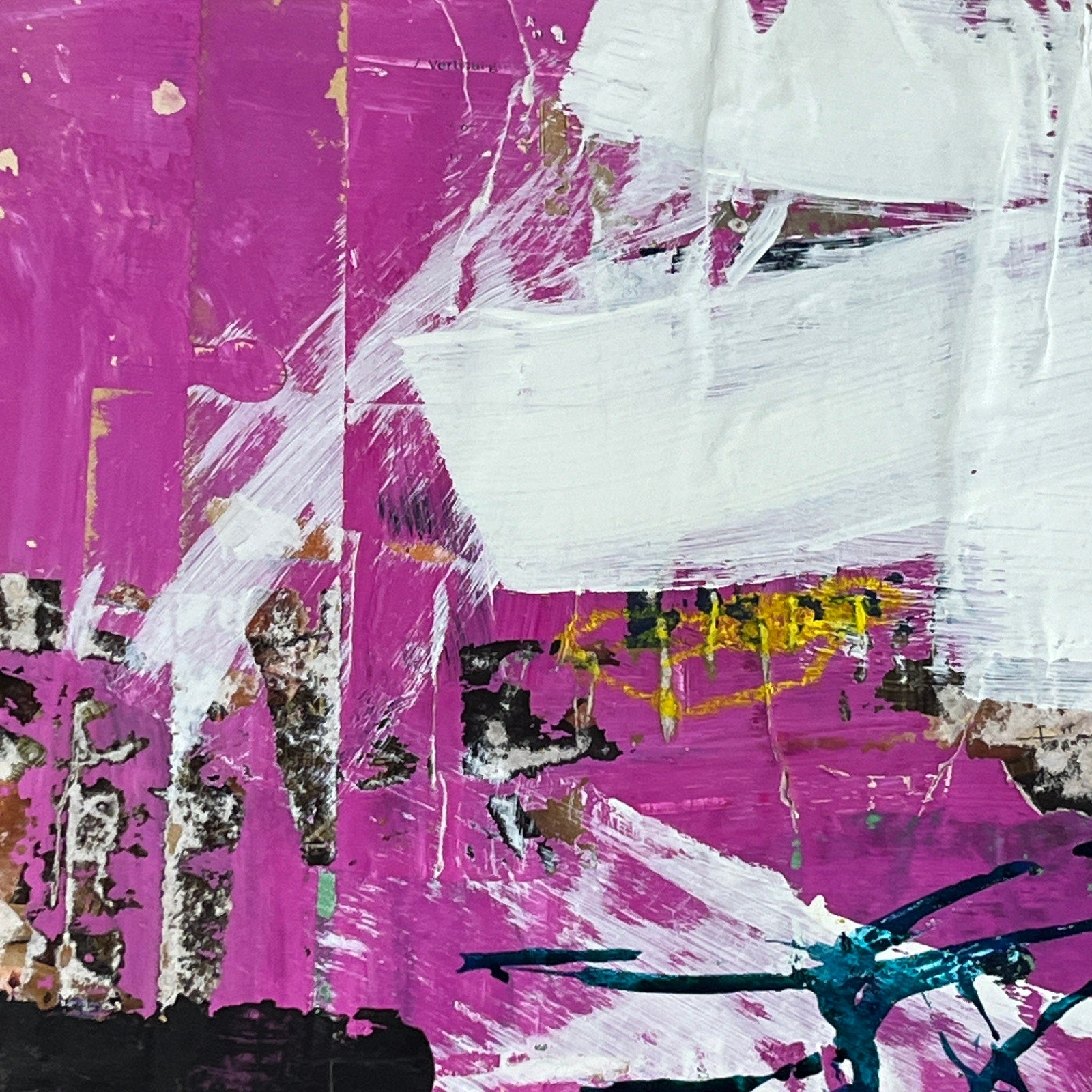 Comes framed and ready to hang. This piece is a collage painting on tagboard. This is a one-of-a-kind piece by abstract artist Sam Lewis. This is a great and affordable way to own a piece of original art and add a pop of color to your space. Also a great gift idea.
