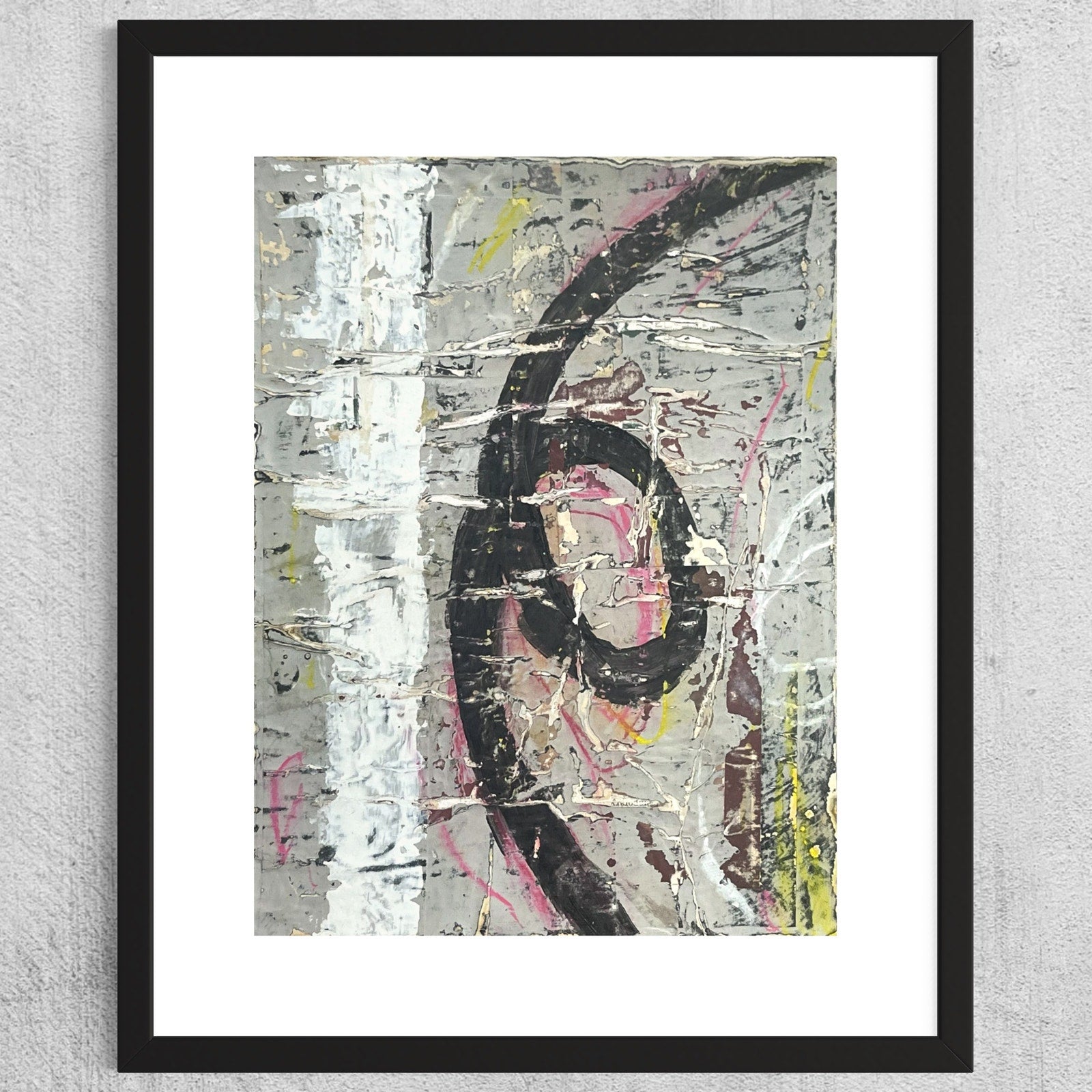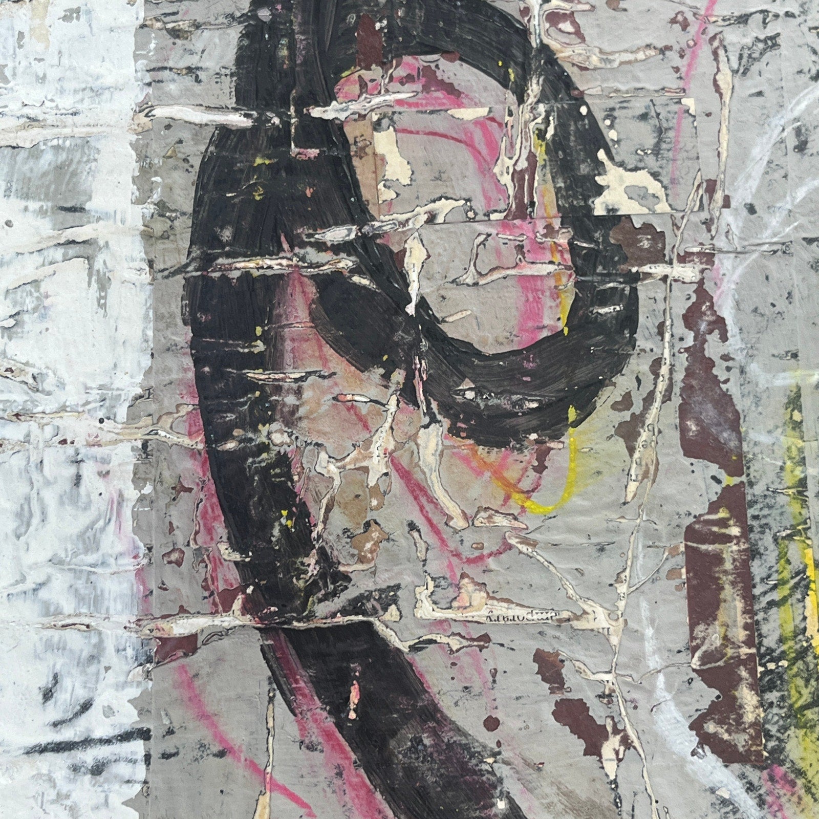 Original Grunge Minimalist Modern Art Collage Painting 8.5x11 "Anapnea" Signed