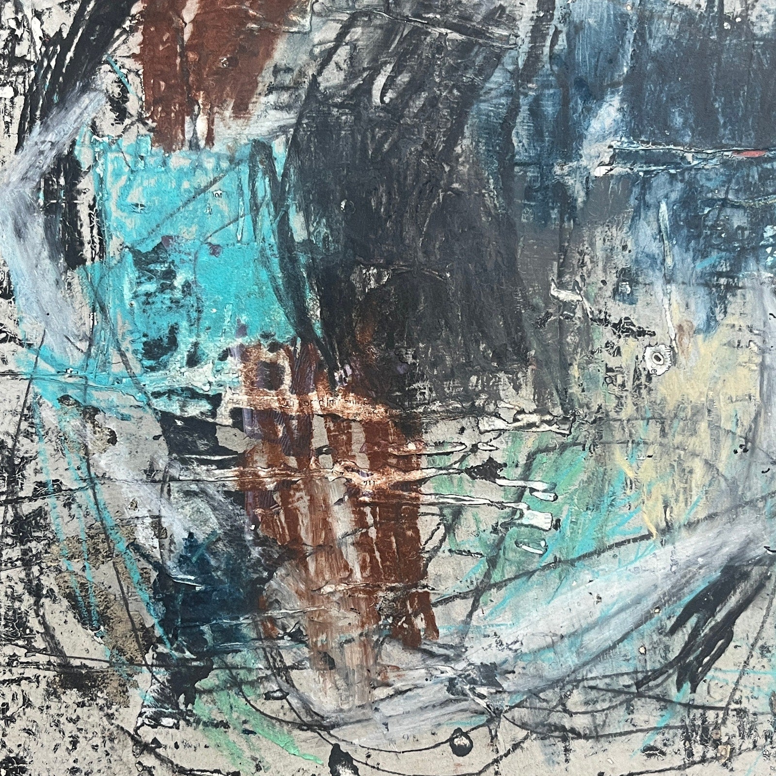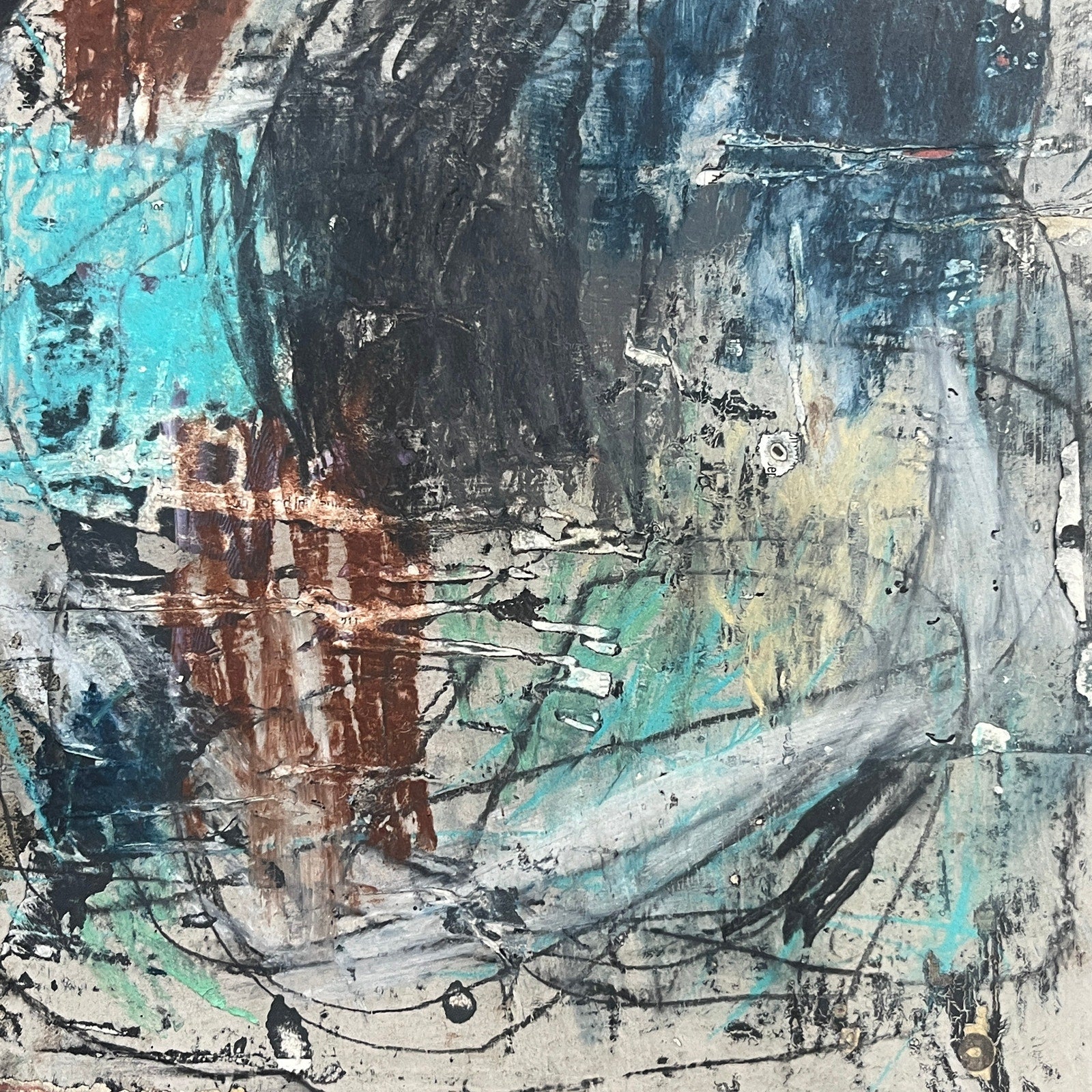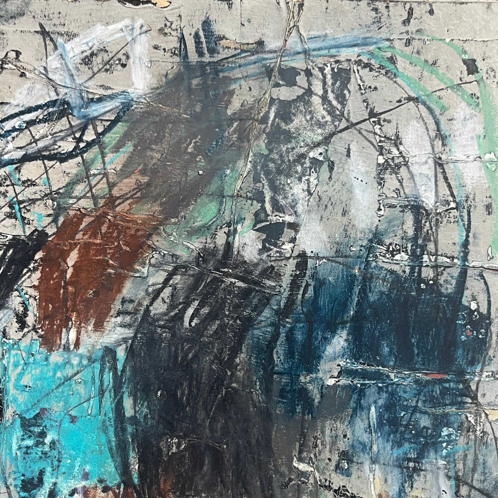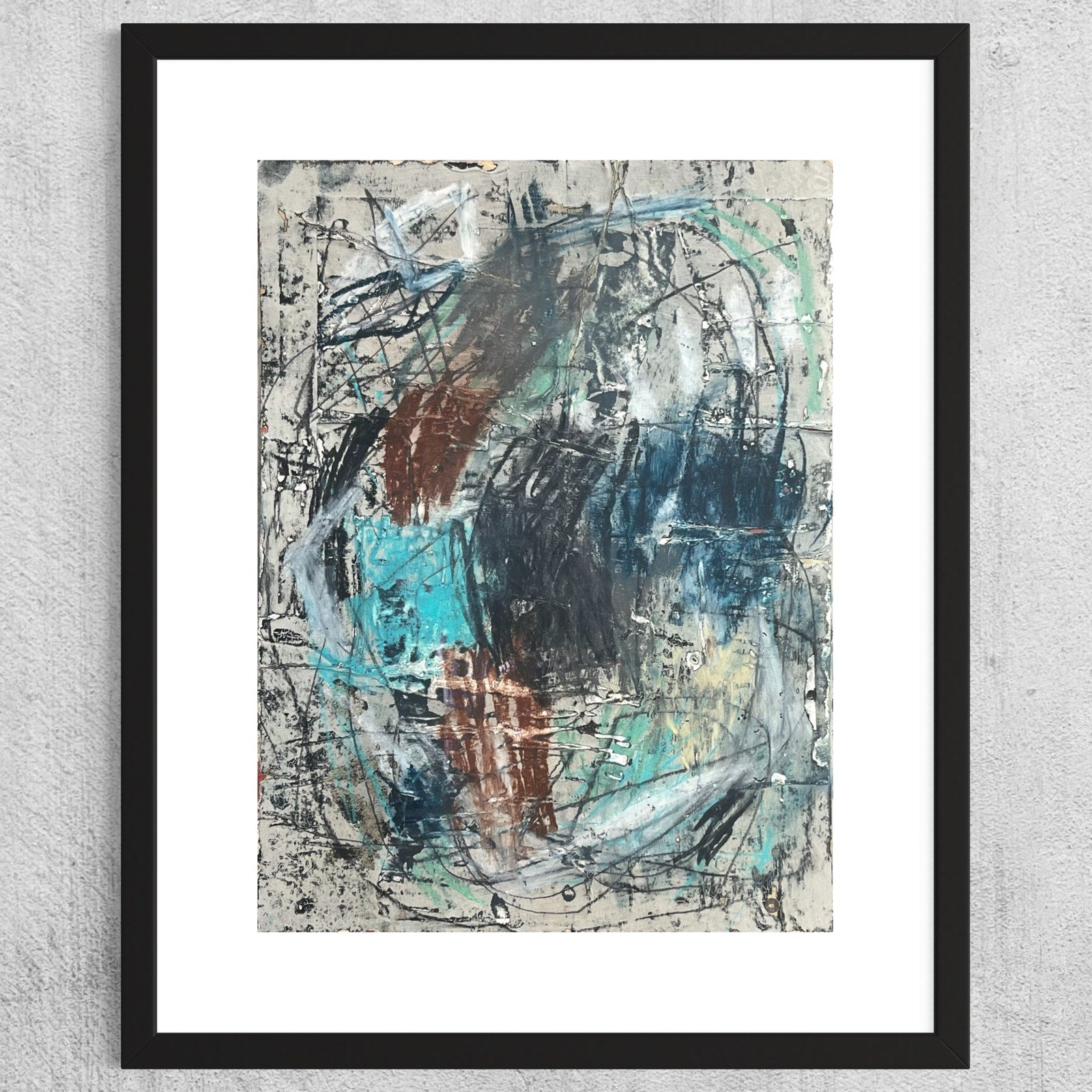 Original Grunge Minimalist Modern Art Collage Painting 8.5x11 "Logogram" Signed
