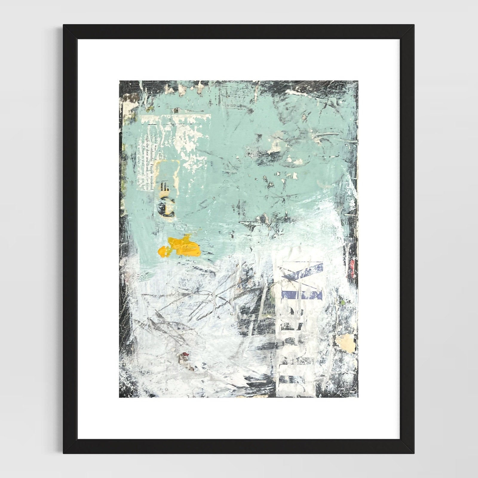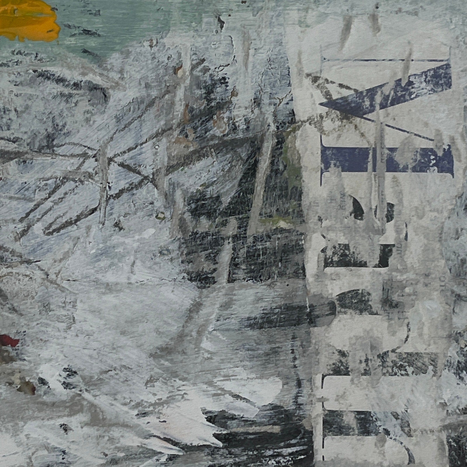 Original Grunge Minimalist Modern Art Collage Painting 8.5x11 "Logogriph" Signed