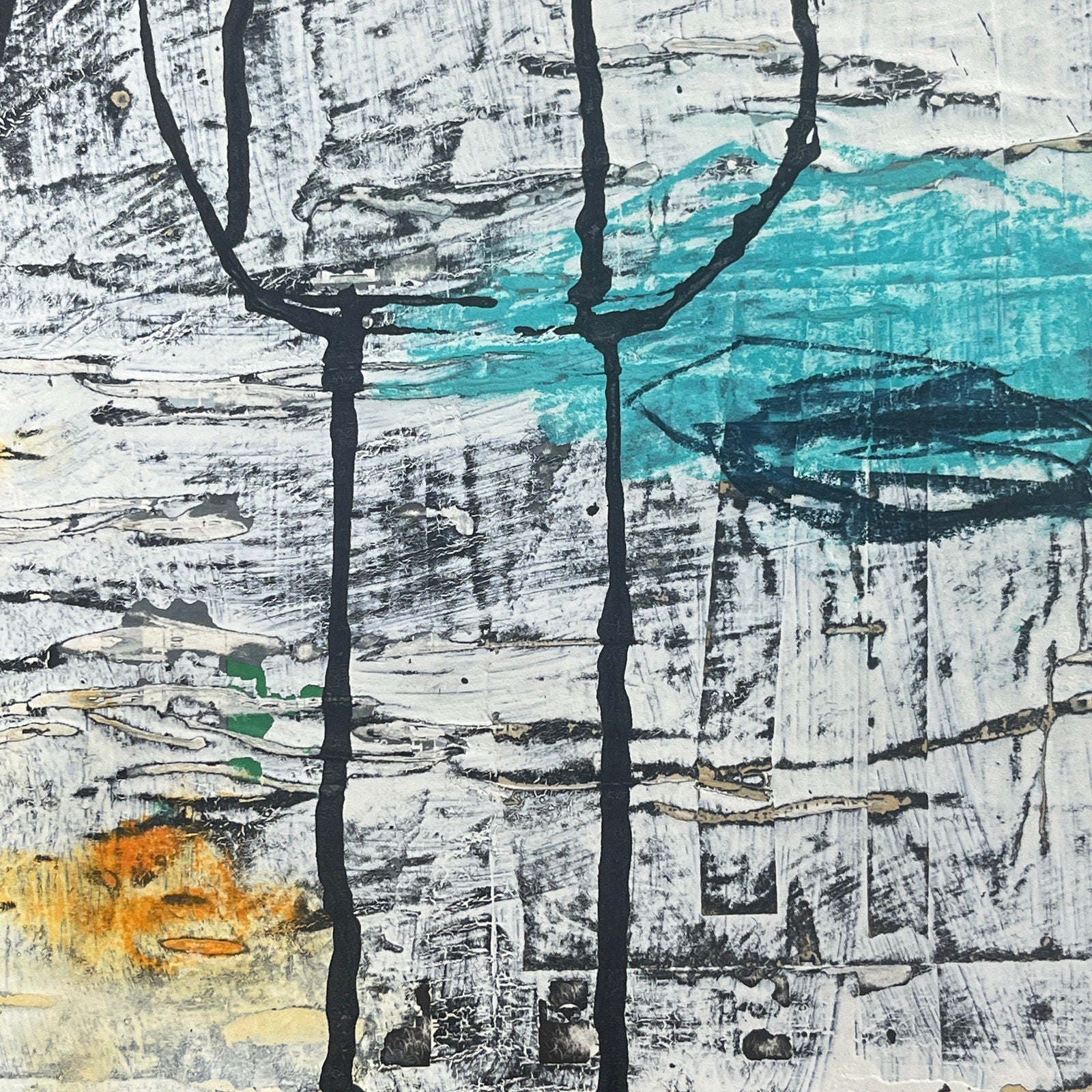 Original Grunge Minimalist Modern Art Collage Painting 8.5x11 "Lysis" Signed