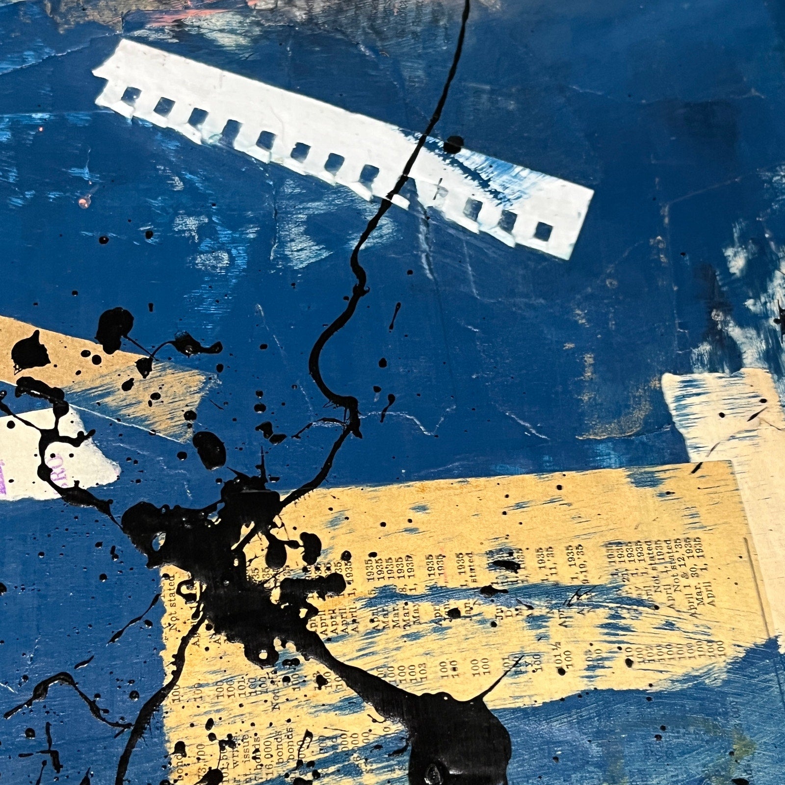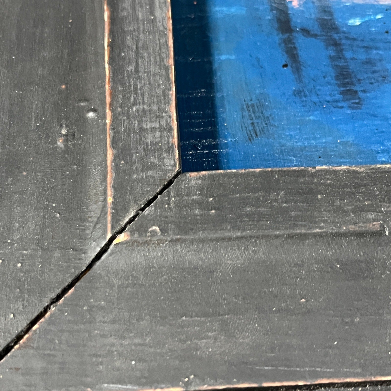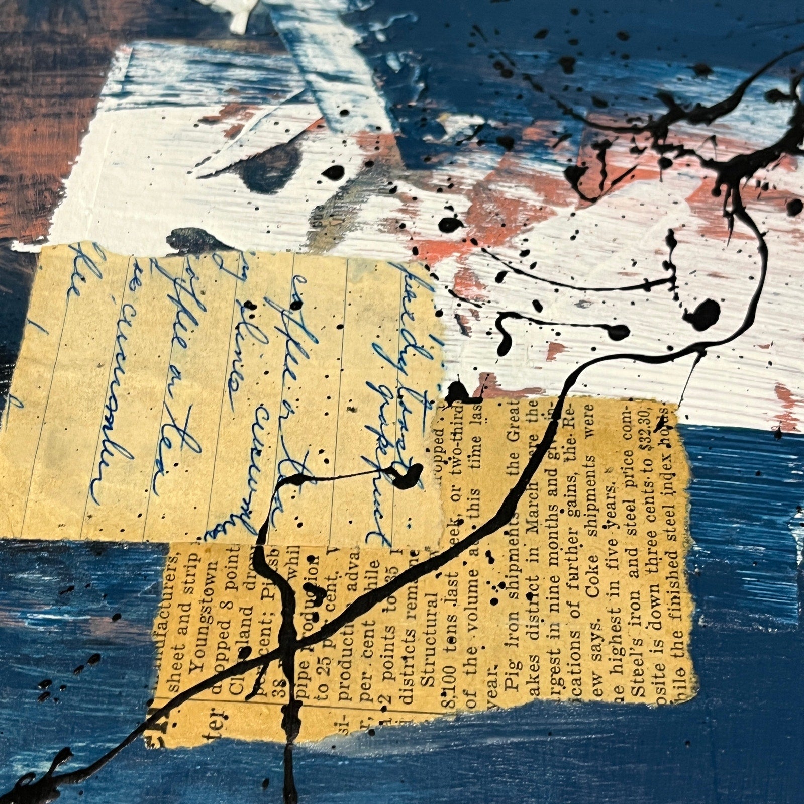 This piece is framed in a large vintage distressed black wood frame it measures about 24x21". This is an original mixed media collage paing by abstract artist Sam Lewis. It features various paper dating back over 125 years to the mid 1800s. This is a great and affordable way to own a piece of original art and add a pop of color to your space. Also a great gift idea.