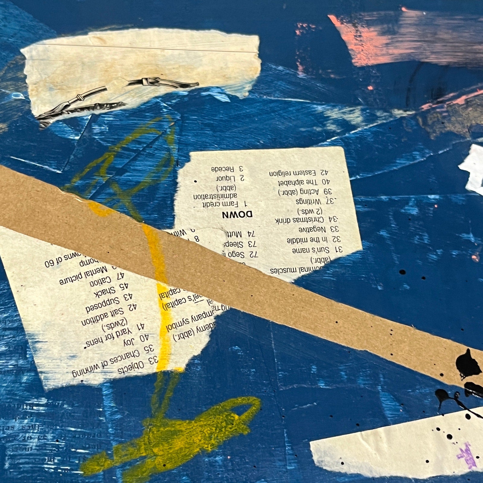 Original Large Framed Collage Abstract Art Painting 24x21 "Connection"