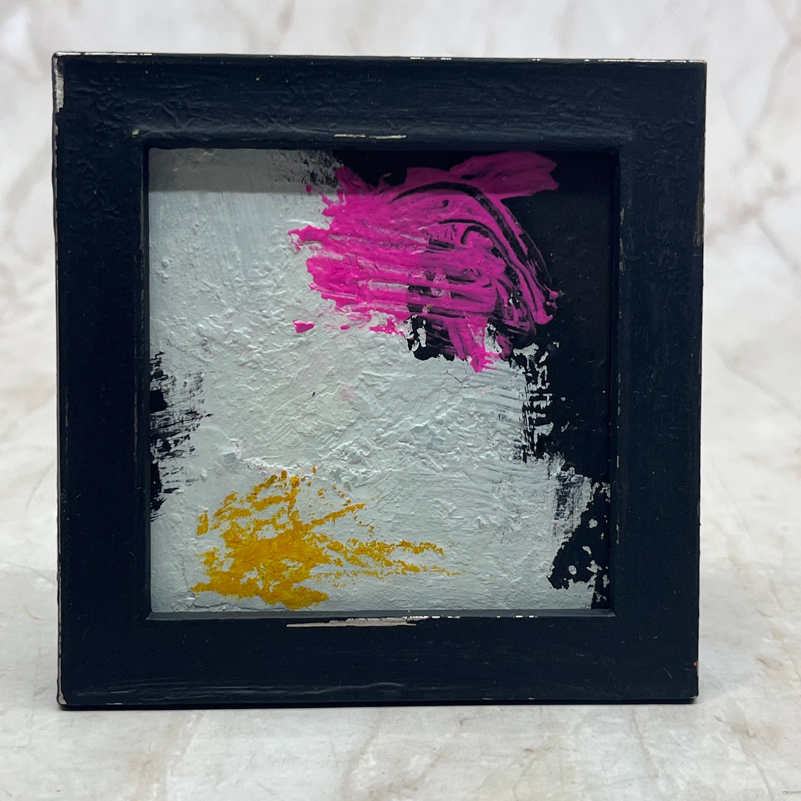 3.5" Abstract Mixed Media Art Painting. Original piece by artist Sam Lewis. This is a miniature painting done in a reclaimed 3.5" frame, perfect for a desktop or end table.