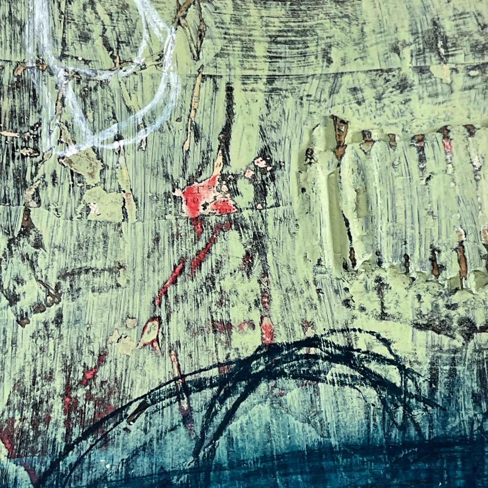 Original Minimalist Modern Art Collage Painting 8.5x11 "Laetificate" Signed
