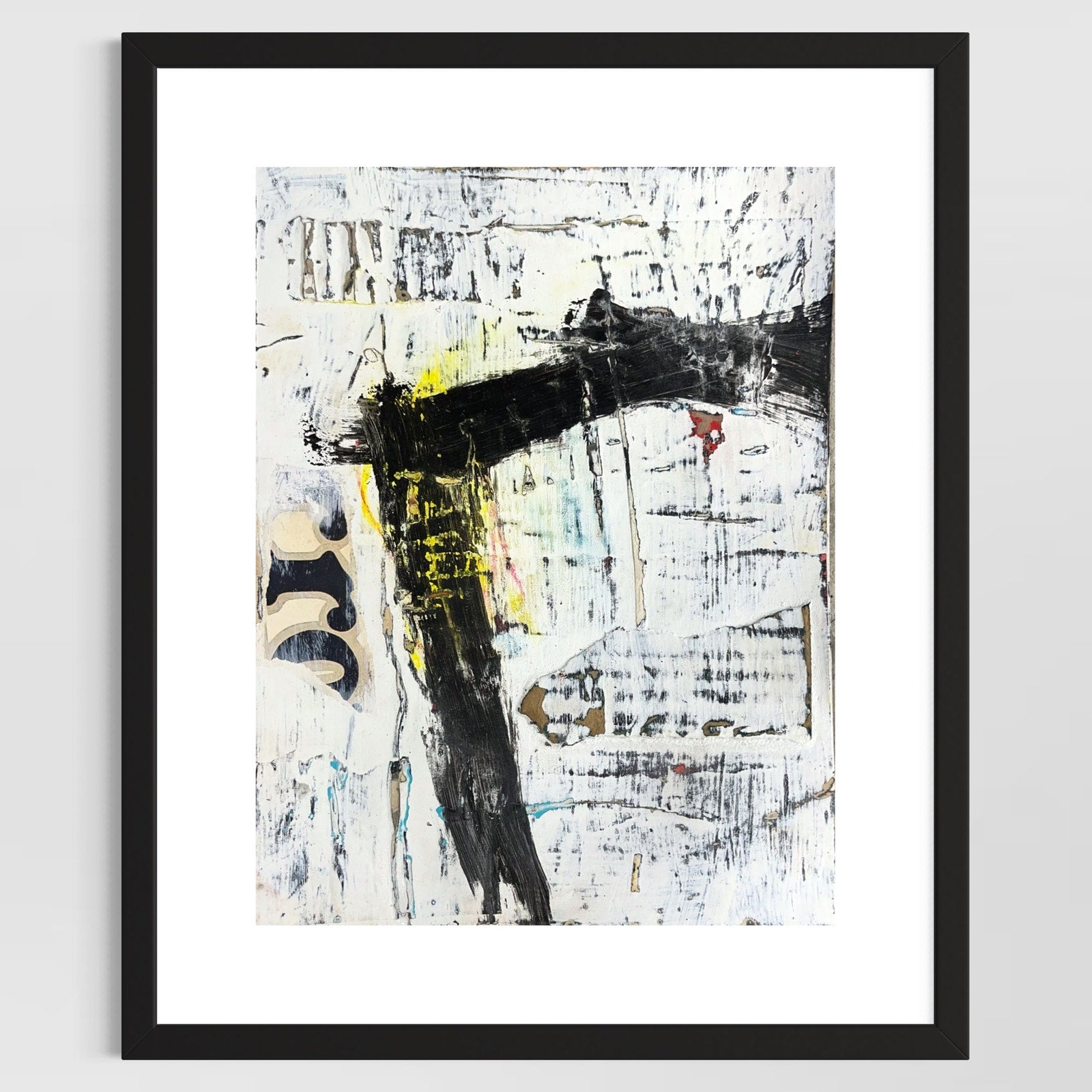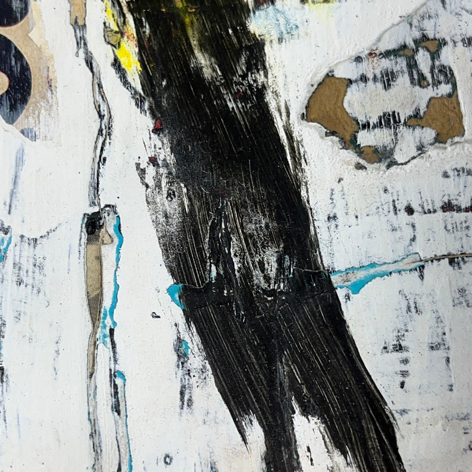 Original Grunge Minimalist Modern Art Collage Painting 8.5x11 "Quadripole" Signed