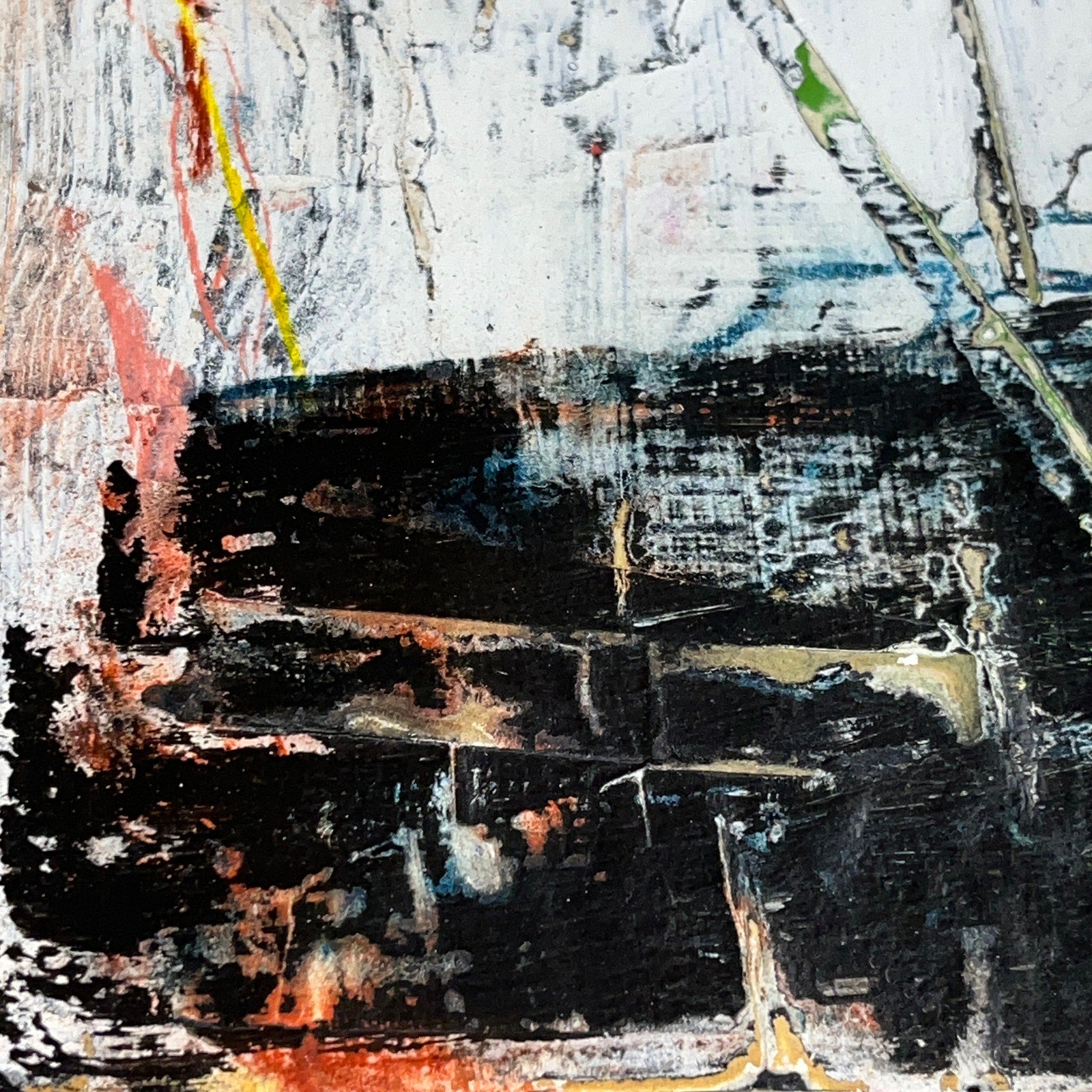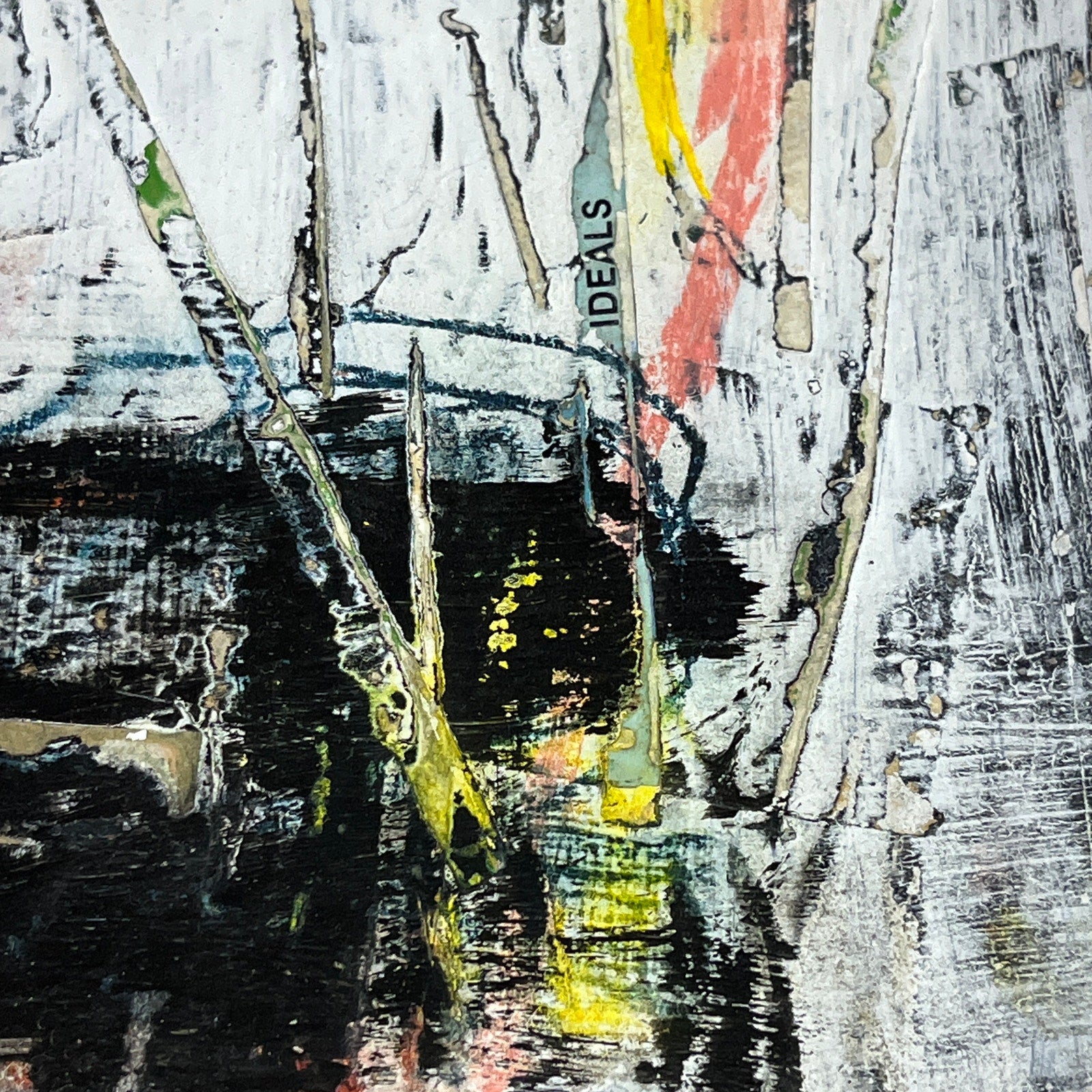 Original Grunge Minimalist Modern Art Collage Painting 8.5x11 "Rhynchodont" Signed