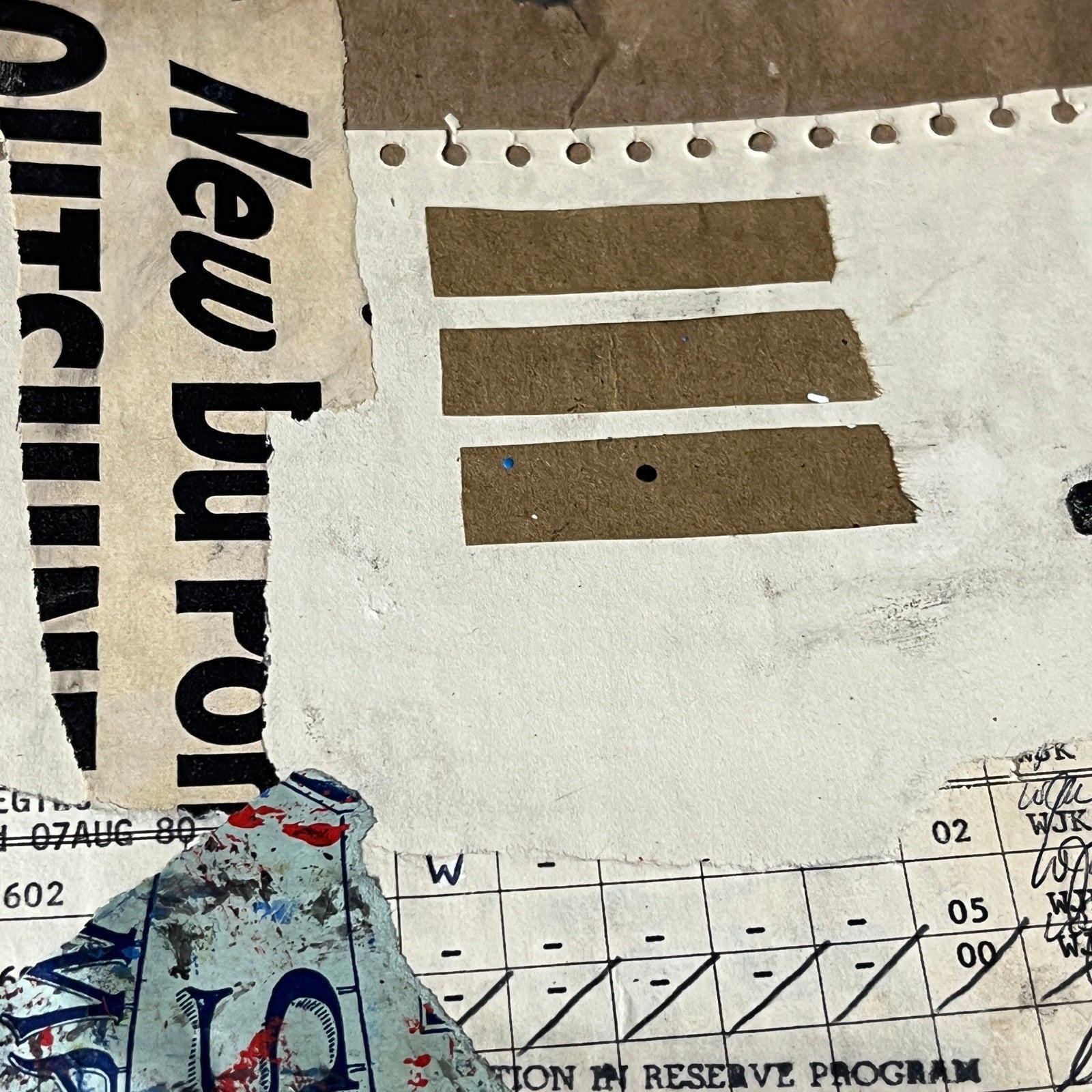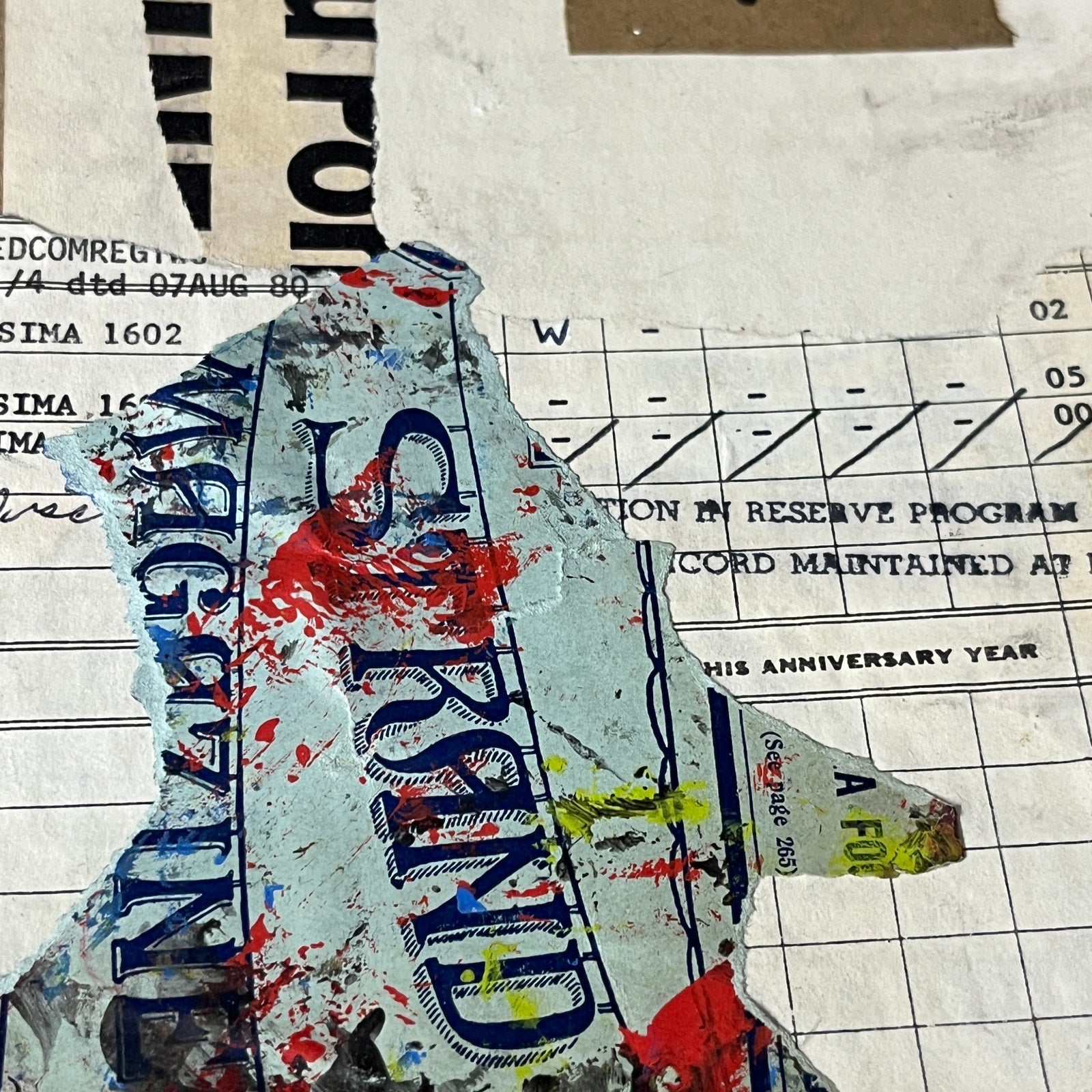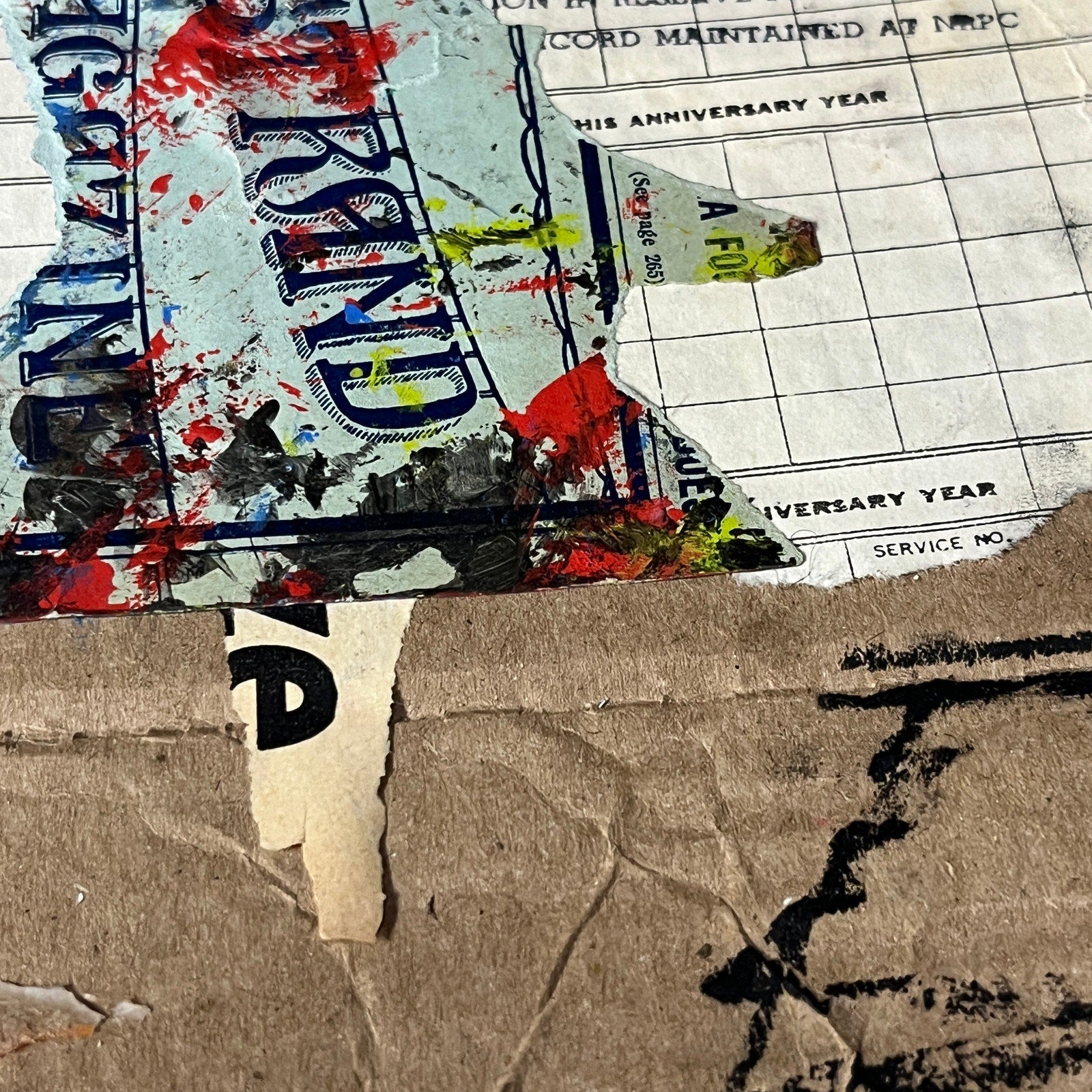 FRAME NOT INCLUDED. This piece is a collage made from a various vintage and antique paper dating to 1850. This is an original collage painting by abstract artist Sam Lewis. This is a great and affordable way to own a piece of original art and add a pop of color to your space. Also a great gift idea.