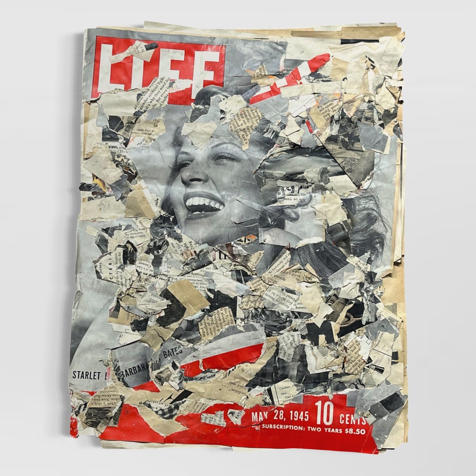 Original Mixed Media Abstract Art Collage 11x14 "1945 May 28 Life Magazine"