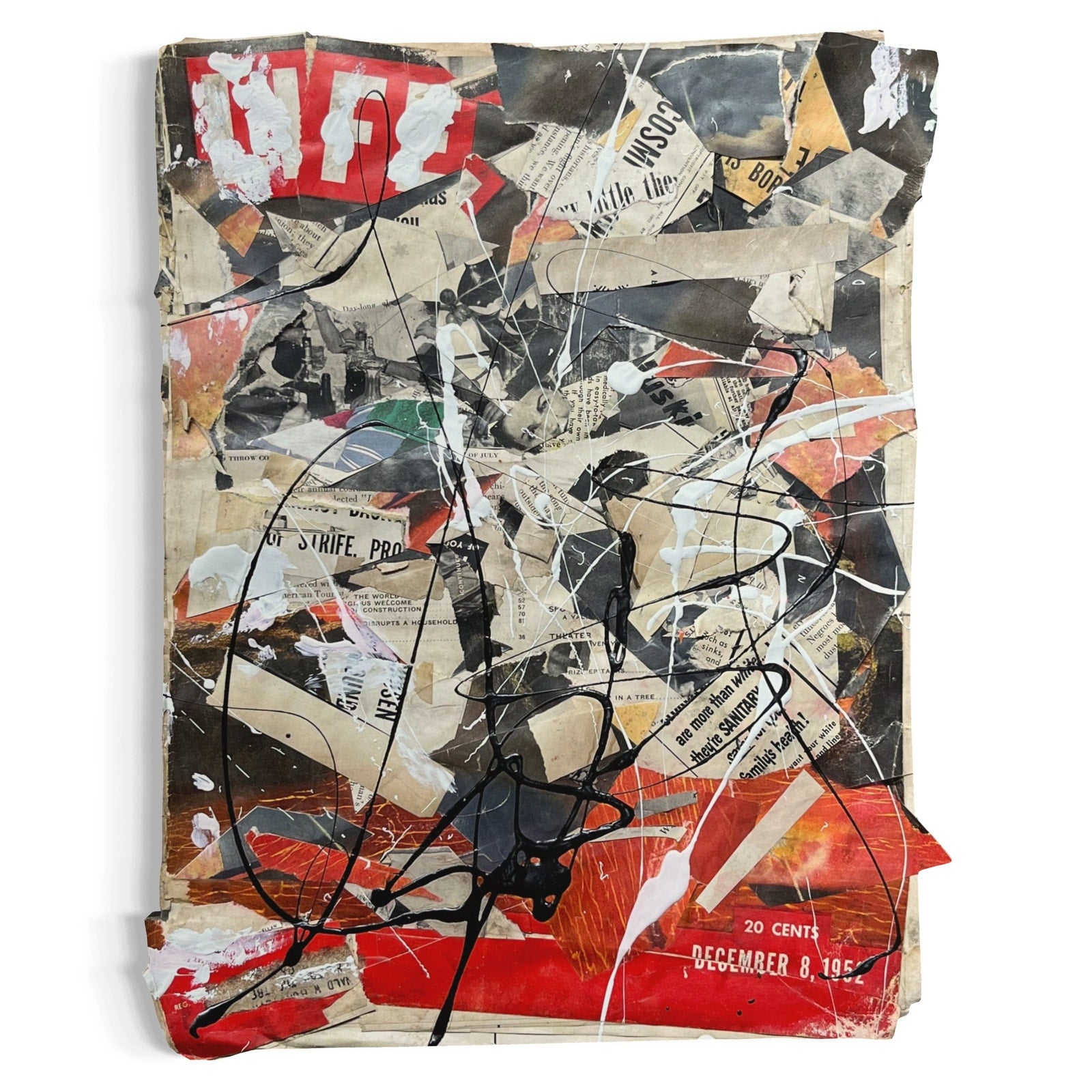 Original Mixed Media Abstract Art Collage 11x14 "1952 Dec 8 Life Magazine"