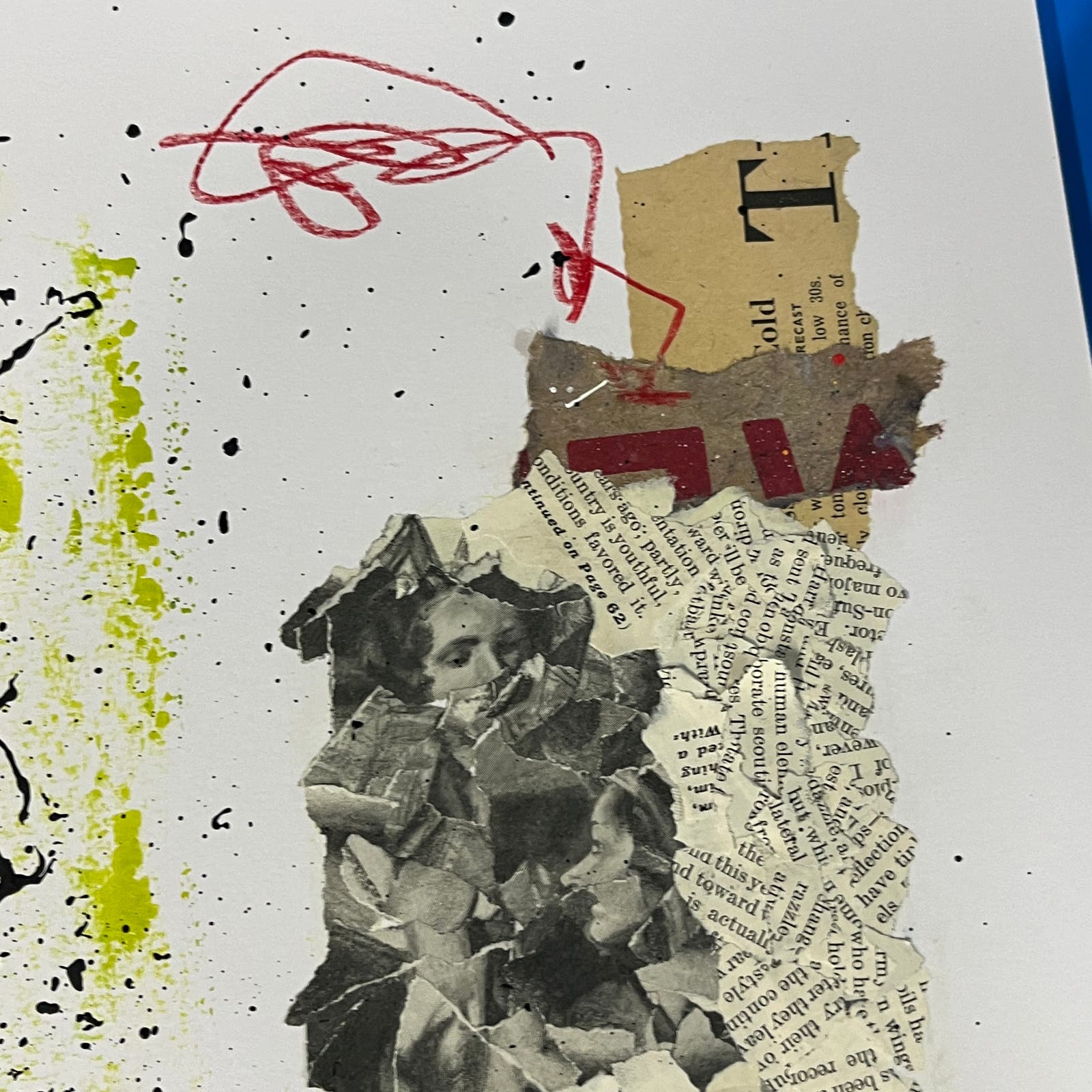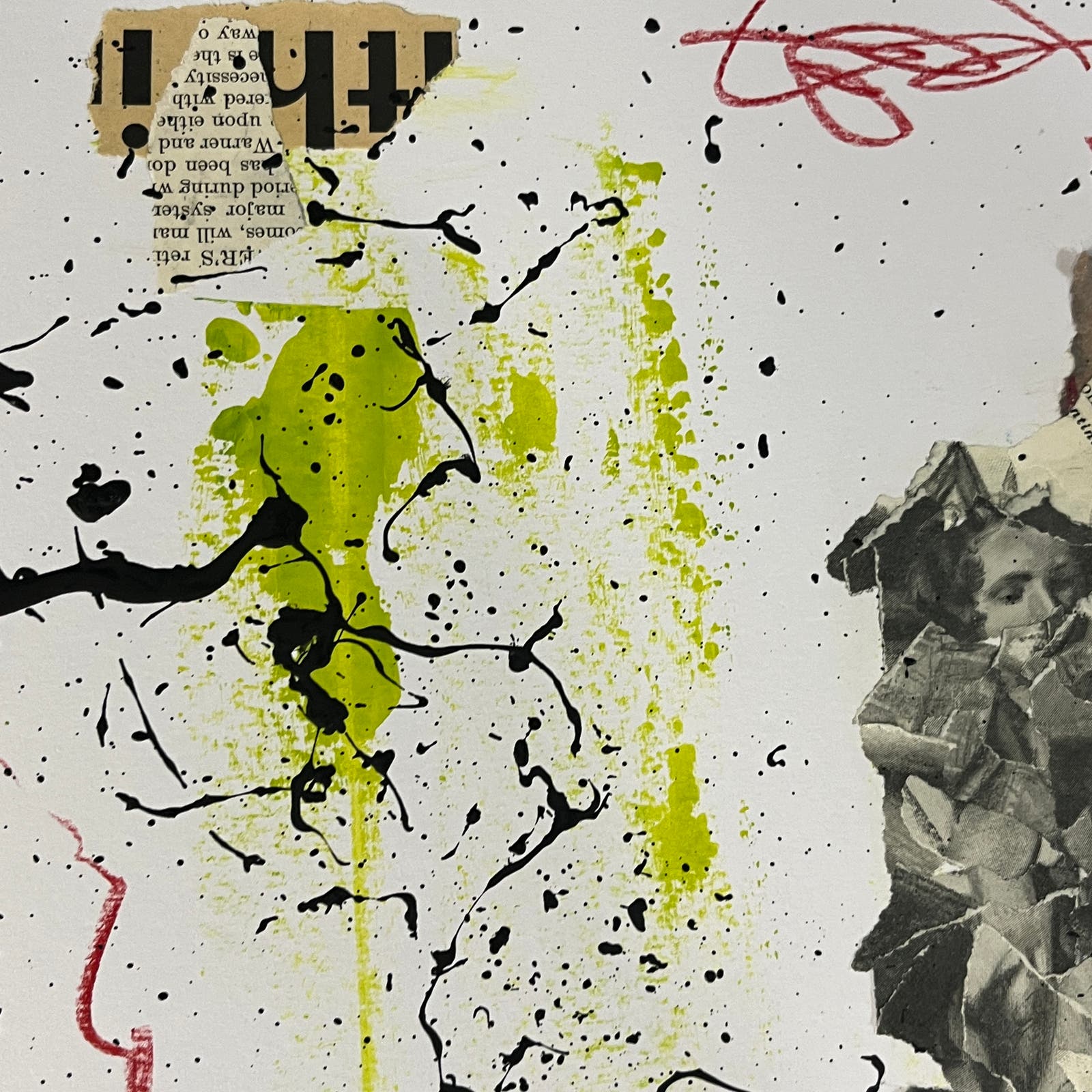 FRAME NOT INCLUDED 11x14" Abstract Mixed Media Art Painting on heavy paper. Can easily be put in an appropriate size frame. Original signed piece by artist Sam Lewis. This is a minimalist assemblage collage and features paper elements dating to the 1880s. This is a great and affordable way to own a piece of original art and add a pop of color to your space. Also a great gift idea.