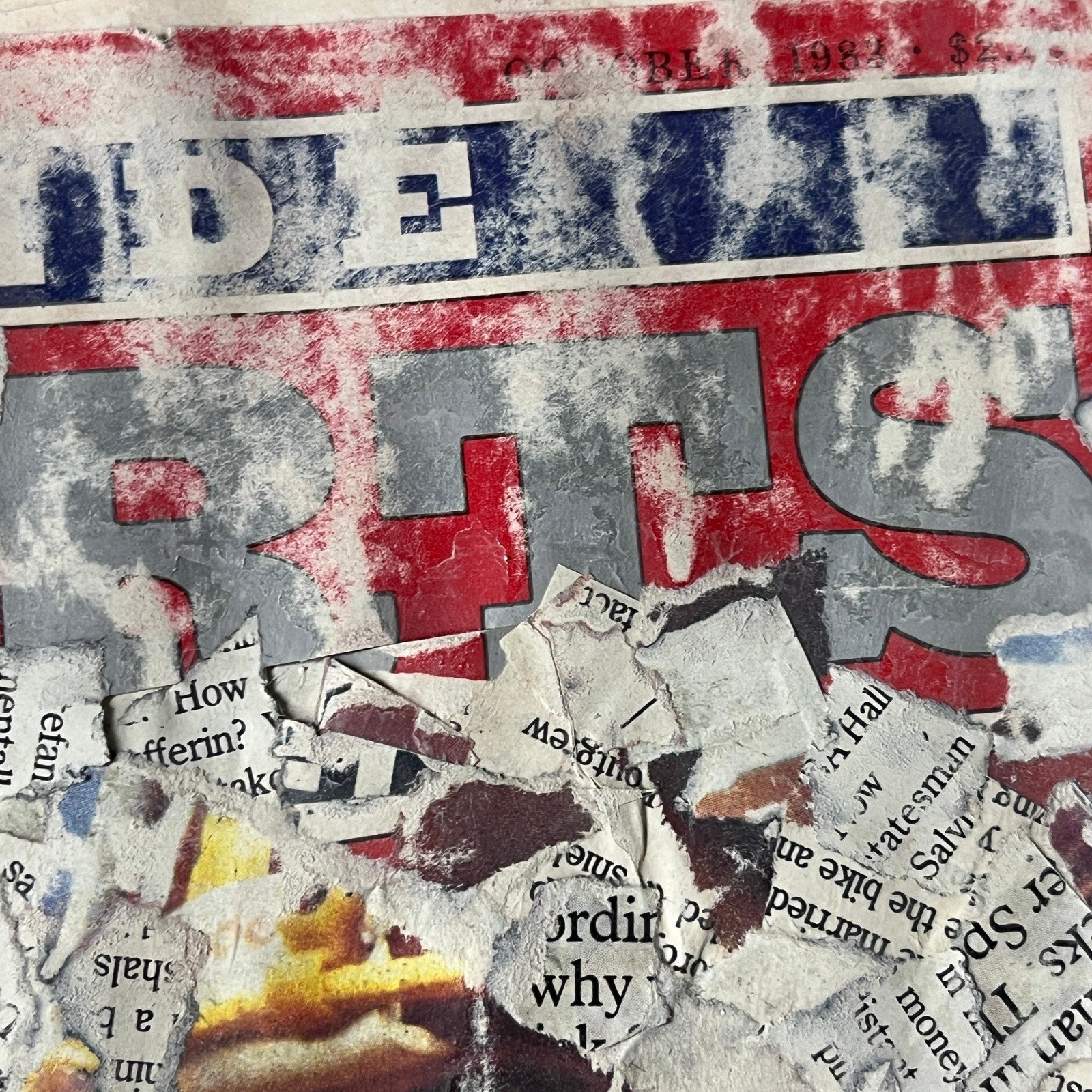Original Mixed Media Abstract Art Collage 8x11 "Oct 1983 Inside Sports Magazine"