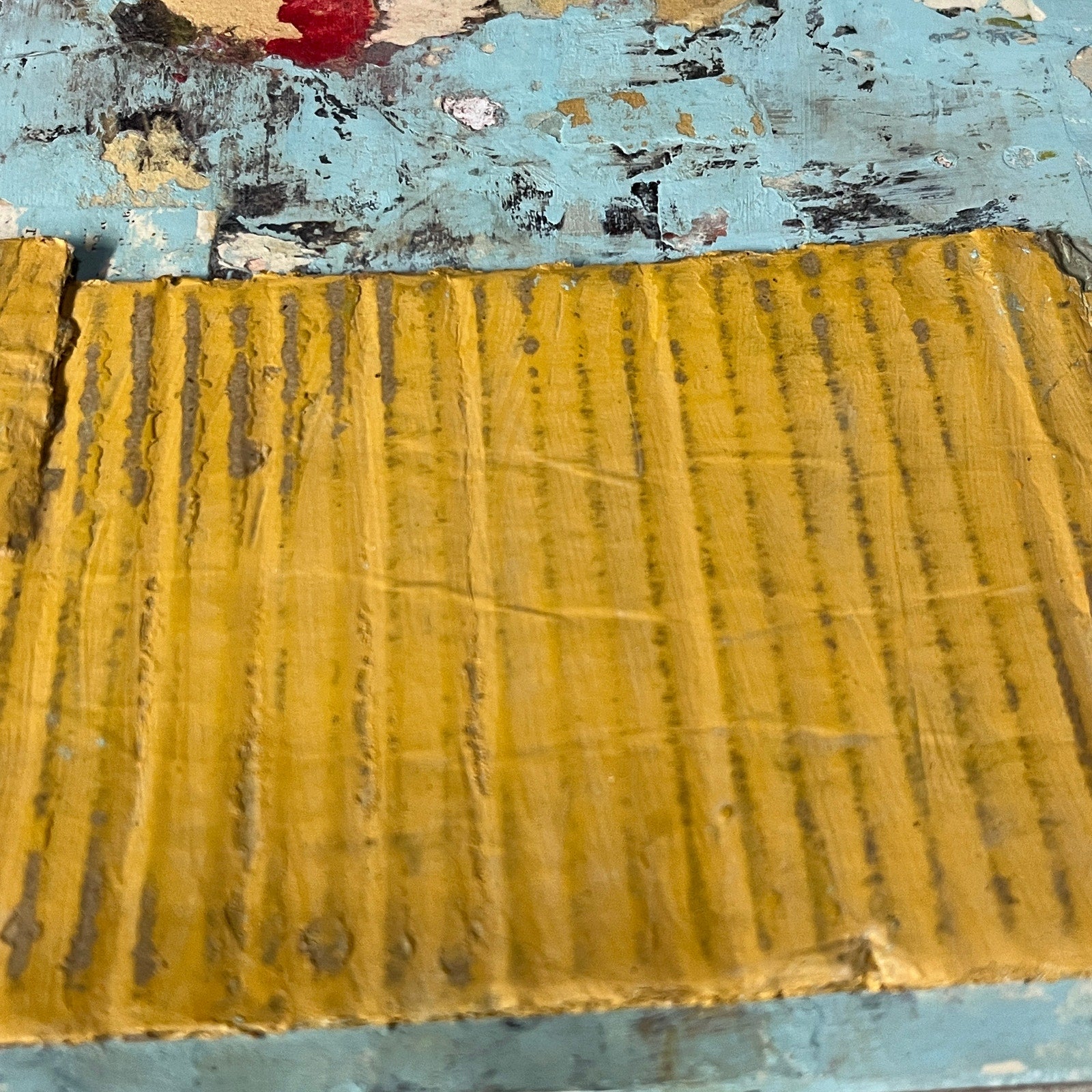 FRAME NOT INCLUDED. Measurement is approximate. This piece is a collage painting on tagboard. This is a one-of-a-kind piece by abstract artist Sam Lewis. This is a great and affordable way to own a piece of original art and add a pop of color to your space. Also a great gift idea.
