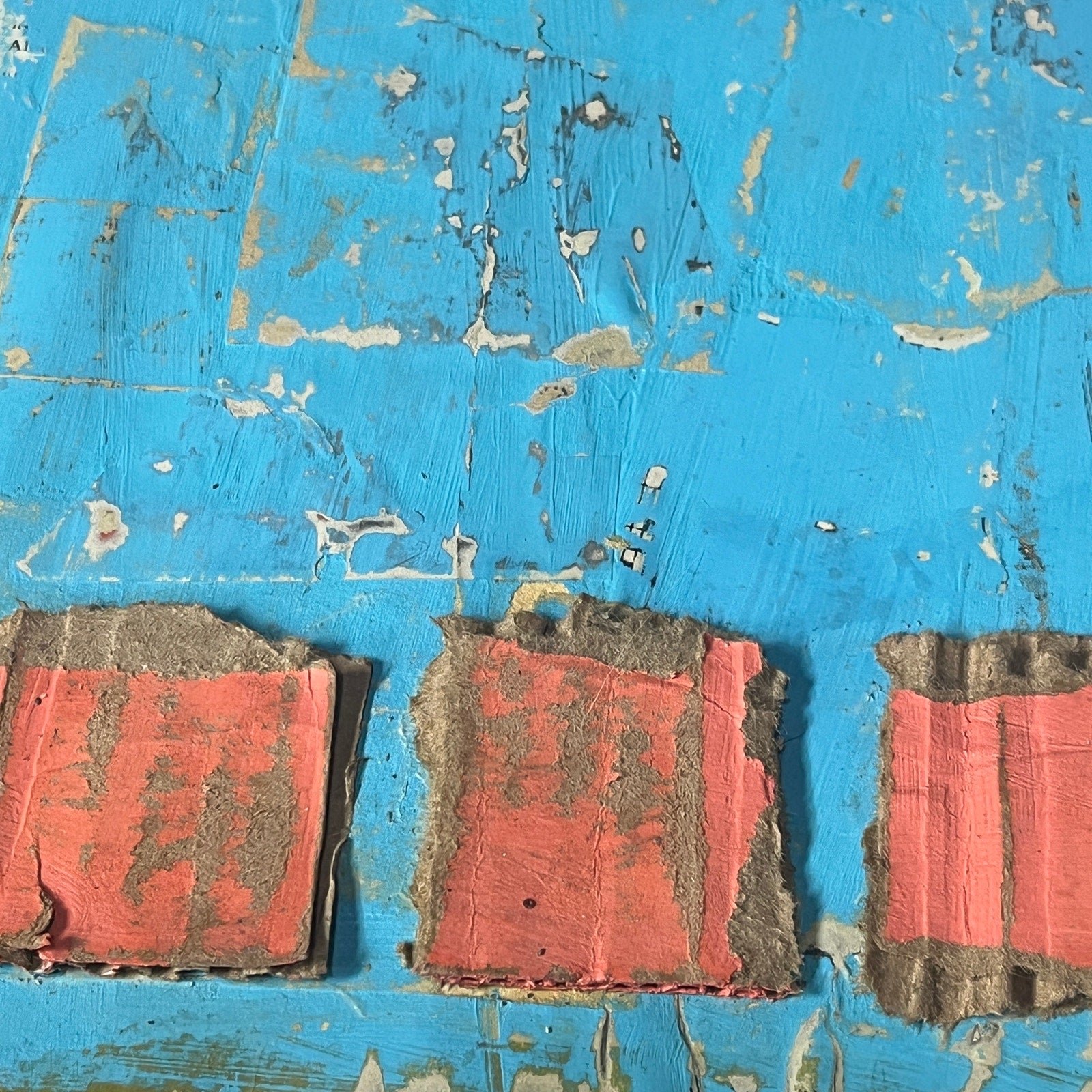 FRAME NOT INCLUDED. Measurement is approximate. This piece is a collage painting on tagboard. This is a one-of-a-kind piece by abstract artist Sam Lewis. This is a great and affordable way to own a piece of original art and add a pop of color to your space. Also a great gift idea.