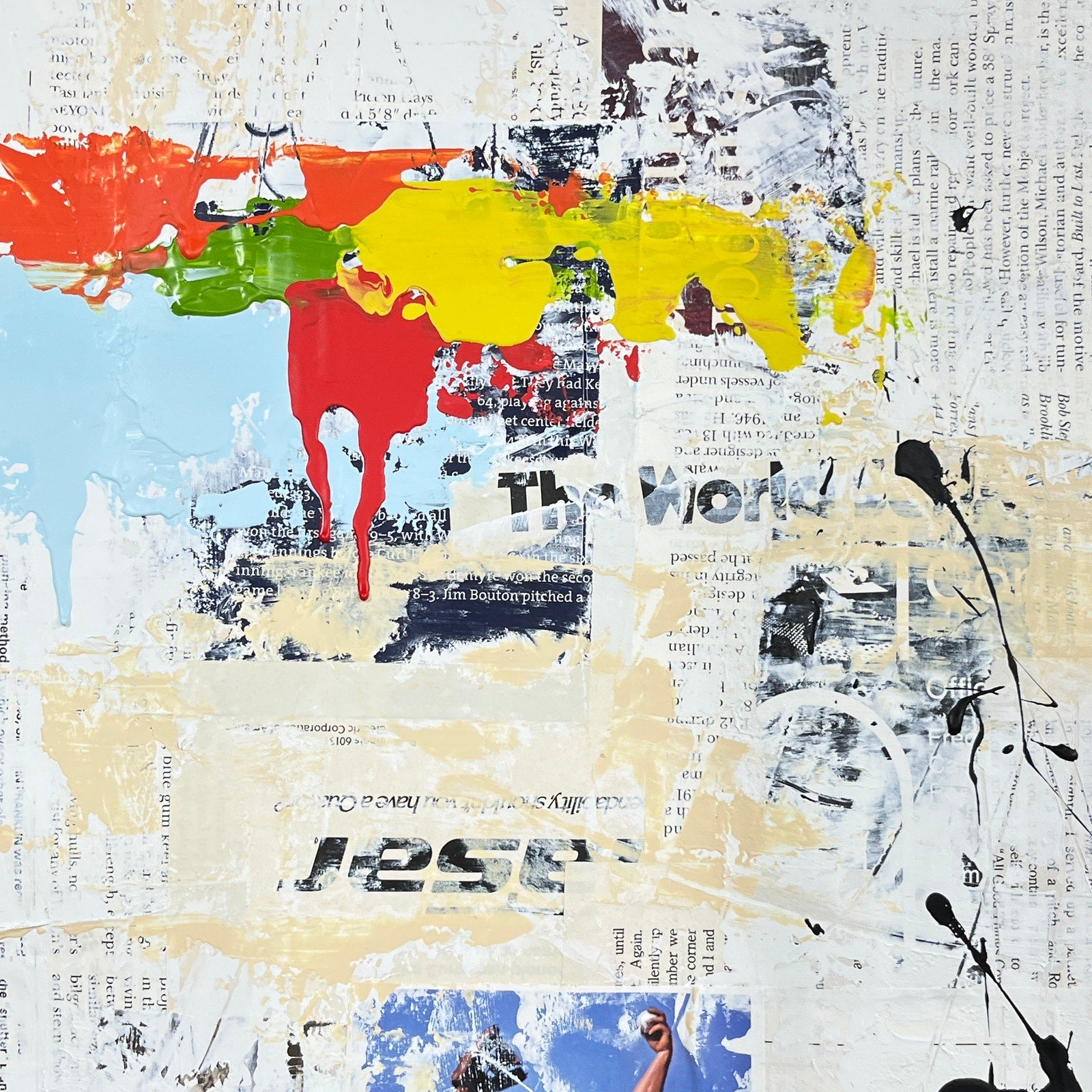 FRAME NOT INCLUDED 18x24" will ship rolled up. Can easily be put in a standard poster size frame. Abstract Mixed Media Art Painting on paper - signed by artist on the back. Original signed piece by artist Sam Lewis. This is a great and affordable way to own a piece of original art and add a pop of color to your space. Also a great gift idea.