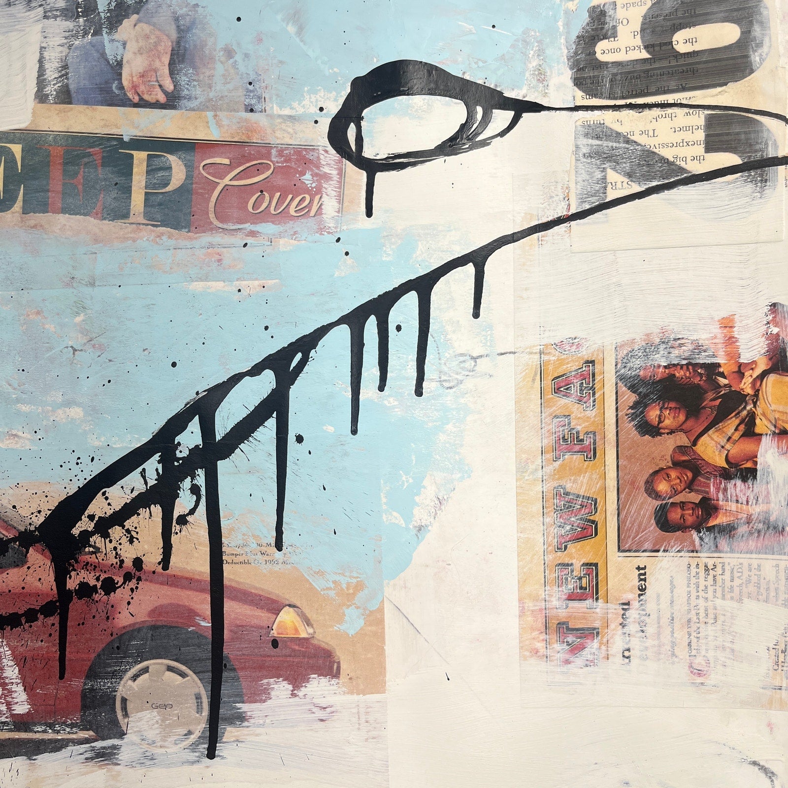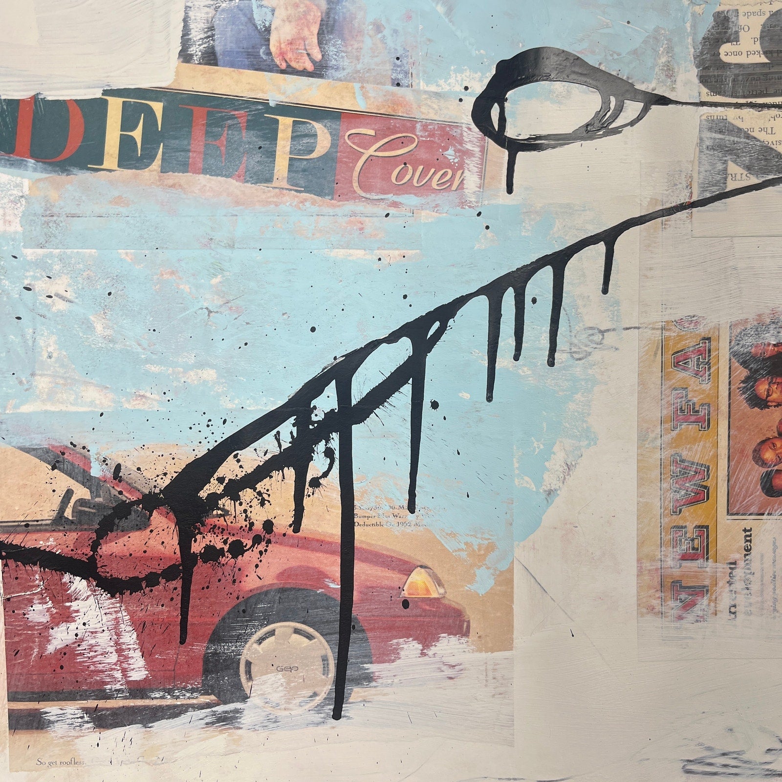 Original Mixed Media Abstract Modern Art Painting 18x24 "Deep Cover '92" Signed