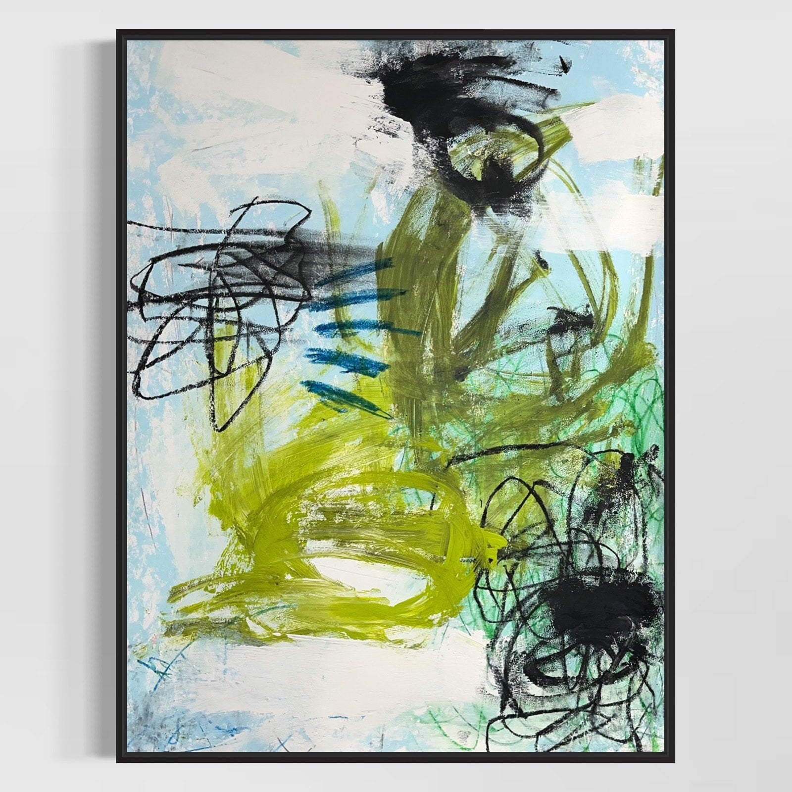FRAME NOT INCLUDED 18x24" will ship rolled up. Can easily be put in a standard poster size frame. Abstract Mixed Media Art Painting on paper - signed by artist on the back. Original signed piece by artist Sam Lewis. This is a great and affordable way to own a piece of original art and add a pop of color to your space. Also a great gift idea.