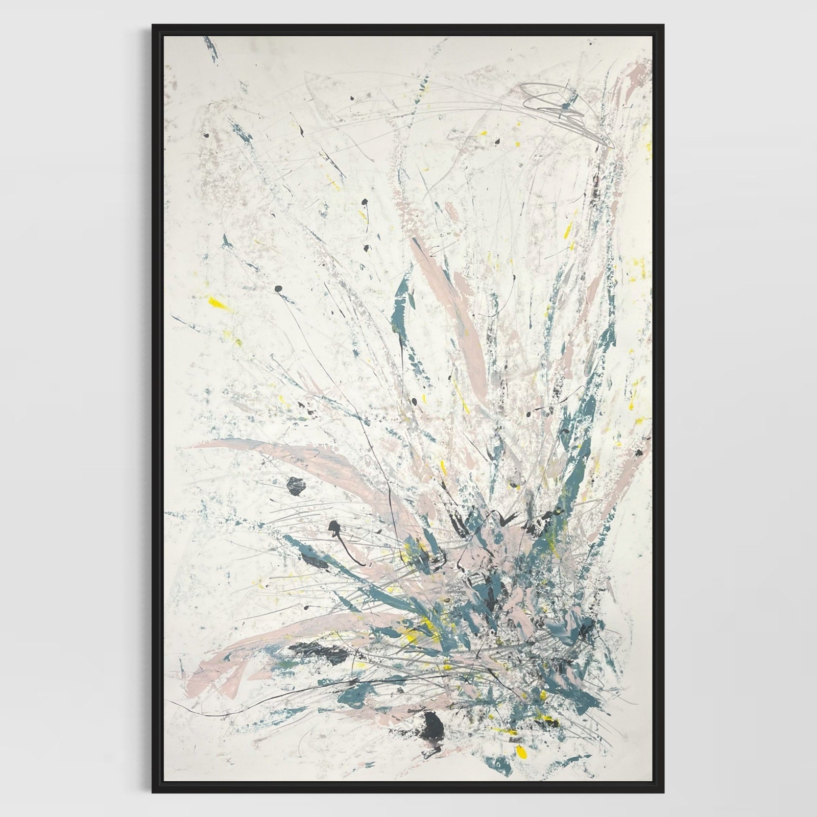 FRAME NOT INCLUDED 24x36" will ship rolled up. Abstract Mixed Media Art Painting on paper - signed by artist on the back. Can easily be put in a common poster size frame. Original signed piece by artist Sam Lewis. This is a great and affordable way to own a piece of original art and add a pop of color to your space. Also a great gift idea.
