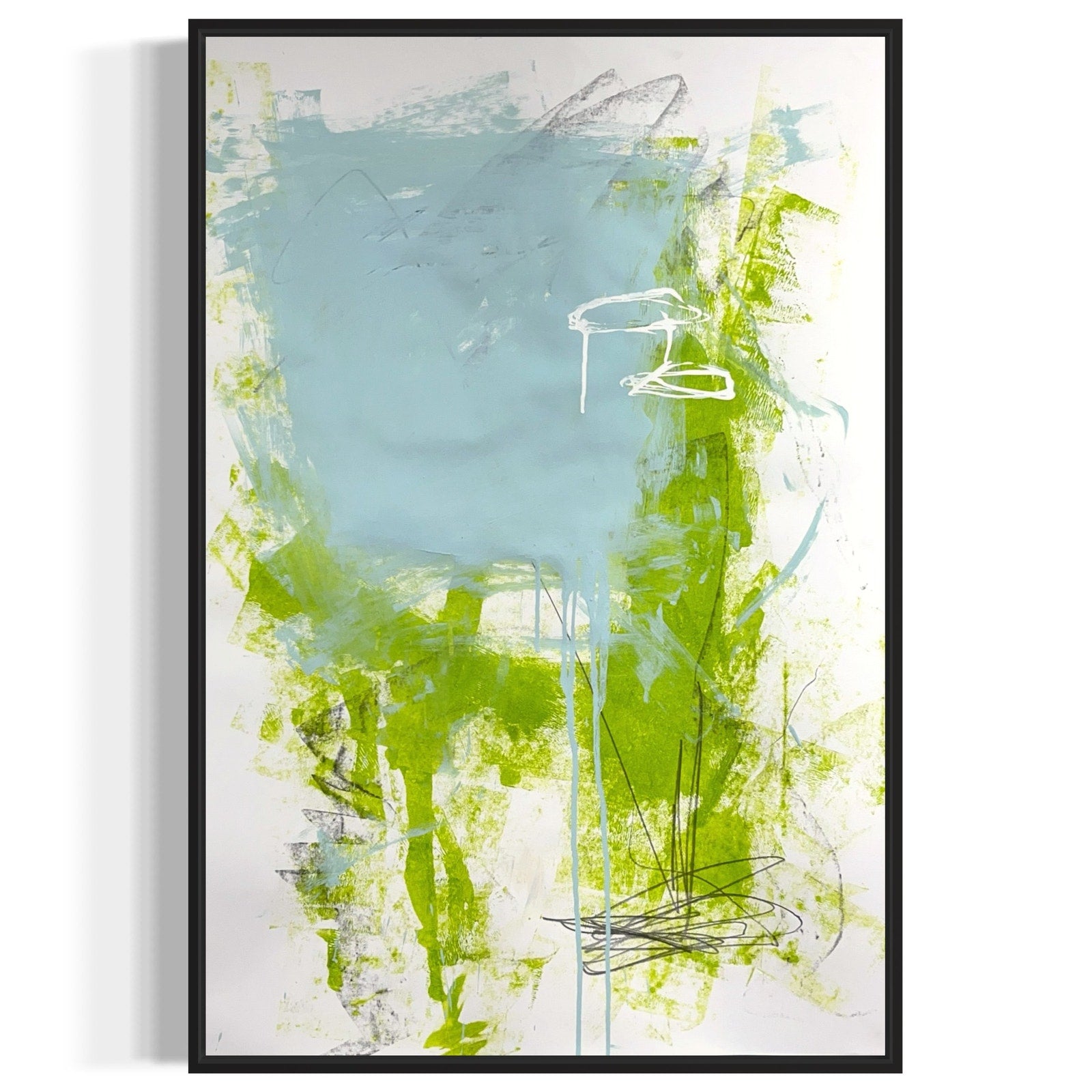 FRAME NOT INCLUDED 24x36" will ship rolled up. Abstract Mixed Media Art Painting on paper. Can easily be put in a common poster size frame. Original signed piece by artist Sam Lewis. This is a great and affordable way to own a piece of original art and add a pop of color to your space. Also a great gift idea.