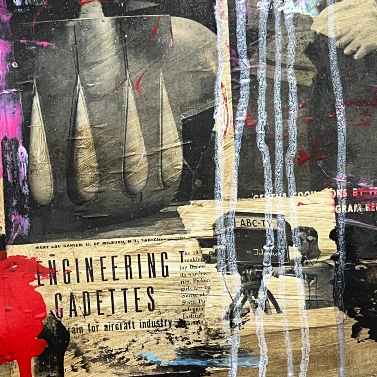 Original Mixed Media Abstract Modern Art Painting 24x36 "Windows, Silver, Tile" Signed