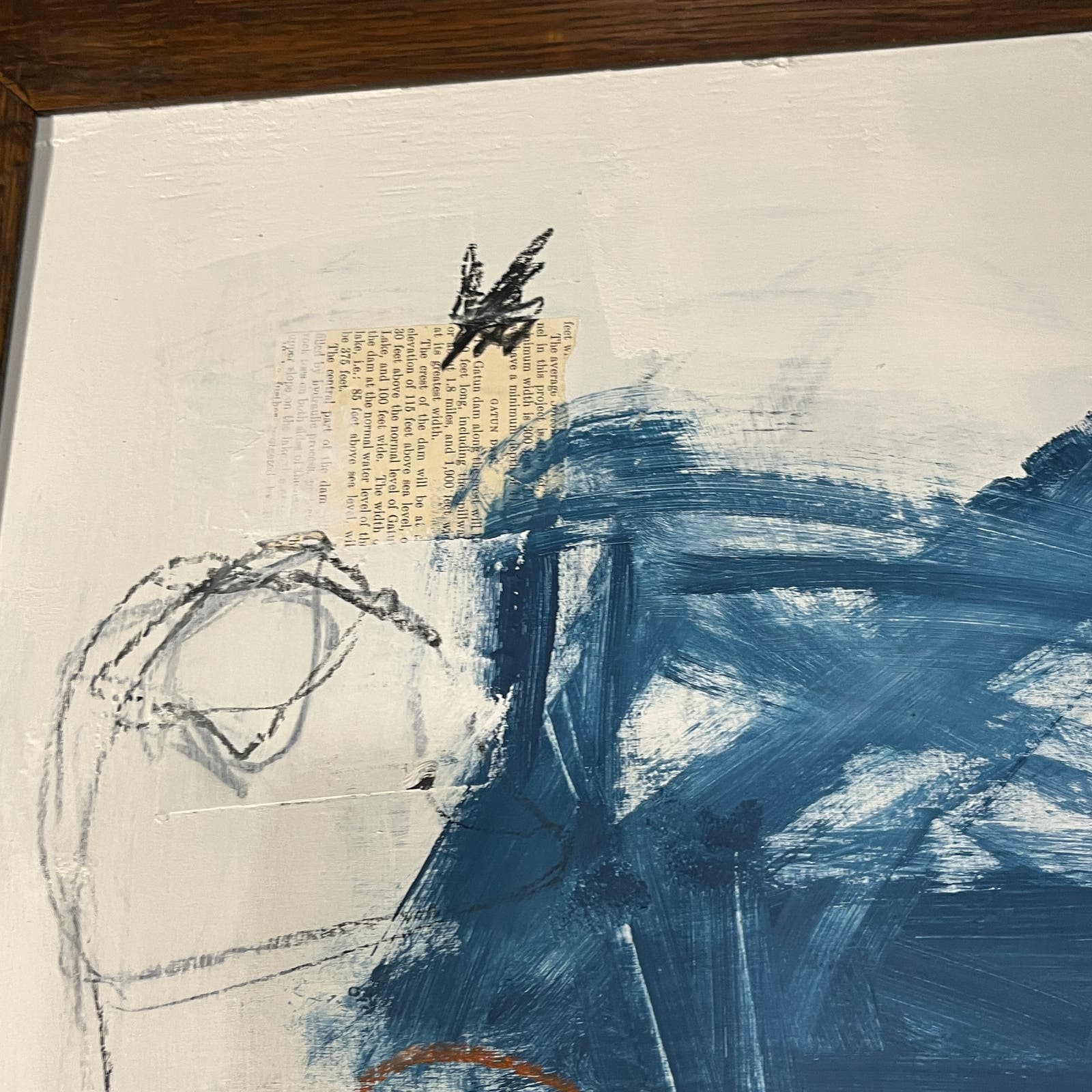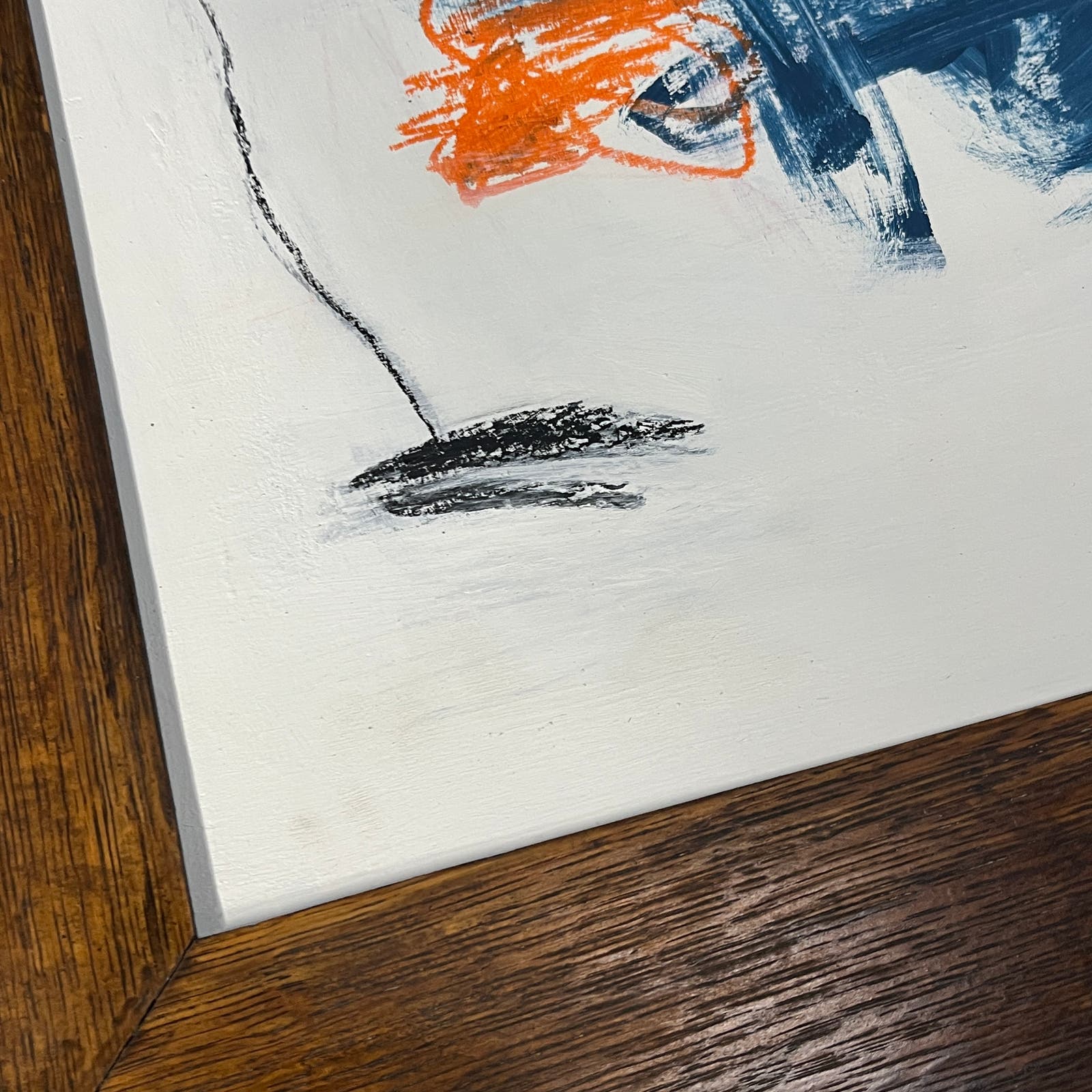 23x27" Abstract Mixed Media Art Painting in antique solid oak handmade frame. Original piece by artist Sam Lewis. This is a great and affordable way to own a piece of original art and add a pop of color to your space. Also a great gift idea. Comes with COA.